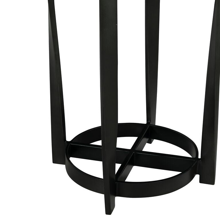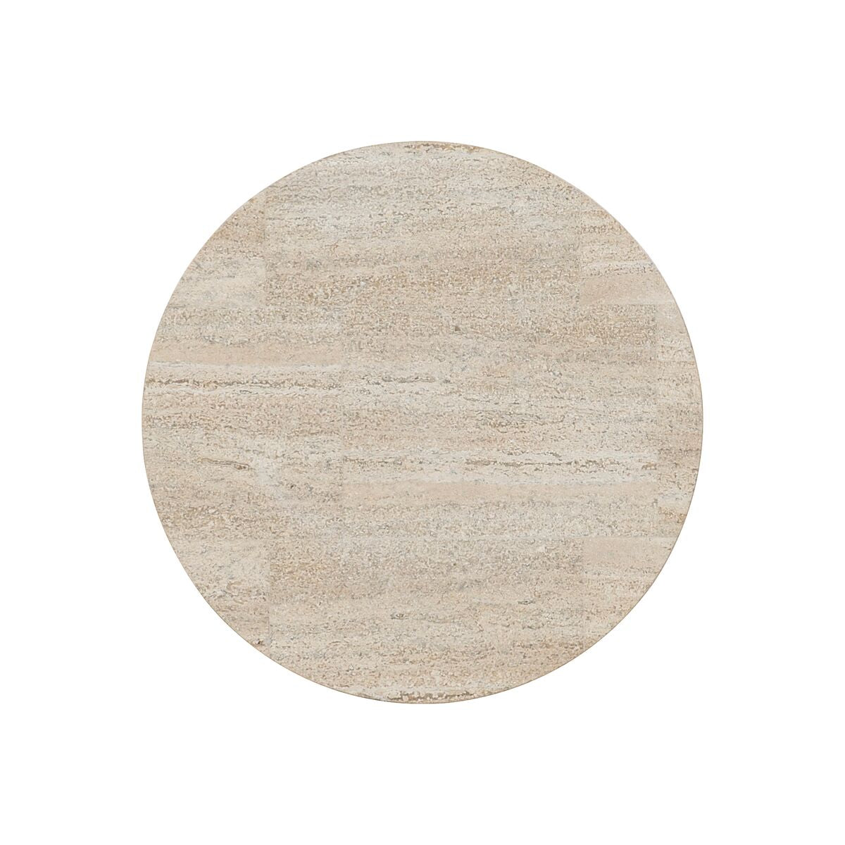 Laminated White Travertine Stone Top And Inset Stone Shelf. Textured Steel Frame In Aged Pewter Finish. Adjustable Glides.