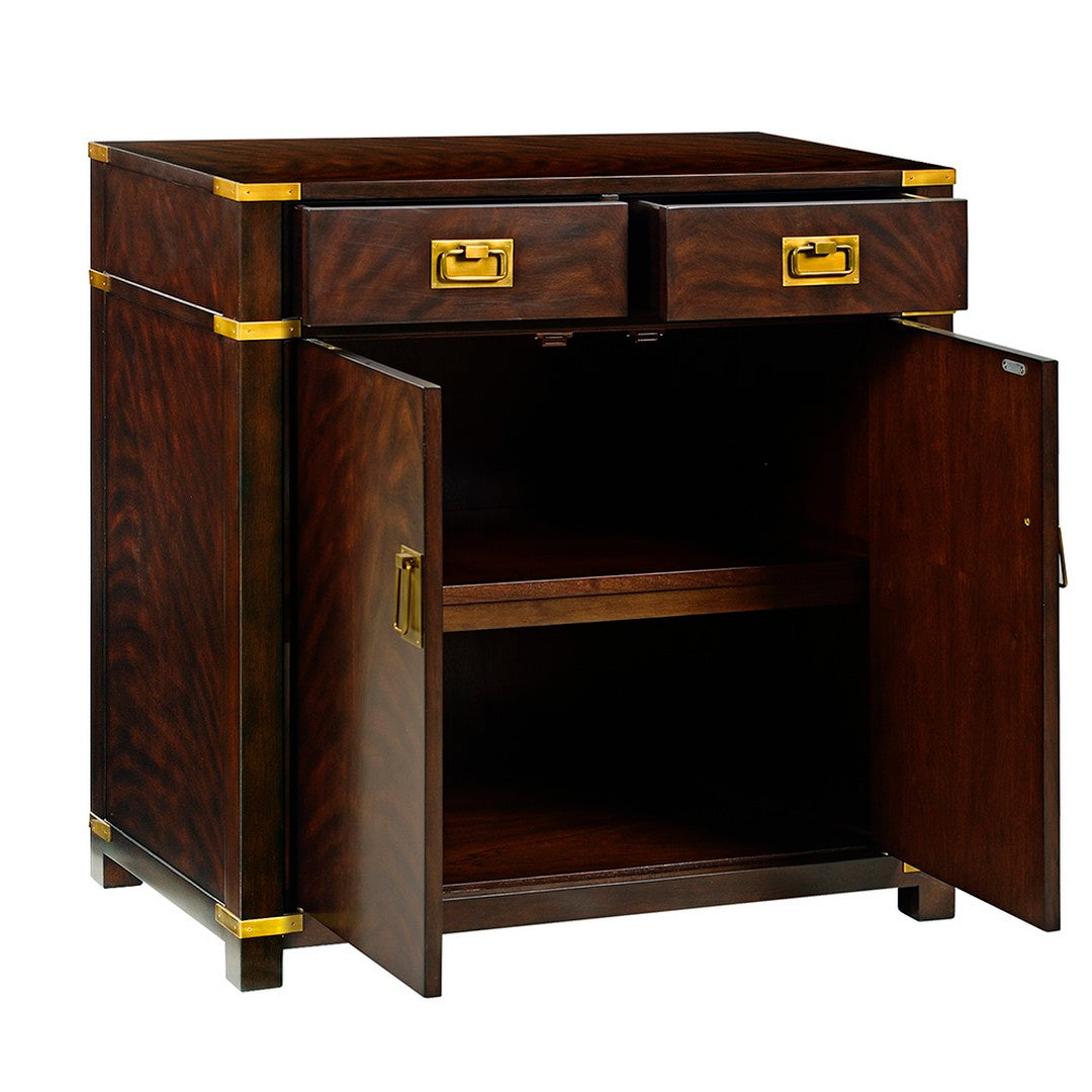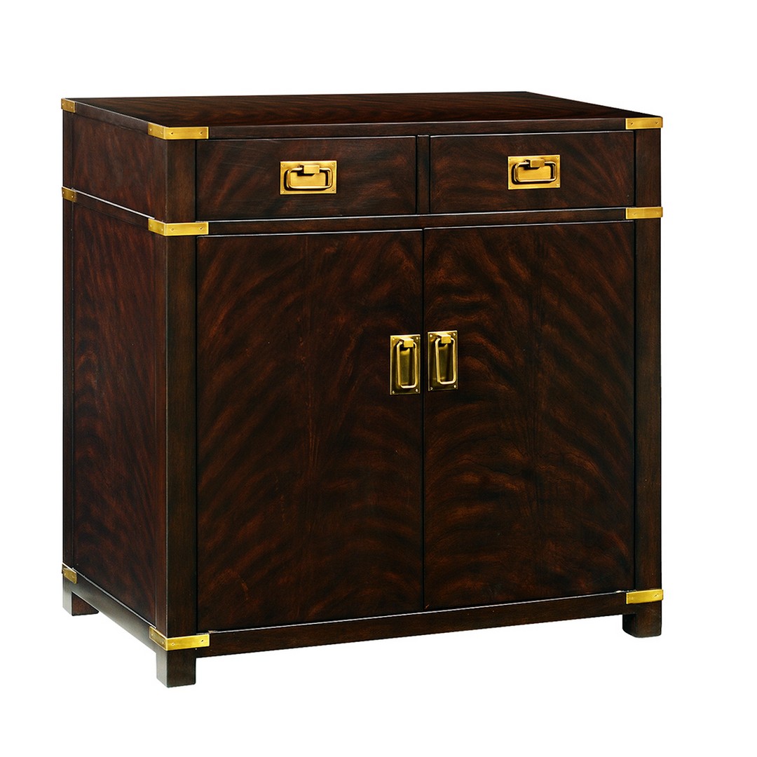 Our Campaign II Chest features two storage drawers above two doors, hand-cast Campaign style hardware, and interior shelving