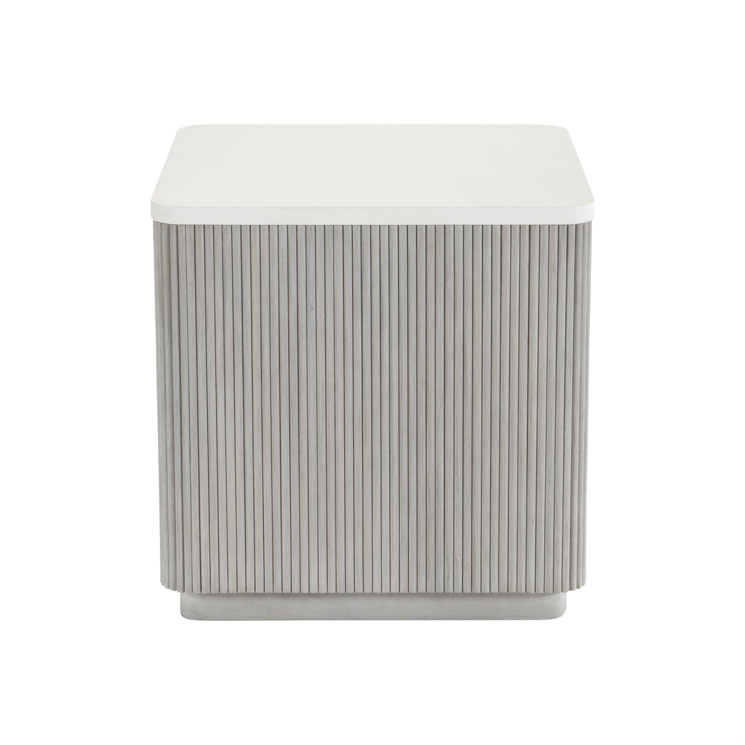 Square Side Table With Faux Stone Finish On Mdf Top, Gmelina Wood Base With Reeded Sides. Adjustable Glides.