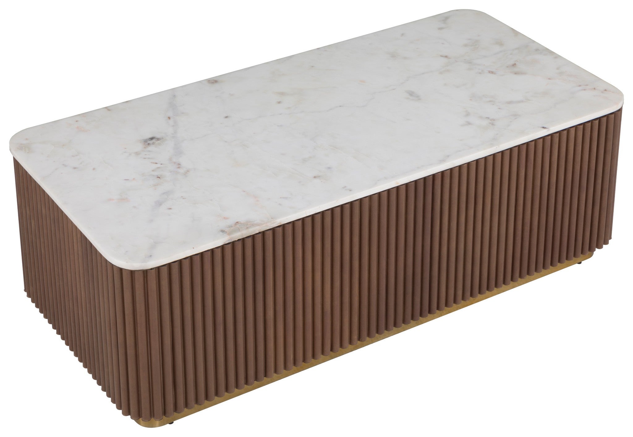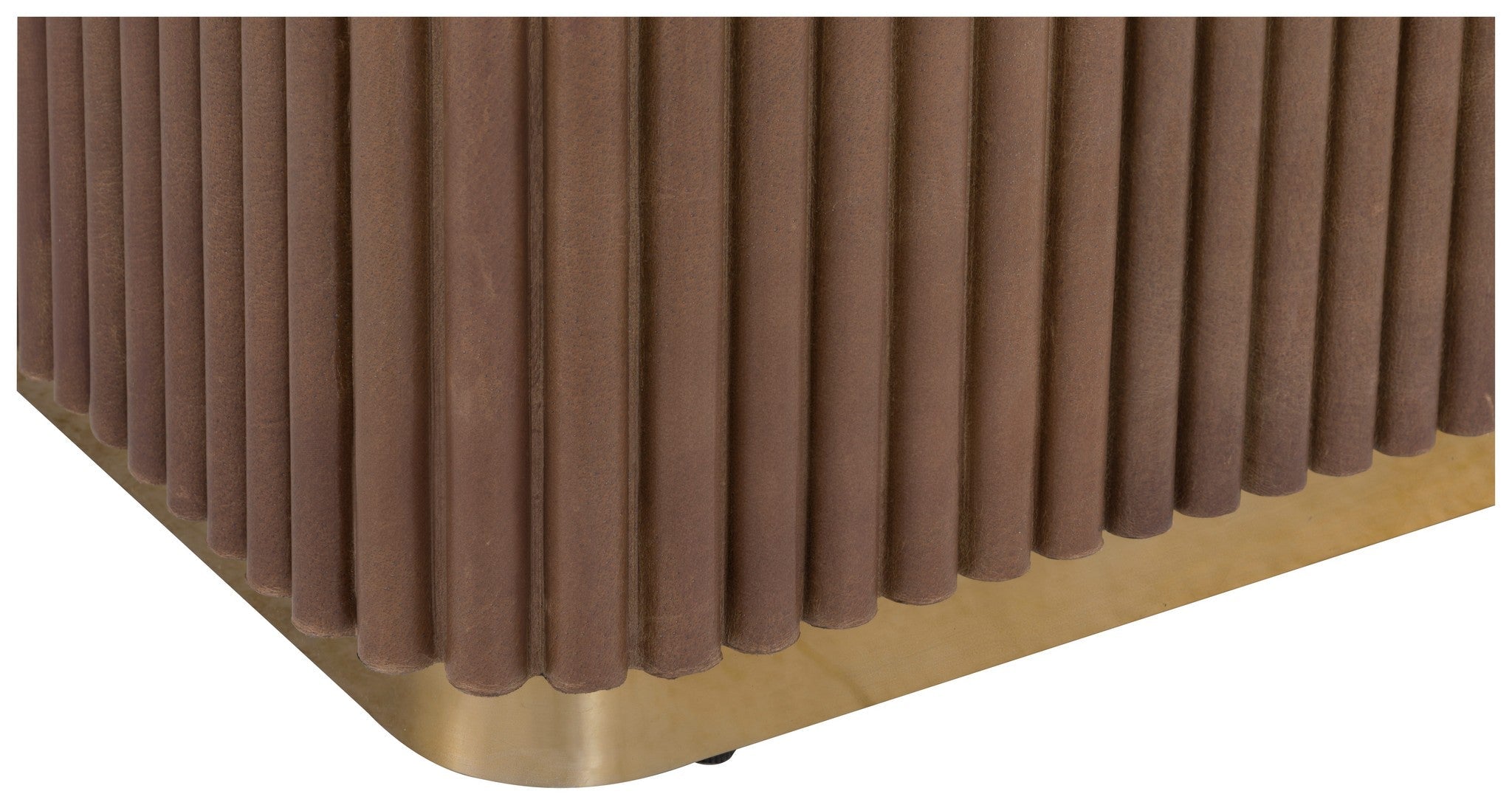 Leather wrapped with White Marble top and Aged Gold metal base.