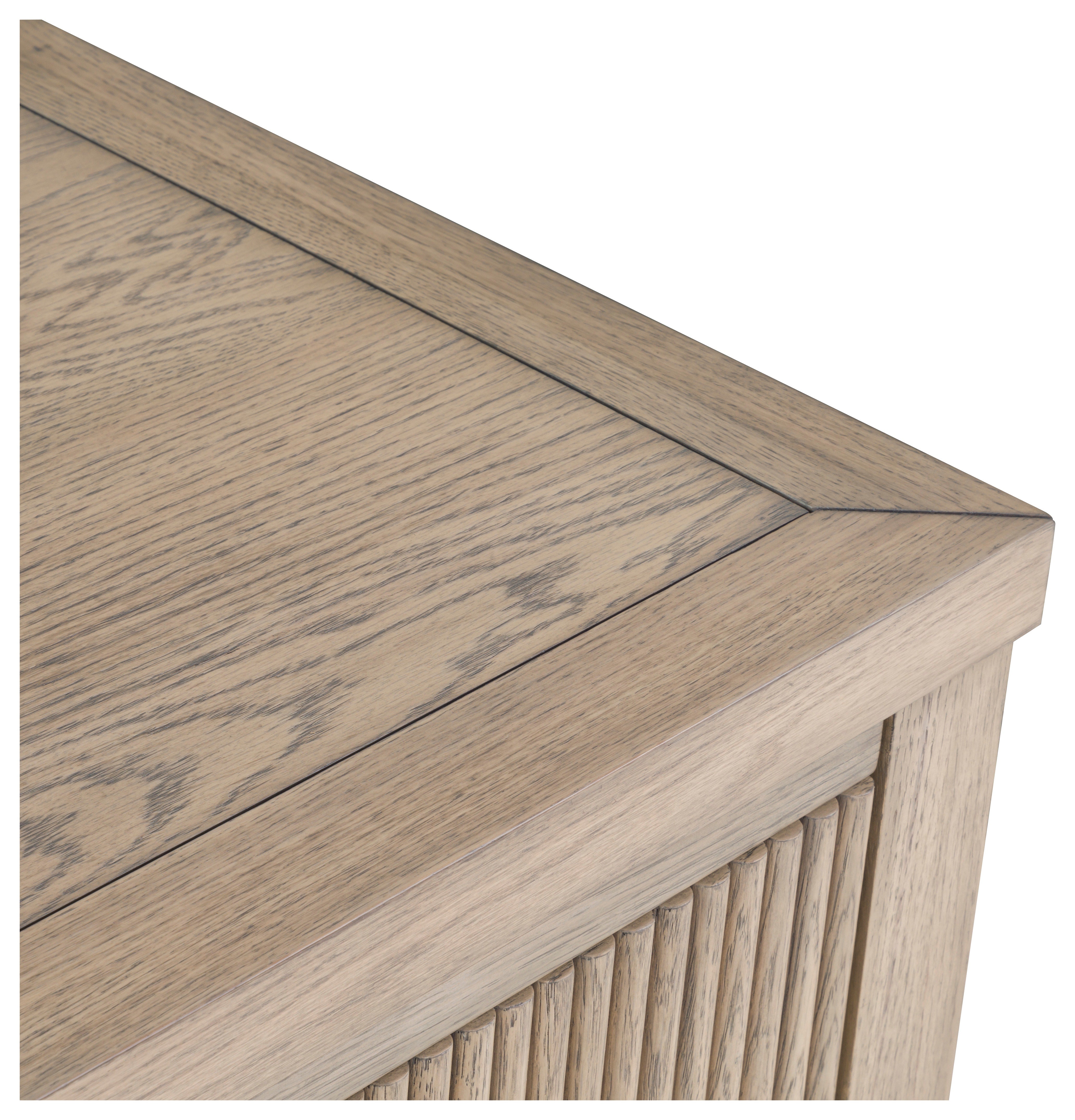 Crafted of red oak solids and veneers, our Everett Collection features rounded tambour panels and figured red oak veneered surfaces. Everett casegoods are accented with Carrera marble and brushed brass hardware and ferrules. Stocked in Biscotti. Everett is also available in 40+ additional custom finishes via our Monogram Program. The Everett Collection is available for the living room, bedroom & dining room.