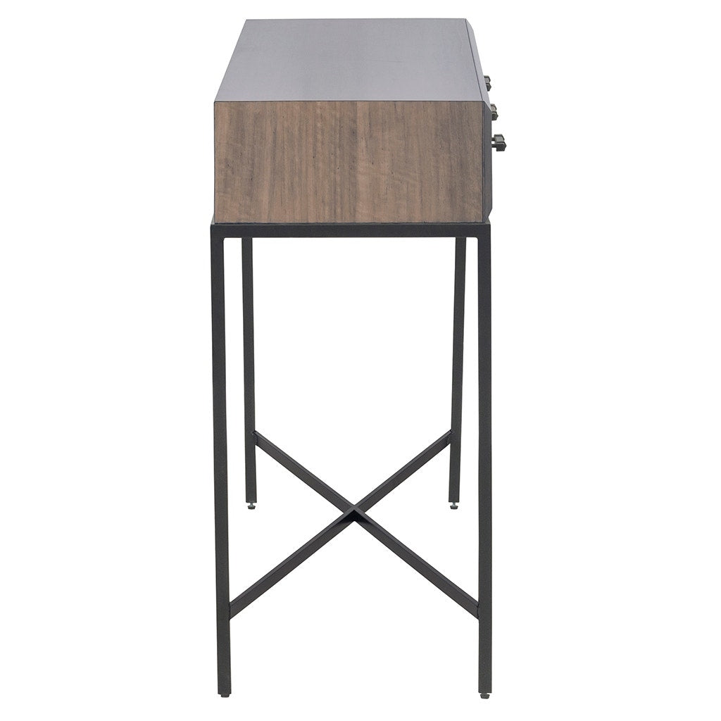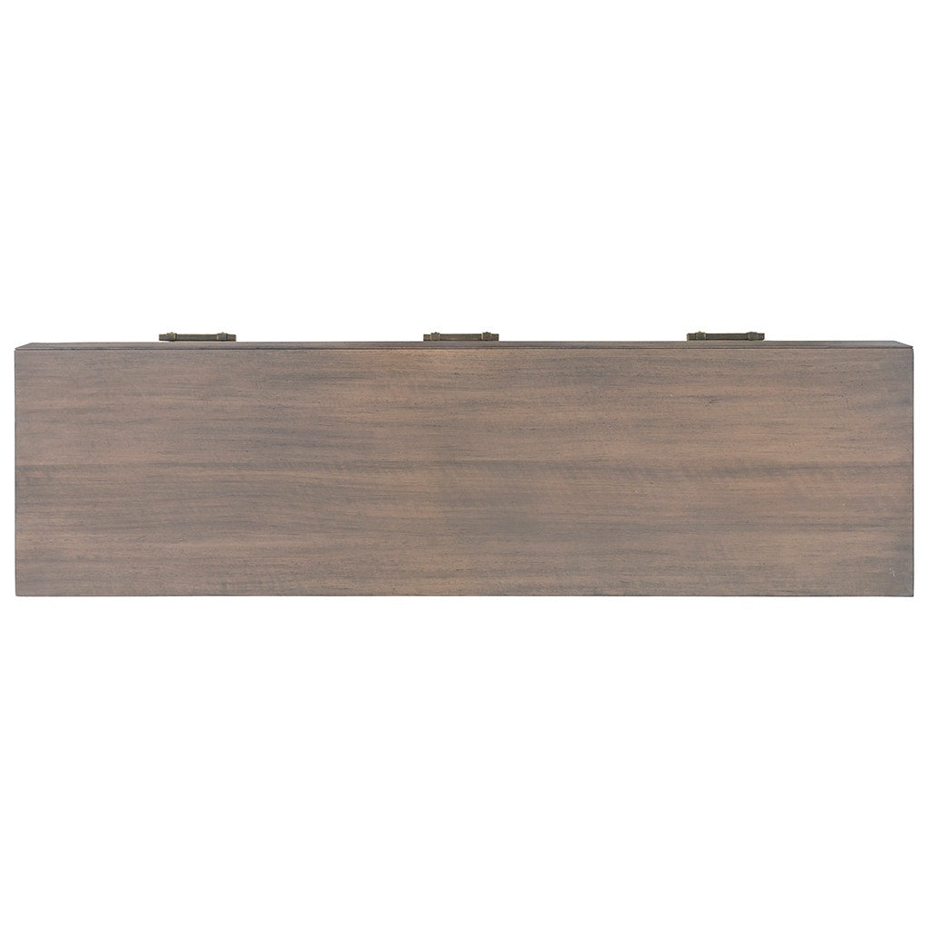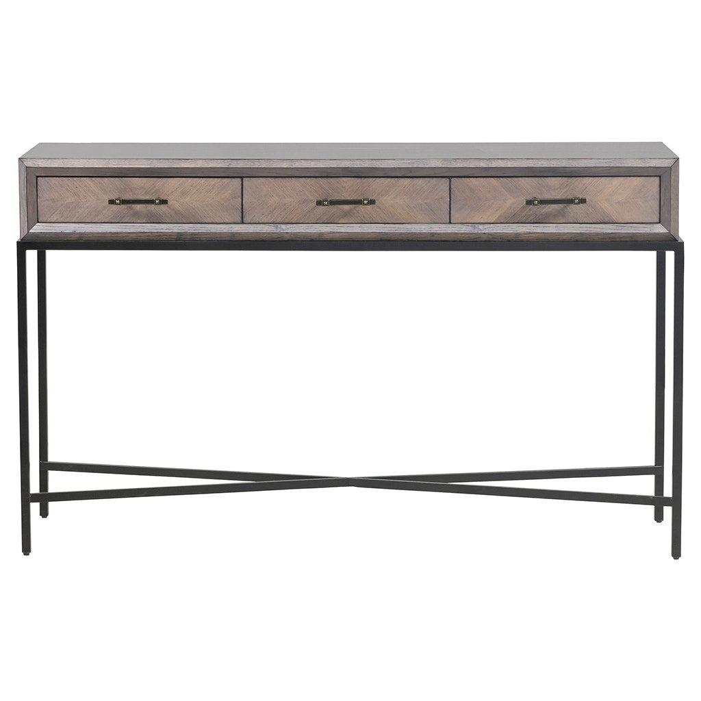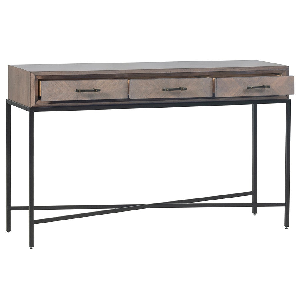 Designed in the spirit of 19th century campaign furniture, Expedition is a collection crafted from figured Eucalyptus and Oak solids. Herringbone pattern veneers, cast brass bar pulls, and black cast iron accents give Expedition's practical silhouettes a simple elegance and classic allure.