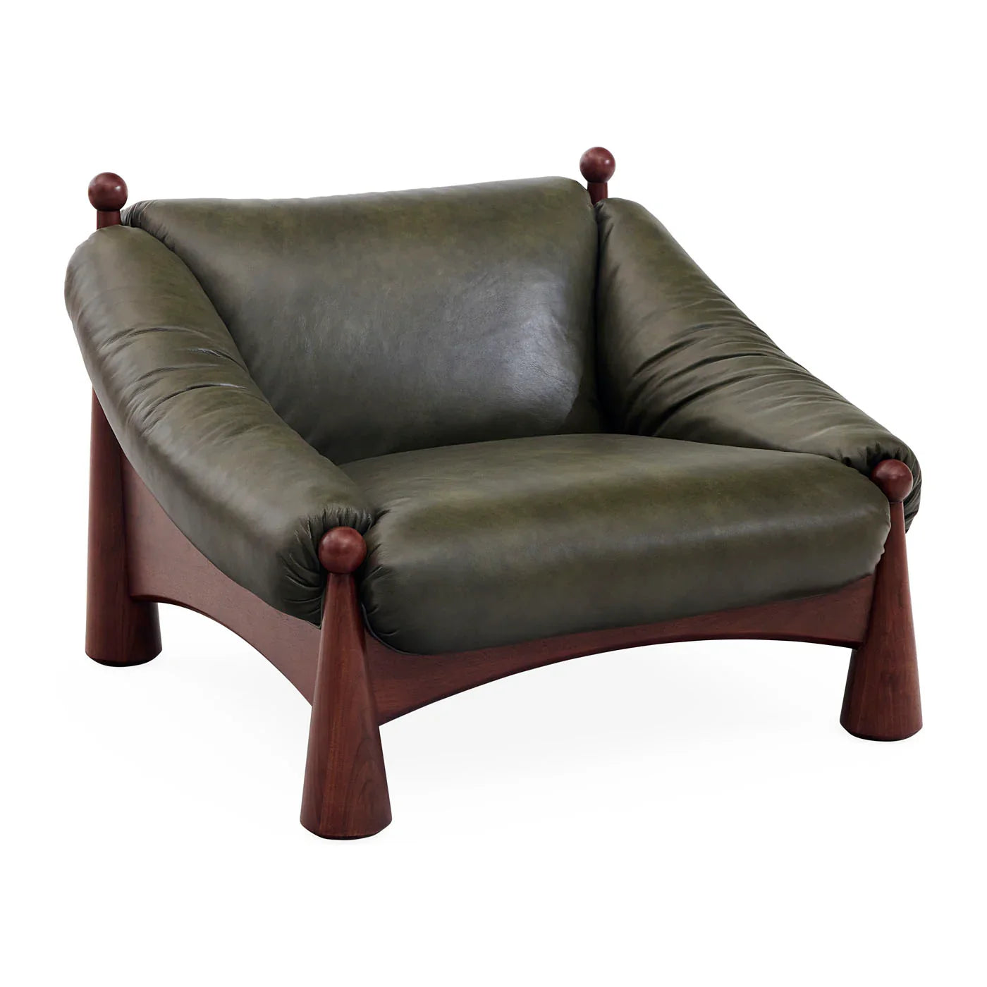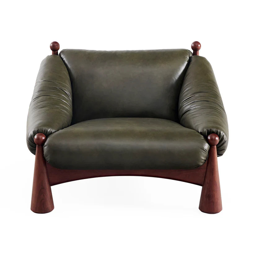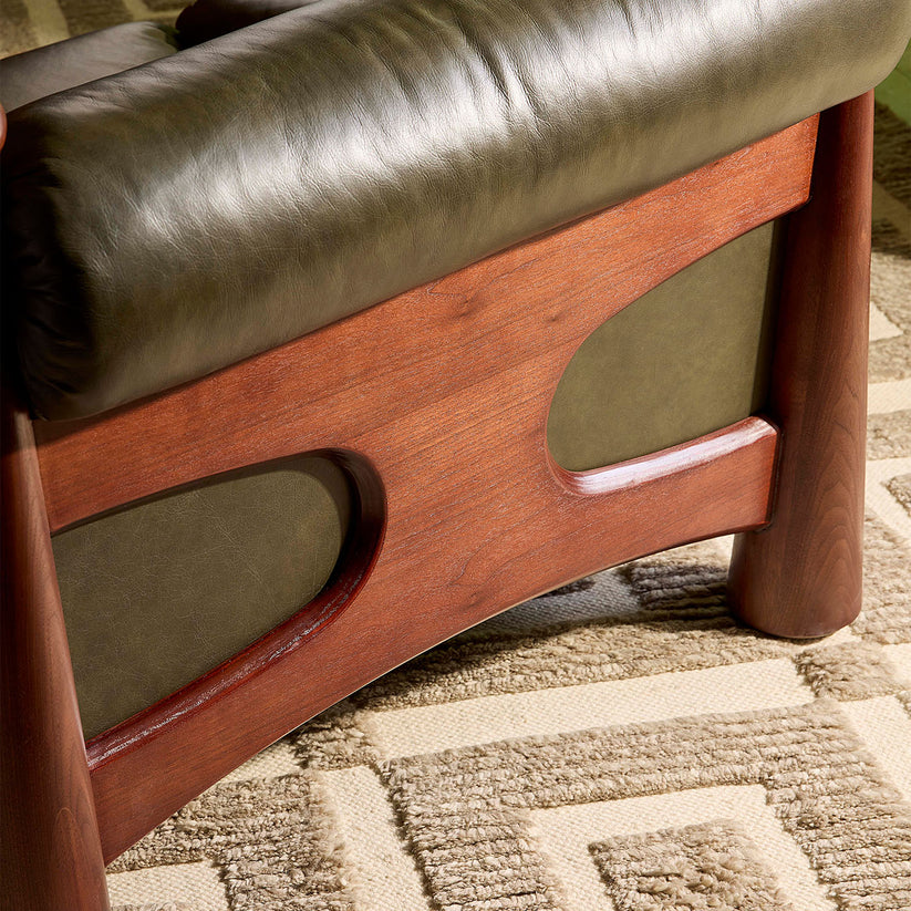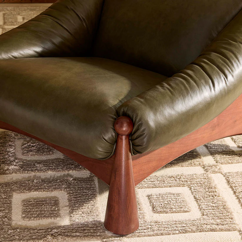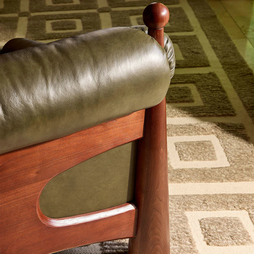 Ipanema Lounge Chair - Olive Leather/Walnut | Jonathan Adler - 35664