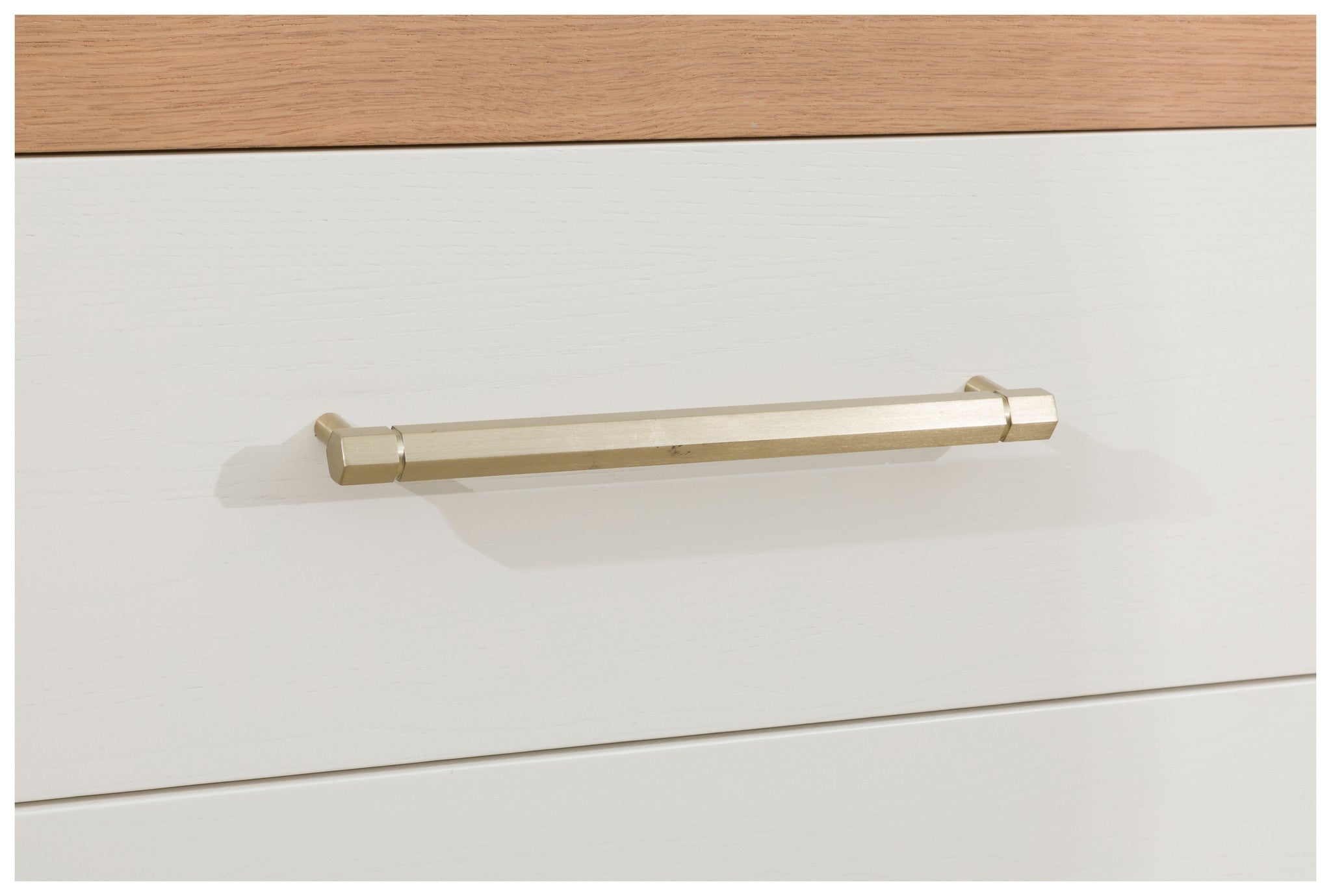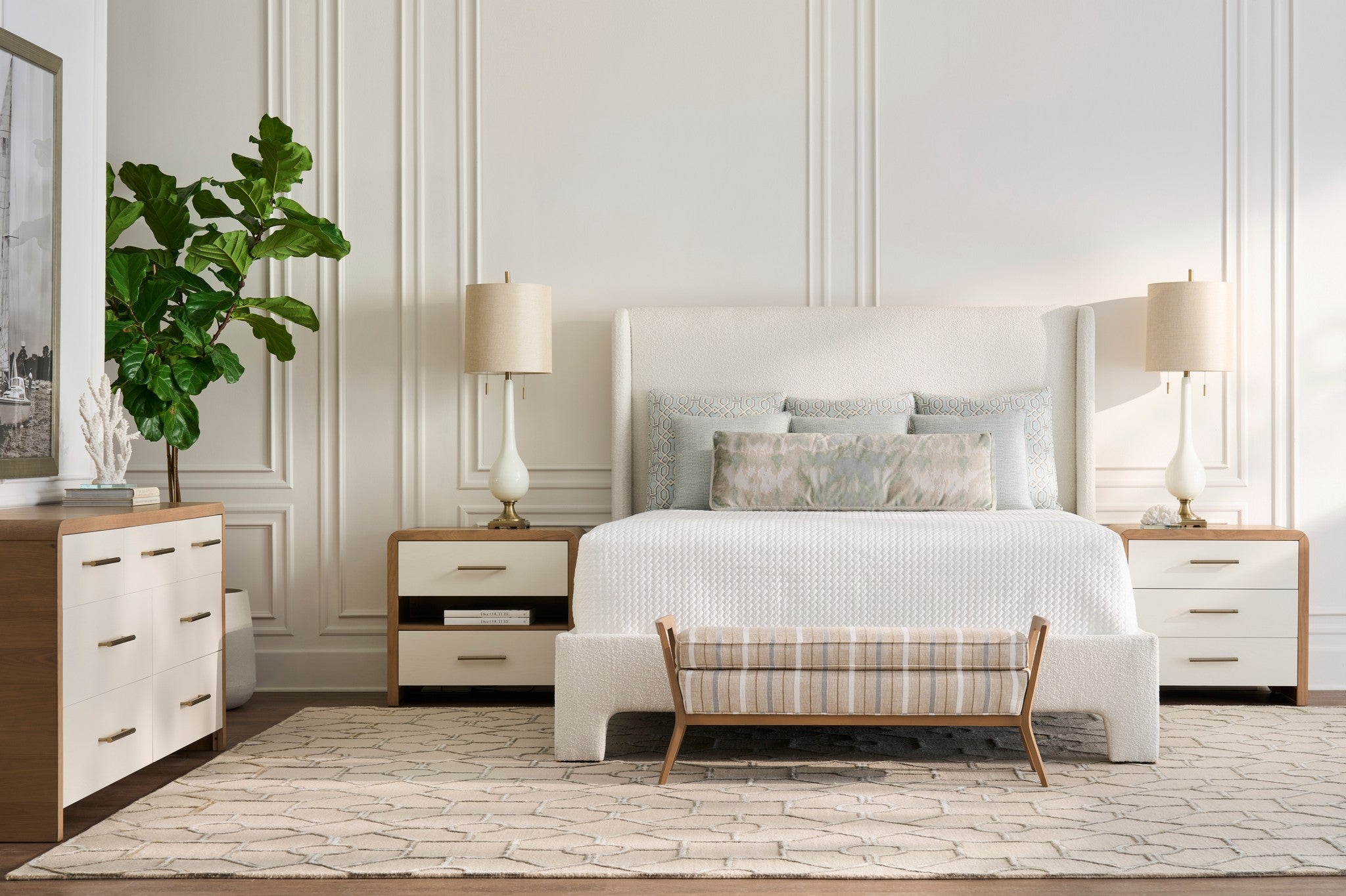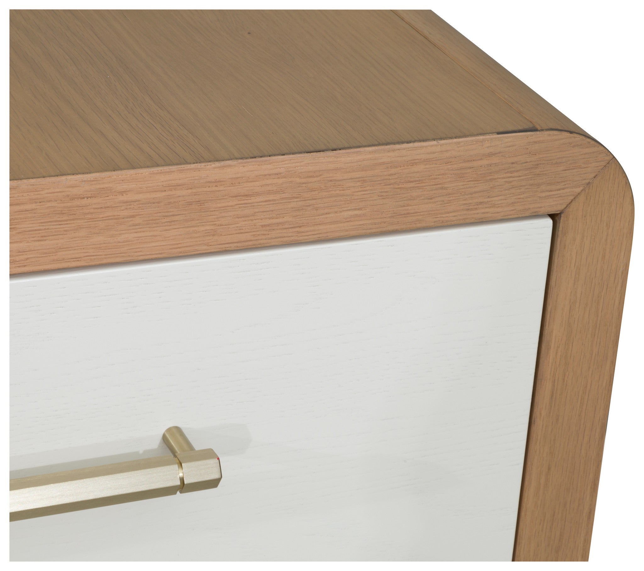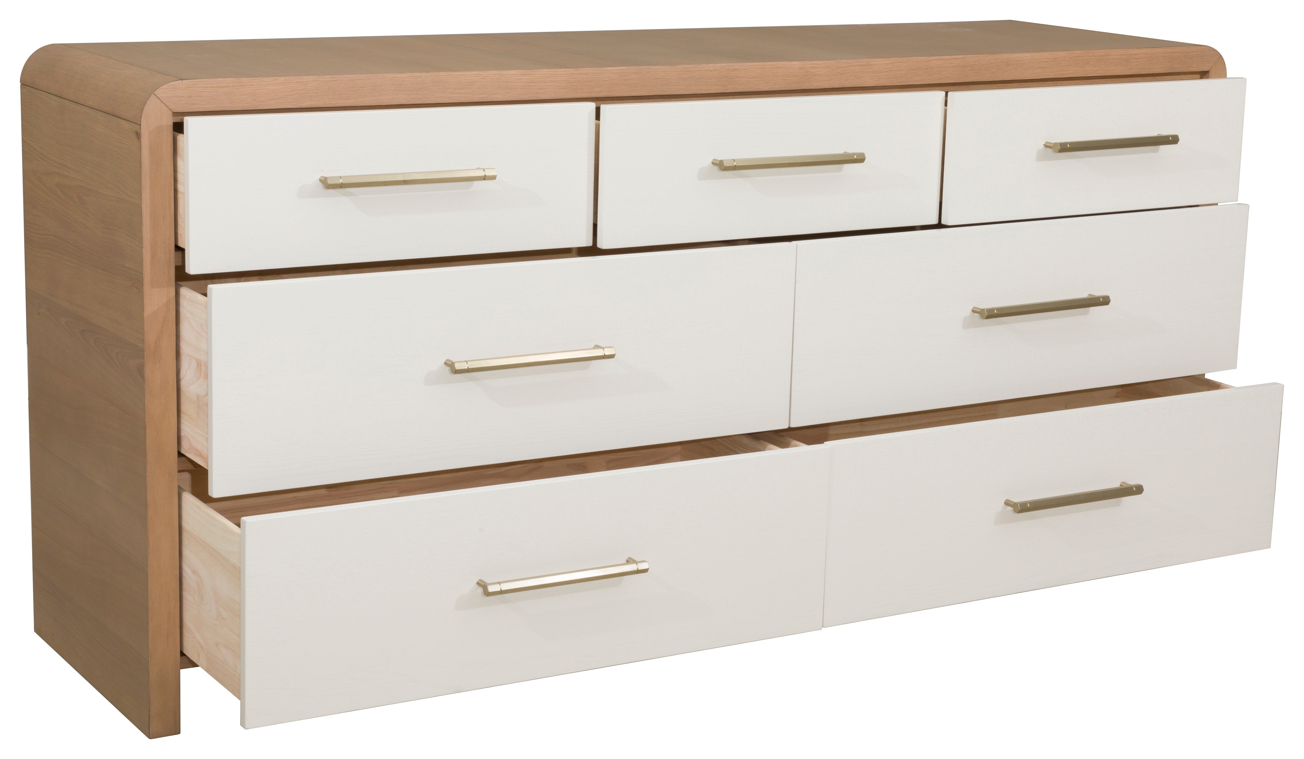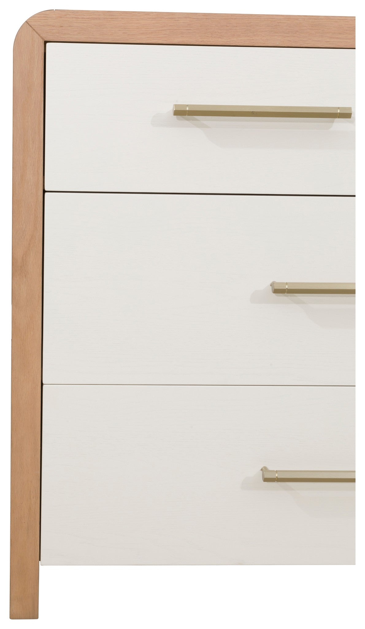 The Brentwood Master Chest is a luxurious combination of a natural Jute wood finish paired with the latte creamy finish to create an elegant look using contrast. The curves on the upper frame add a softness and an ease to this large chest and the champagne brass drawer pulls look beautiful with the cream finish as the backdrop. Equal parts stylish and functional, and working well with looks from coastal to contemporary make the Brentwood Master chest and new classic no matter your design style.