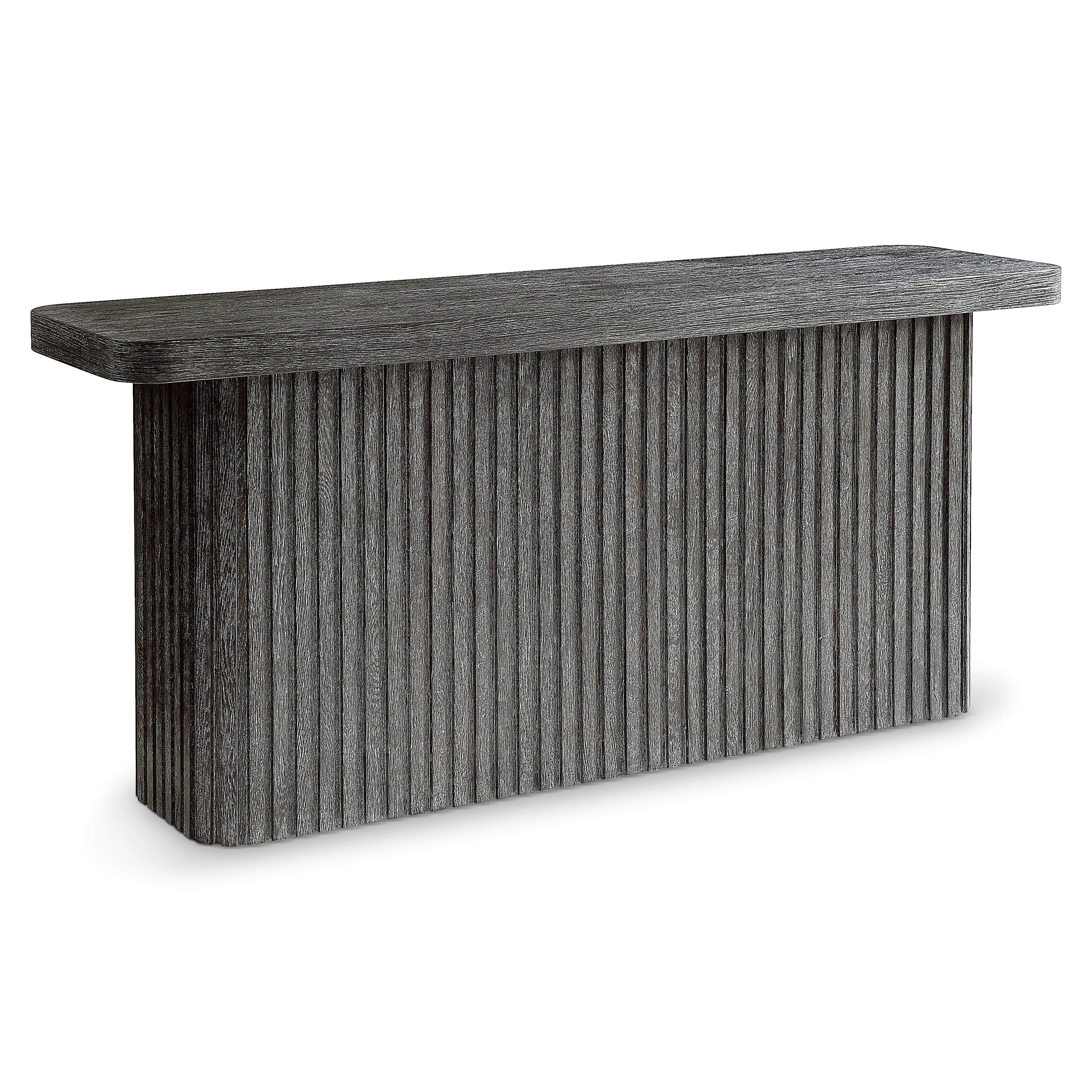 The Menton console table creates a casually cool style with simple lines and architectural detailing. The base has deeply reeded sides that highlight the deep Sutton finish. A rectangular top offers softened edges and a beautiful woodgrain.