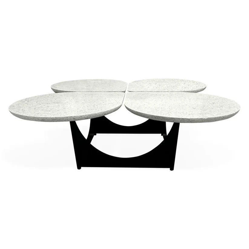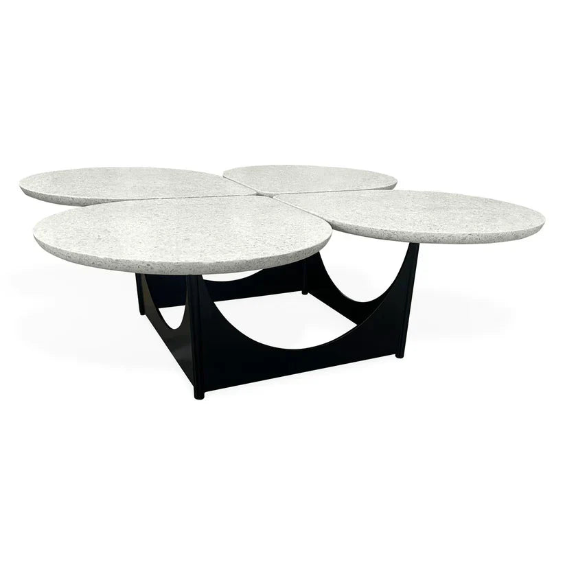 Is it art? Is it a cocktail table? Featuring four terrazzo tabletops and a sculptural blackened steel base inspired by Oscar Niemeyer's Brasilia architecture, our Milano Quatrefoil Cocktail Table decides: Both. Sculptural and intriguing sans objets, Milano requires zero styling and will still be the chicest moment in the room.