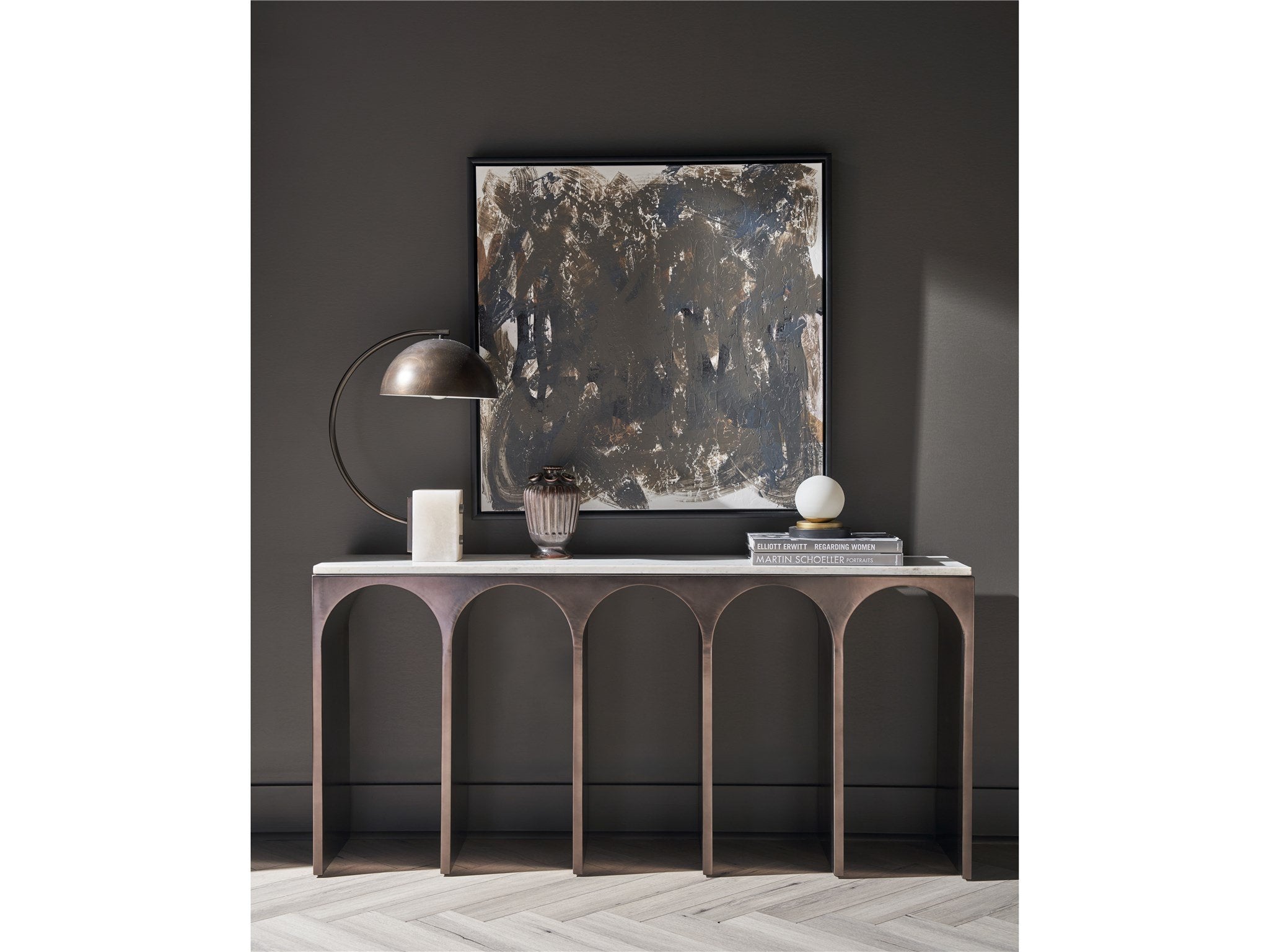 The Moda Console Table stands at the forefront of modern design, blending a sleek White Banswara top with an Aged Satin Pewter body. Its design Features: exaggerated curves, slender legs, and a clever interplay of negative and positive space, crafting a piece that's as visually engaging as it is elegantly functional. This table embodies contemporary sophistication, perfect for enhancing any forward-thinking interior.