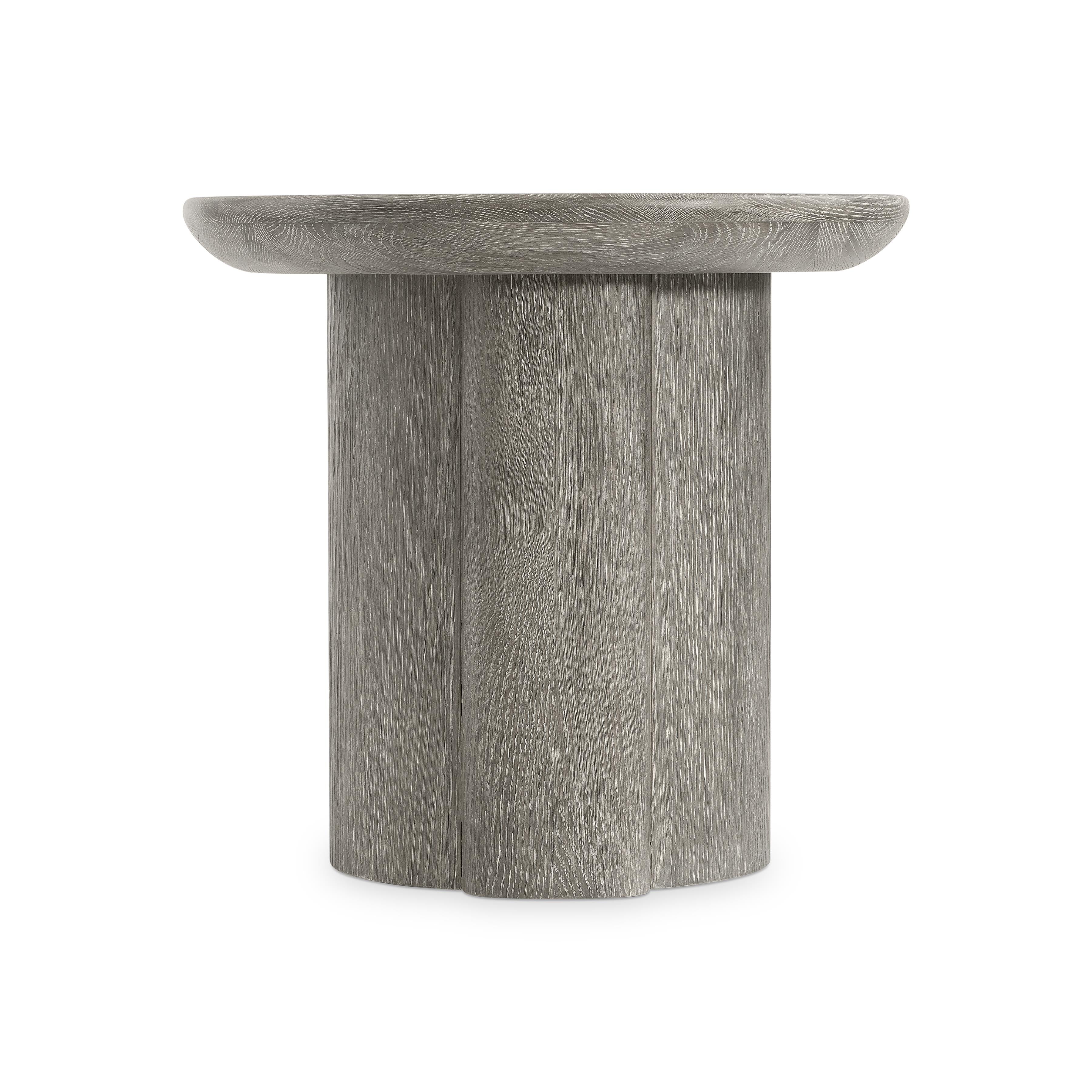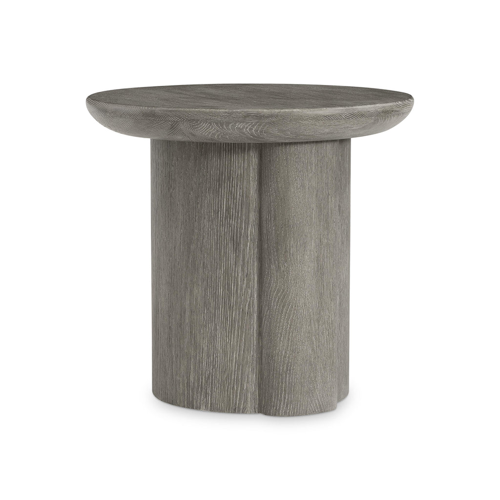 The Monolith side table perfectly balances curves and lines with a smooth round top and circular base. A unique panel extends from the base, offering bold detail. Deep wirebrushing creates beautiful texture in Puma finish.