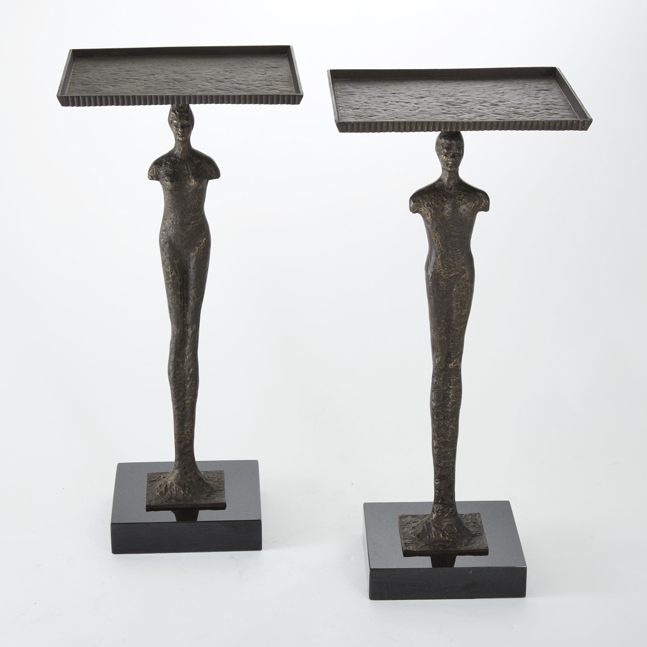 Our Modern Man Table captures humanity at its most basic. The iron figure of the man stands tall on a black granite base. A shallow lipped iron top sits on top of the figure giving a sleek surface.