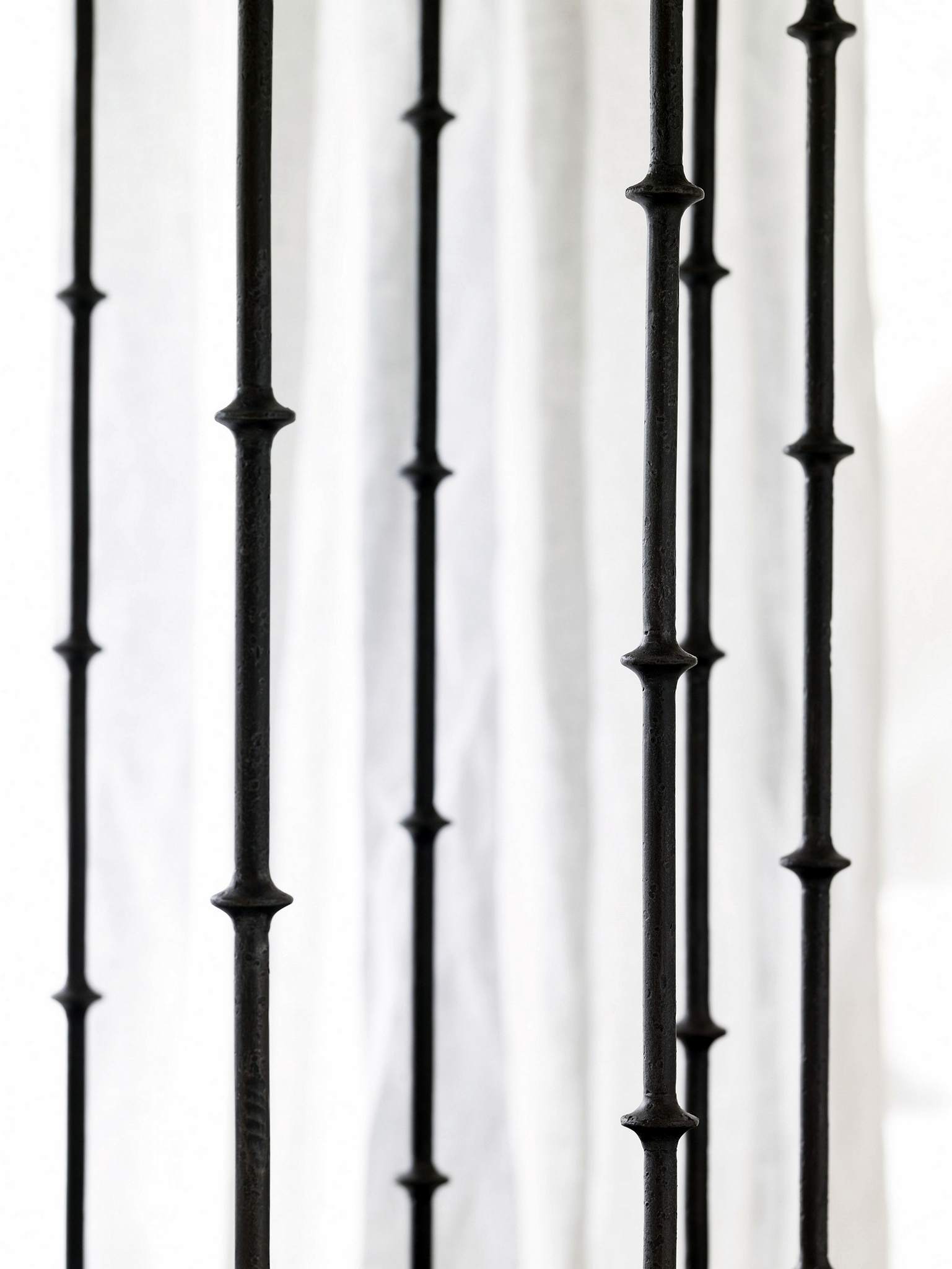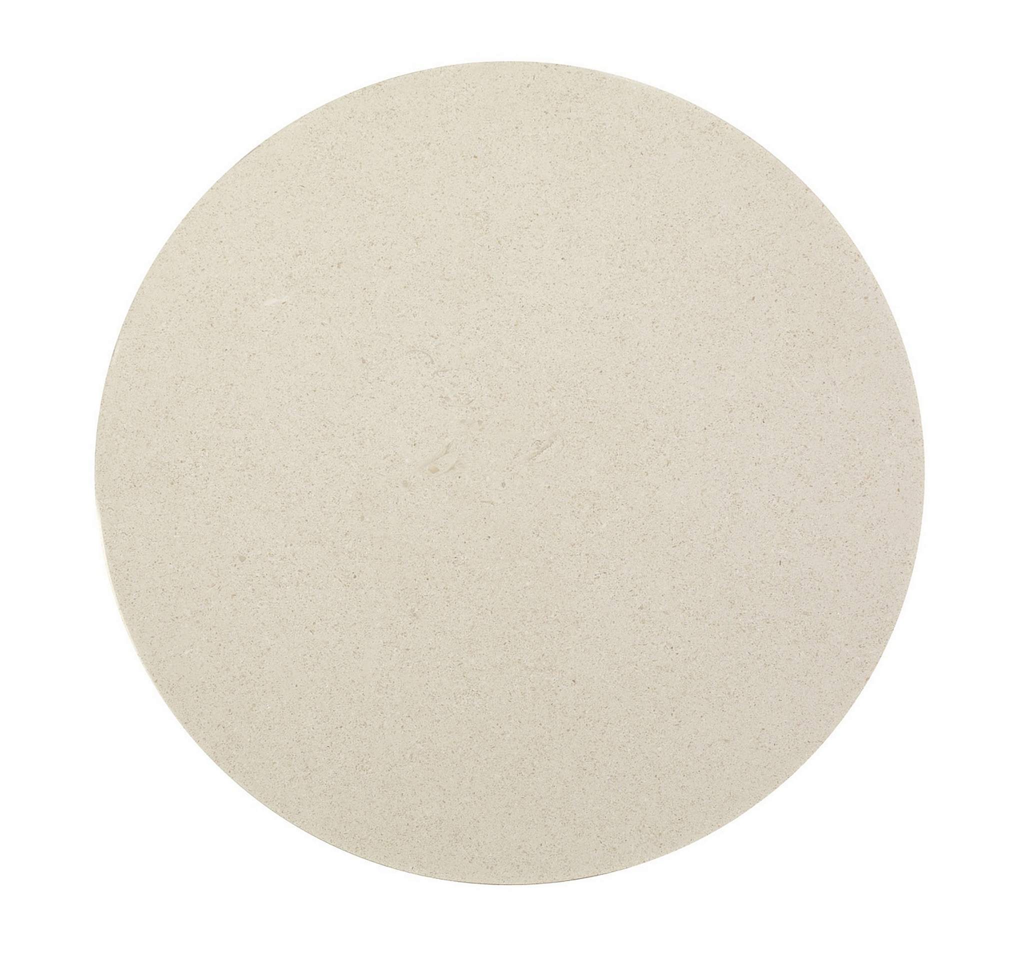 The Astor Table draws inspiration from early 18th century Spanish and Portuguese metalwork. The table's open base is connected by slender Wrought Iron posts accentuated with turning-inspired accents. Alluding to the scattering of stars, the accented metal posts create a light, column-like form. Designed as a side table, center table, or small dining table, the Astor's base has a Wrought Iron finish with a San Giorgio Limestone honed top.