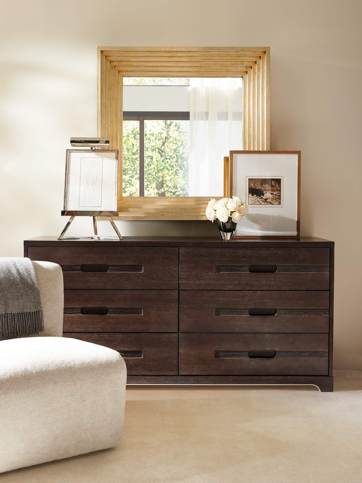 One of the most distinctive pieces of the Everett Collection is the Lemons Stepped Mirror. It was inspired by steps and architectural shapes such as the Coliseum in Rome. The Lemons has a strong presence with its large scale and deep steps. Skip liked taking the simple idea of steps creating concentric squares to a depth of eight inches. While it is a functional mirror, its strong architectural form creates art.