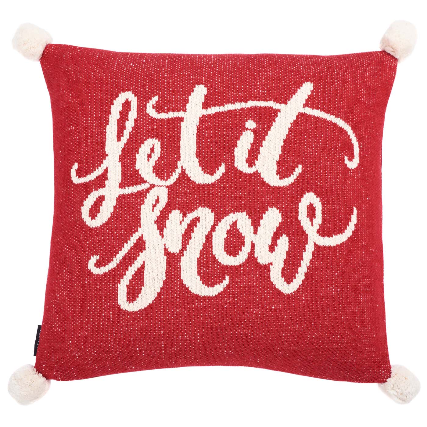 Celebrate one of the season's most cherished songs in contemporary style with this lovely Let It Snow Holiday Pillow. Featuring white flourishing script over a soft red knit backdrop, this stylish seasonal accessory comes replete with pompom accents for a touch of wondrous whimsy.