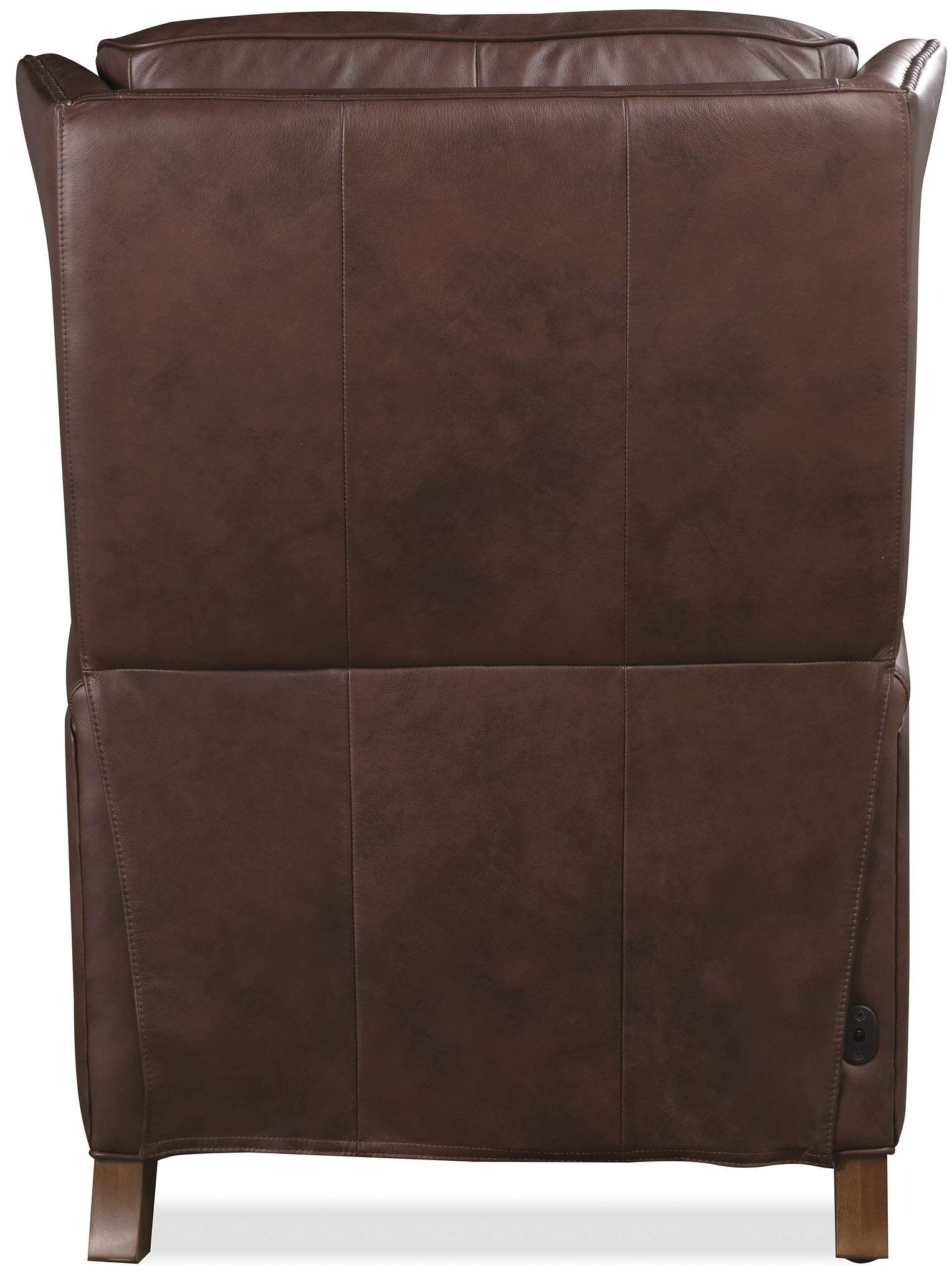 The Lansing Recliner in Enna Caribou leather brings stately flair to traditional settings. Featuring a flared bustle back, tapered legs, and refined brass nailhead detailing, this power recliner is as decorative as it is functional. USB charging and power headrest add hidden modern comfort.