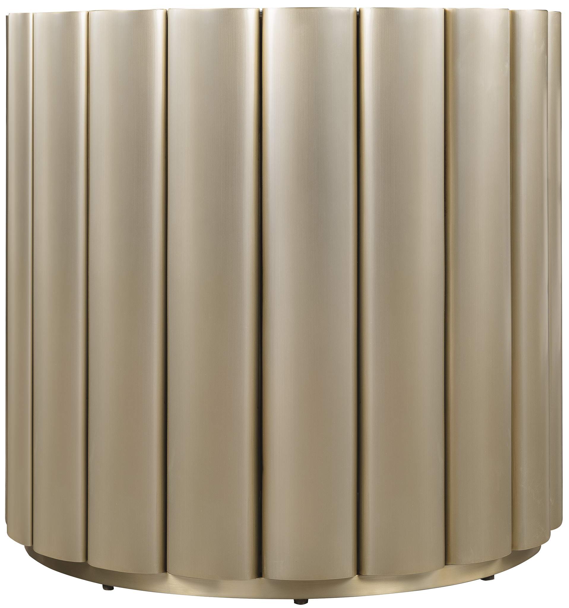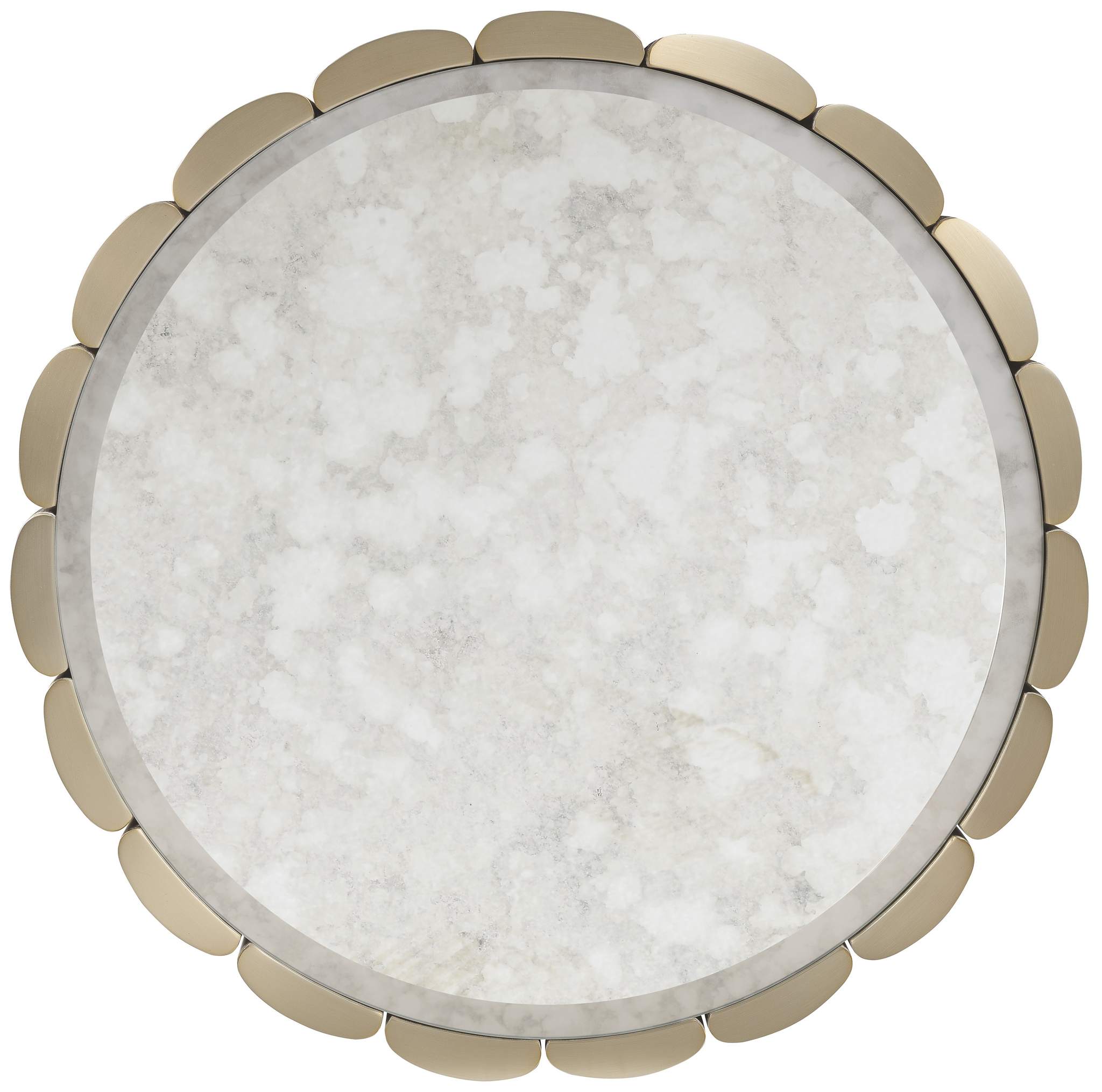 Echoing the design of its cocktail counterpart, this end table flaunts an antique mirror top and soft gold tones. Its watch-band-inspired structure delivers a unique, artful look to any modern interior.