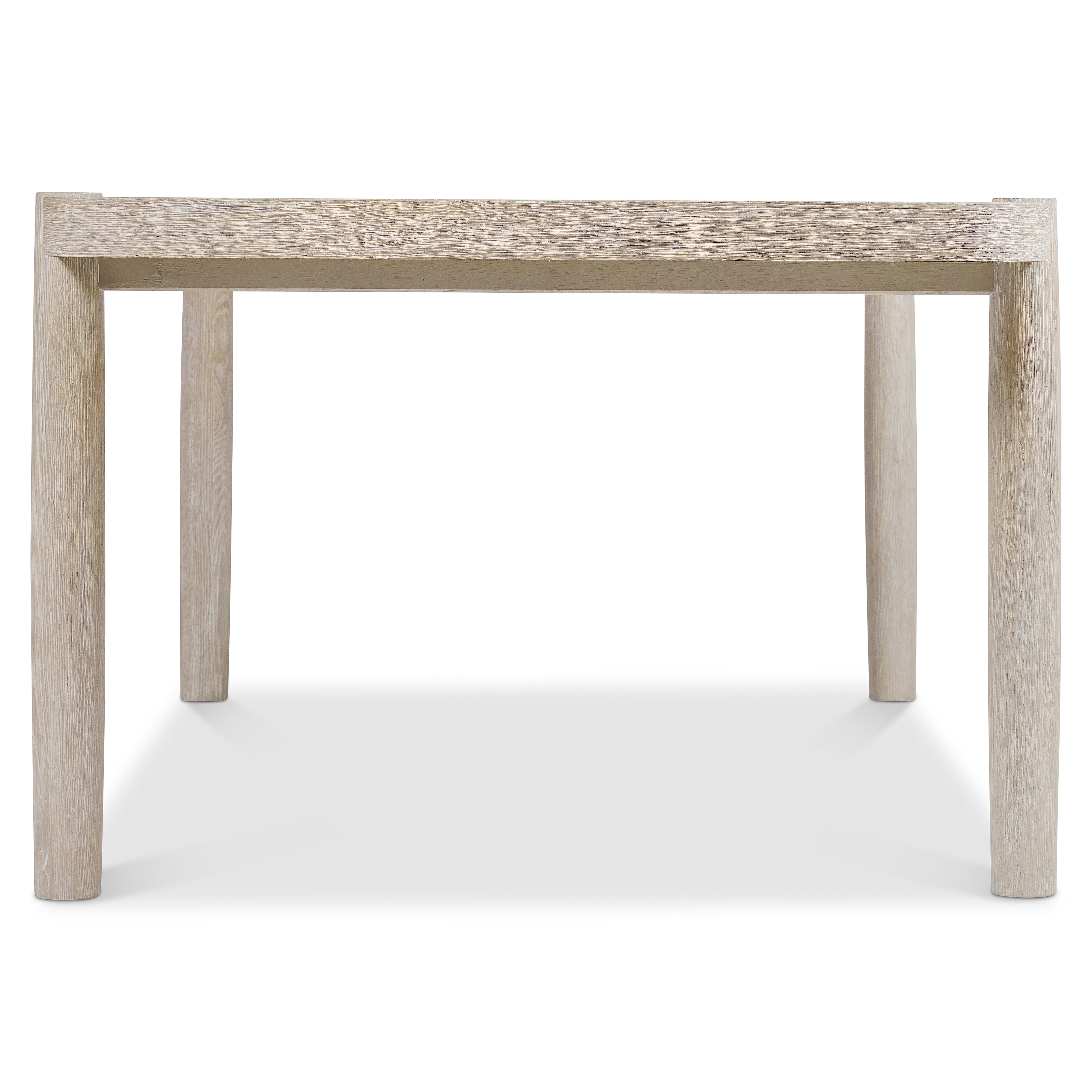The Antibes dining table elevates a minimalist design with shapely tapered legs that intersect with the rectangular top. It creates a simplistic but very modern style in a calming and warm Roz finish. The natural grains and textures of the wood are highlighted for an organic look.
