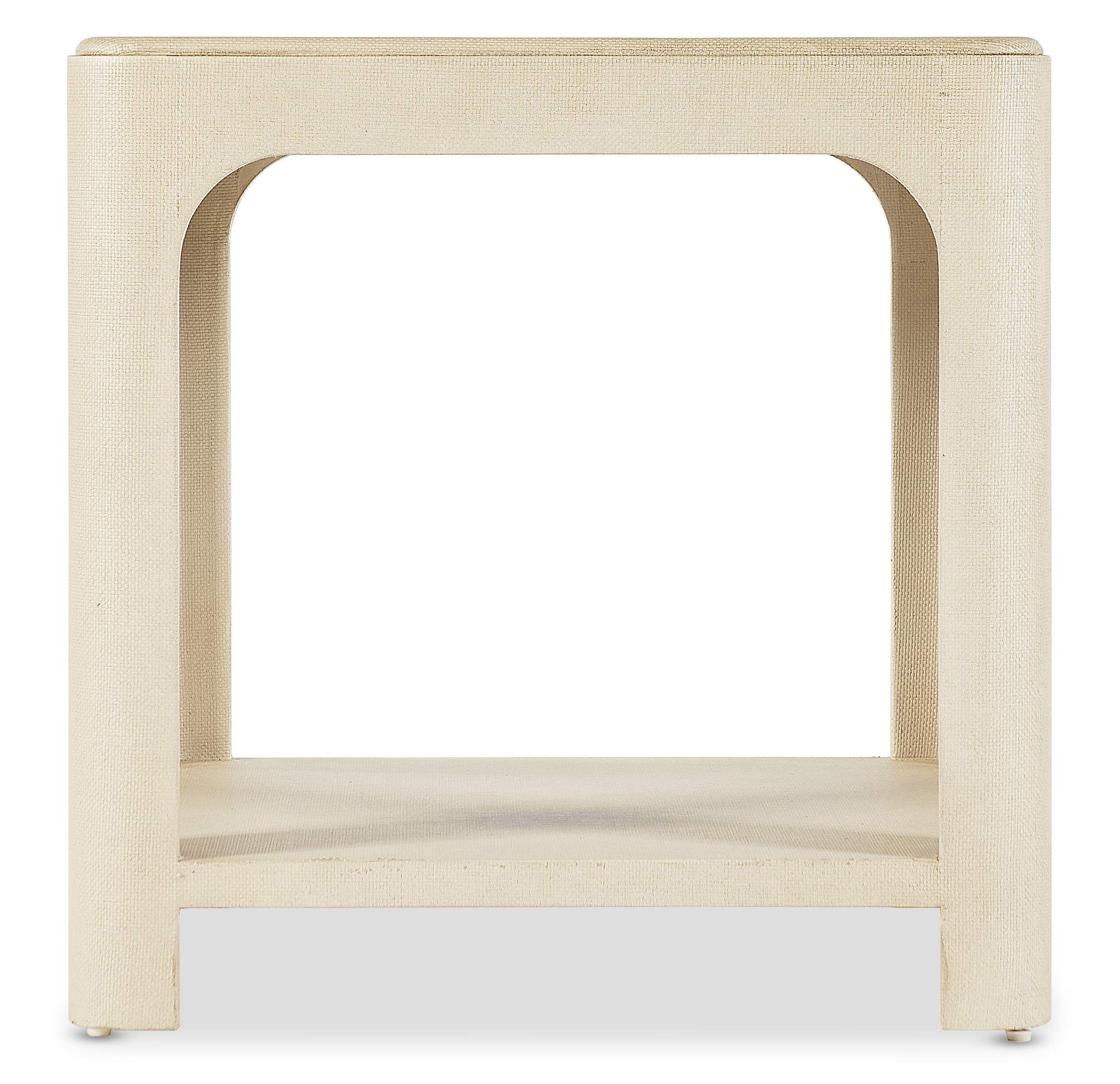 The Archives Raffia End Table combines natural textures with elegant design. Wrapped in raffia and featuring woven-cane details, this square-shaped table offers a refined Flax finish that adds depth and character. Complete with a fixed shelf for additional storage, this end table is perfect for complementing living spaces that blend casual comfort with structured elegance, making it a versatile piece for any room.
