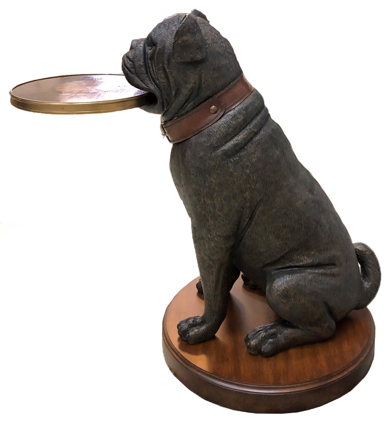 Metallic Brown Finished Cast Resin Bulldog with Tray Table, Antique Brass Accents