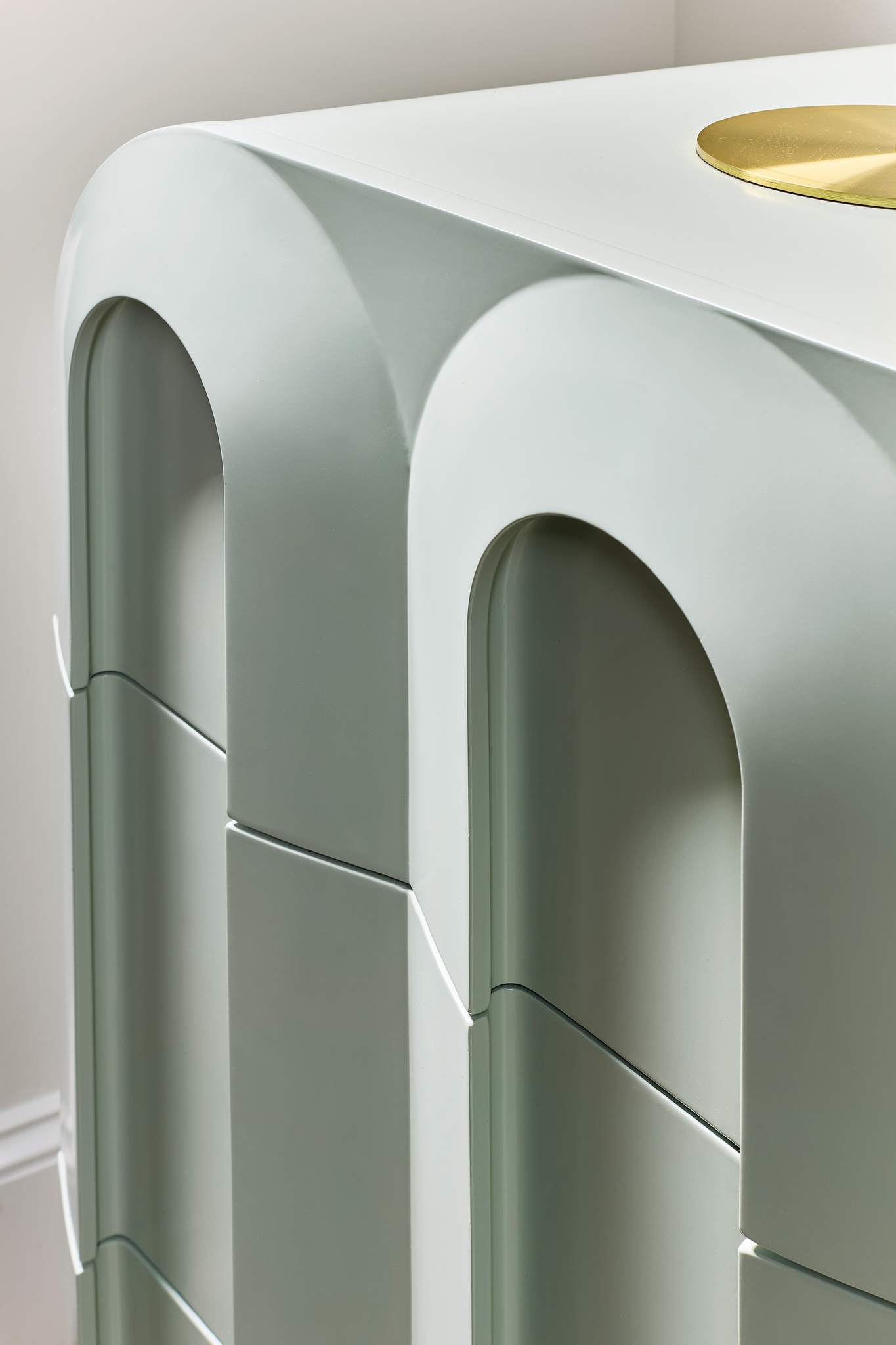 The Groove Three-Drawer Chest from the Commerce & Market collection is a striking storage solution, designed with modern elegance in mind. Made of white oak solids and oak veneers, it boasts a sculpted, grooved design on the front of its three spacious drawers. Painted in a blue-green seafoam color, this chest adds a pop of personality to any living room or bedroom. The plinth base provides a stable and contemporary foundation. Ideal for a modern or contemporary setting.