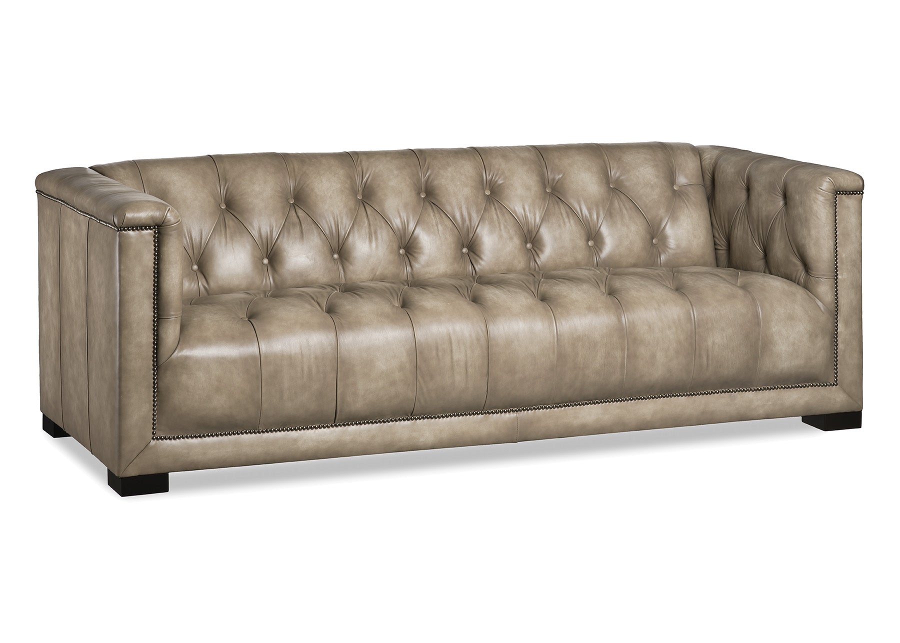 Dobbs Sofa in Lola Wheat Leather Upholstery, Tack Accents