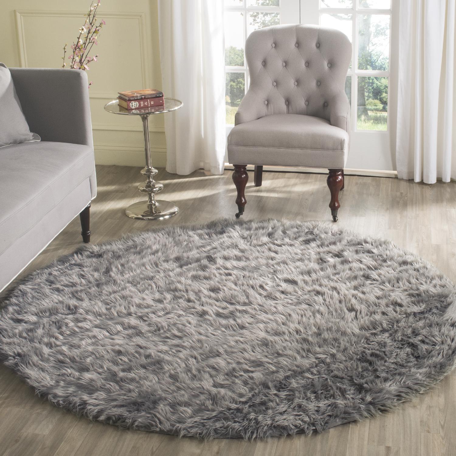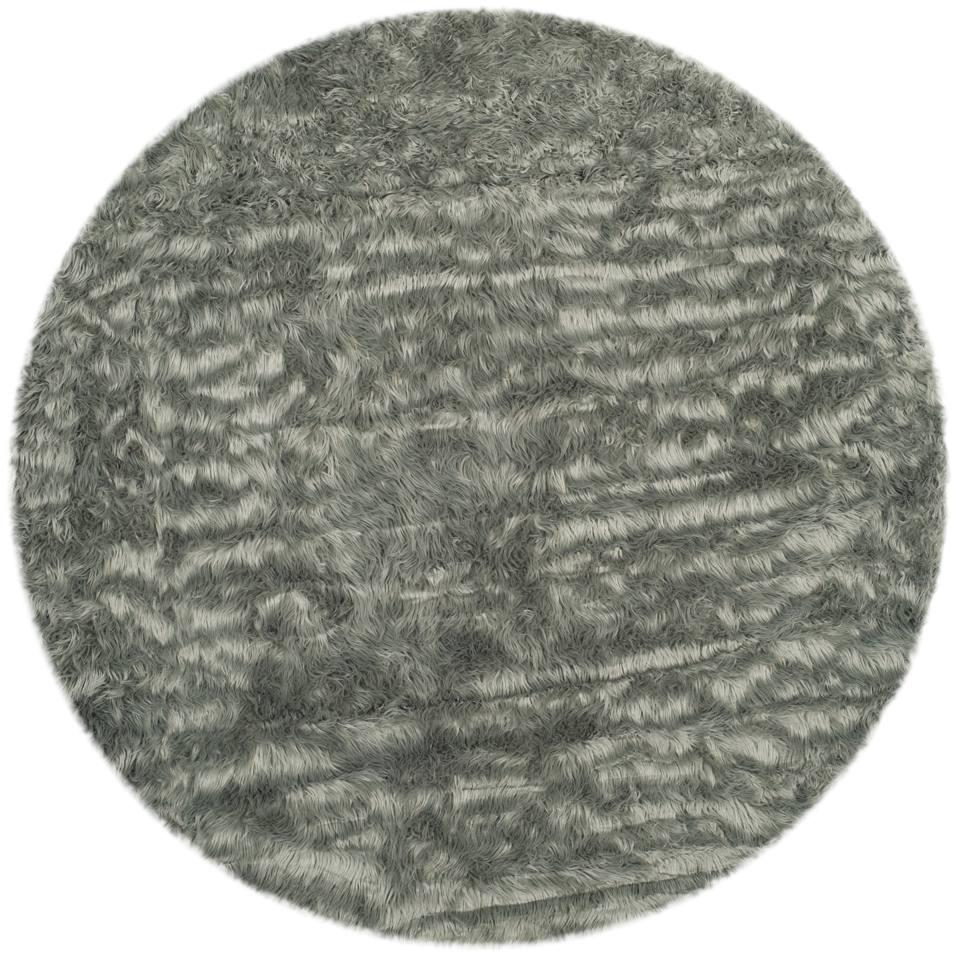 Faux Fur Sheepskin Round Area Rug, FSS235D, 121 X 121 cm in Grey
