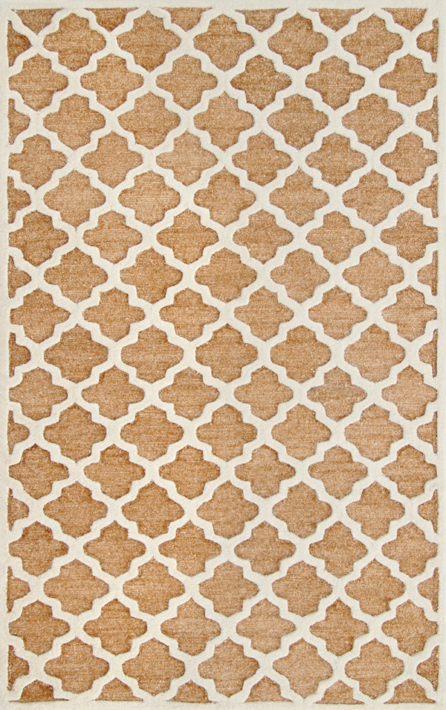 In the beautifully textured Precious rug collection, patterns from quatrefoils to geometrics are hand-tufted of cut pile against a loop pile ground flecked with shimmering metallic yarn. Yarns in Precious rugs are a blend of polyester, wool and cotton.