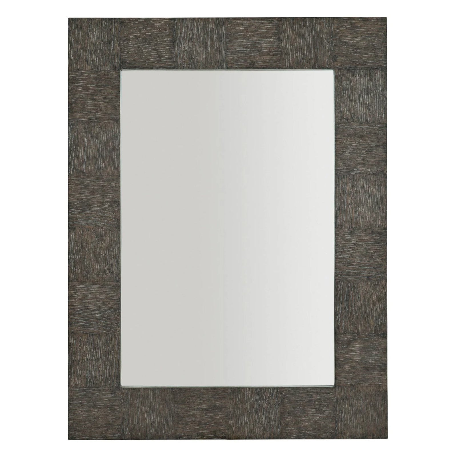 The Bernhardt Linea collection artfully blends the natural elements of rustic design with clean lines and casual but luxurious finishes. What makes this rectangular mirror so spectacular is its dramatic cerused oak frame: created by a process that dates back 500 years, the texture of the wood grain in emphasized, the deep pores accentuated. The inset non-beveled glass provides a smooth counterpart to the striking visual impact of the frame.