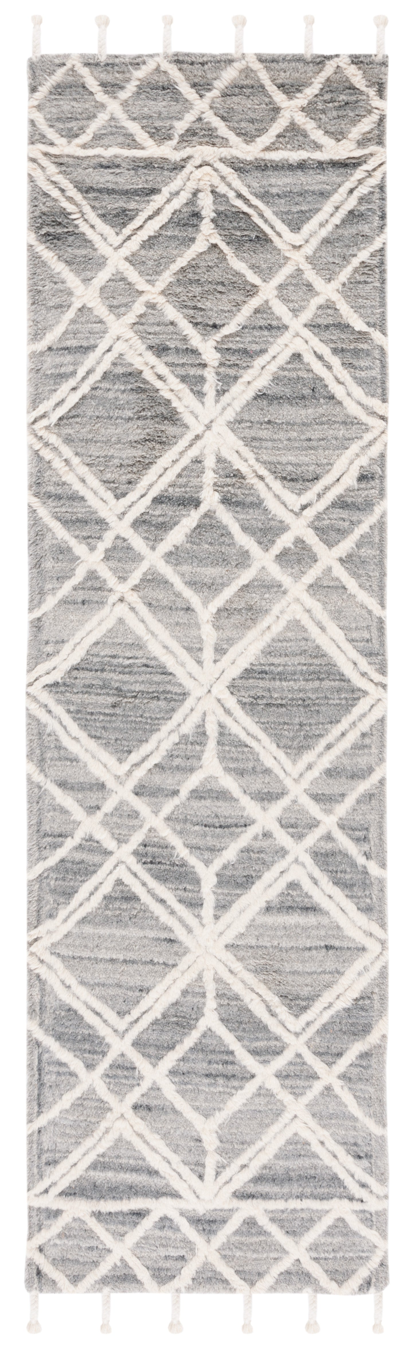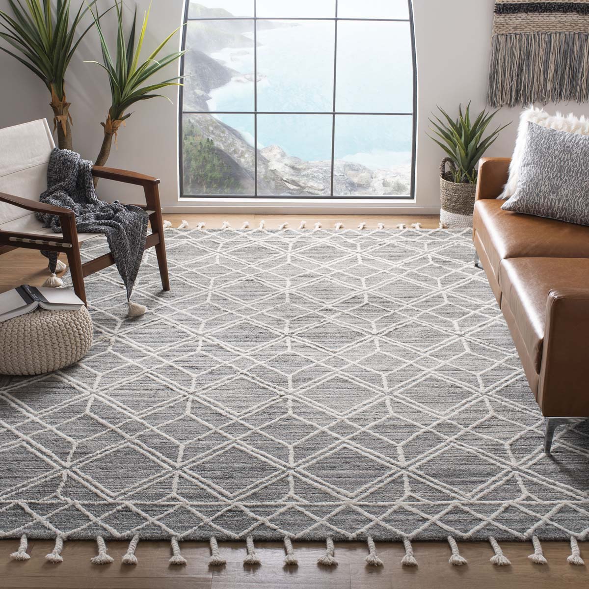 The sophisticated grey and ivory palette brings a serene and versatile charm to any room, harmonizing with both bold and subdued color schemes. The hand-tufted construction embodies artisanal quality and durability, lending a personal touch to the woolen fabric that is both luxurious and enduring.