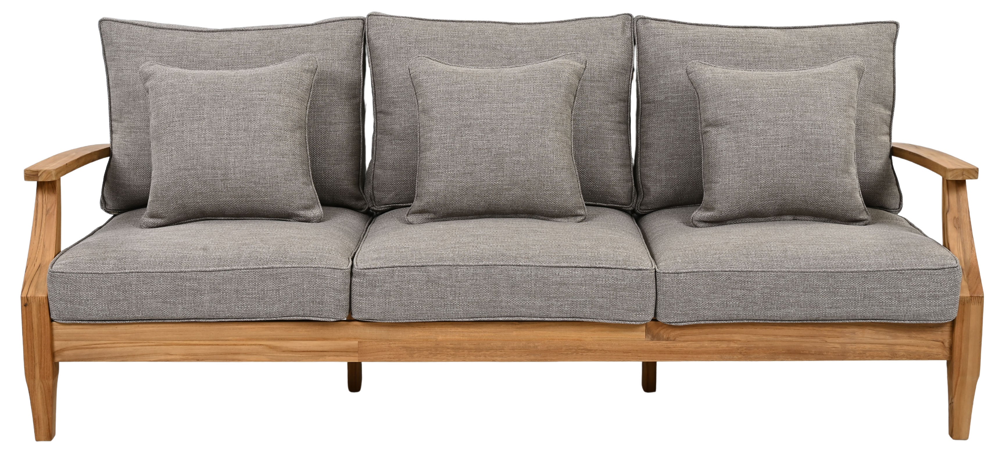 The lavish look of coastal villa decor comes to any outdoor patio, porch, or backyard deck with the Martinique Patio Sofa. With ample seating for festive outdoor soirees or relaxing under the stars, Martinique boasts smooth curves and shapely angles in a natural eucalyptus frame with plush, all-weather cushions adding luxury and comfort season after season.