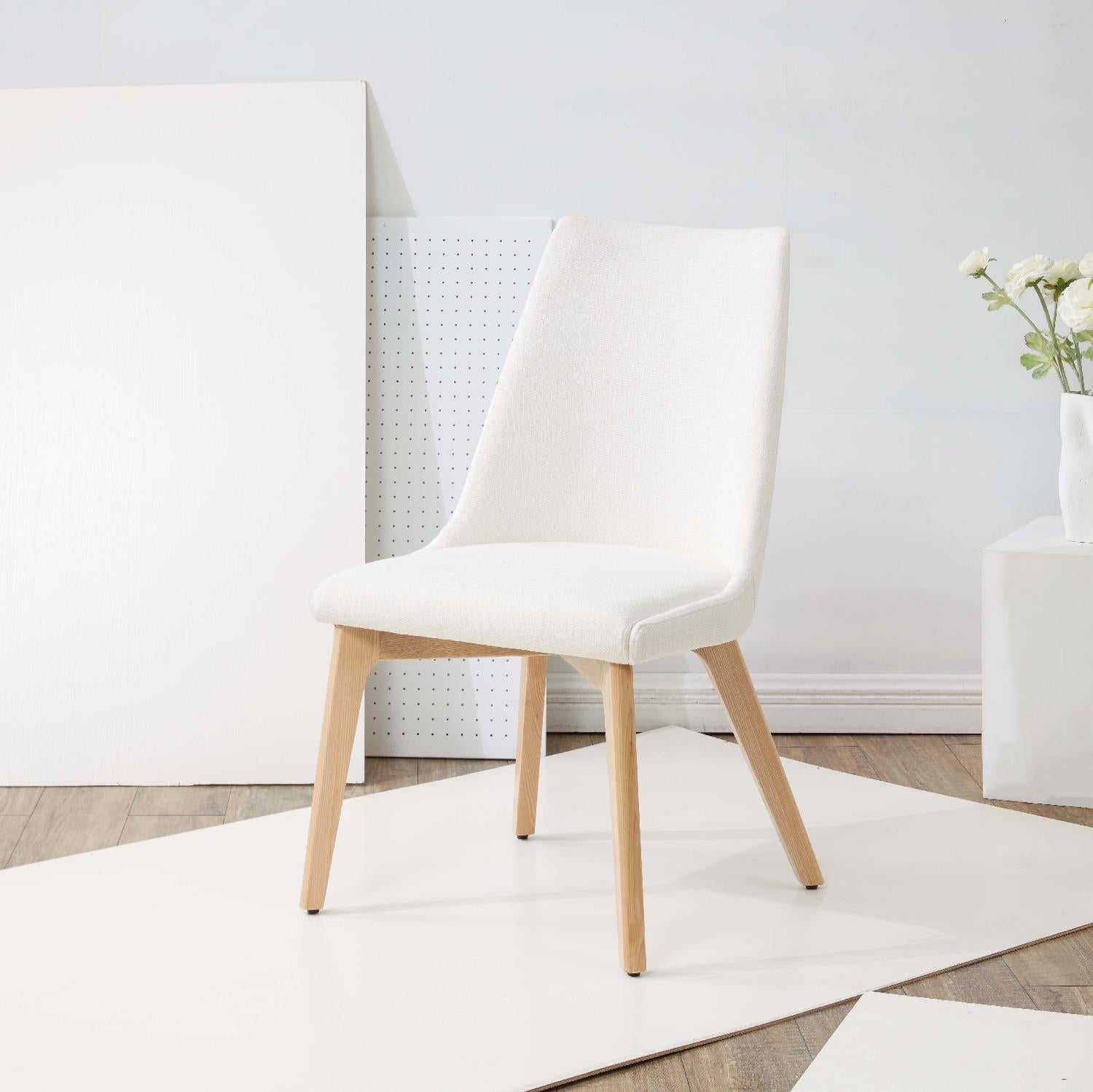 Enliven your home with the inviting grace and sophistication of our Sandralynn dining chair. The back subtly curves to invite you for a comfortable stay. The minimal and streamlined profile of the dining chair features a generously padded back and seat. It is perched upon tapered pinewood legs to harmonize and uplift your dining area. Upholstered in high-quality linen in an elegant ivory shade, our dining chair is sure to serve as a comfy and versatile addition to your home.