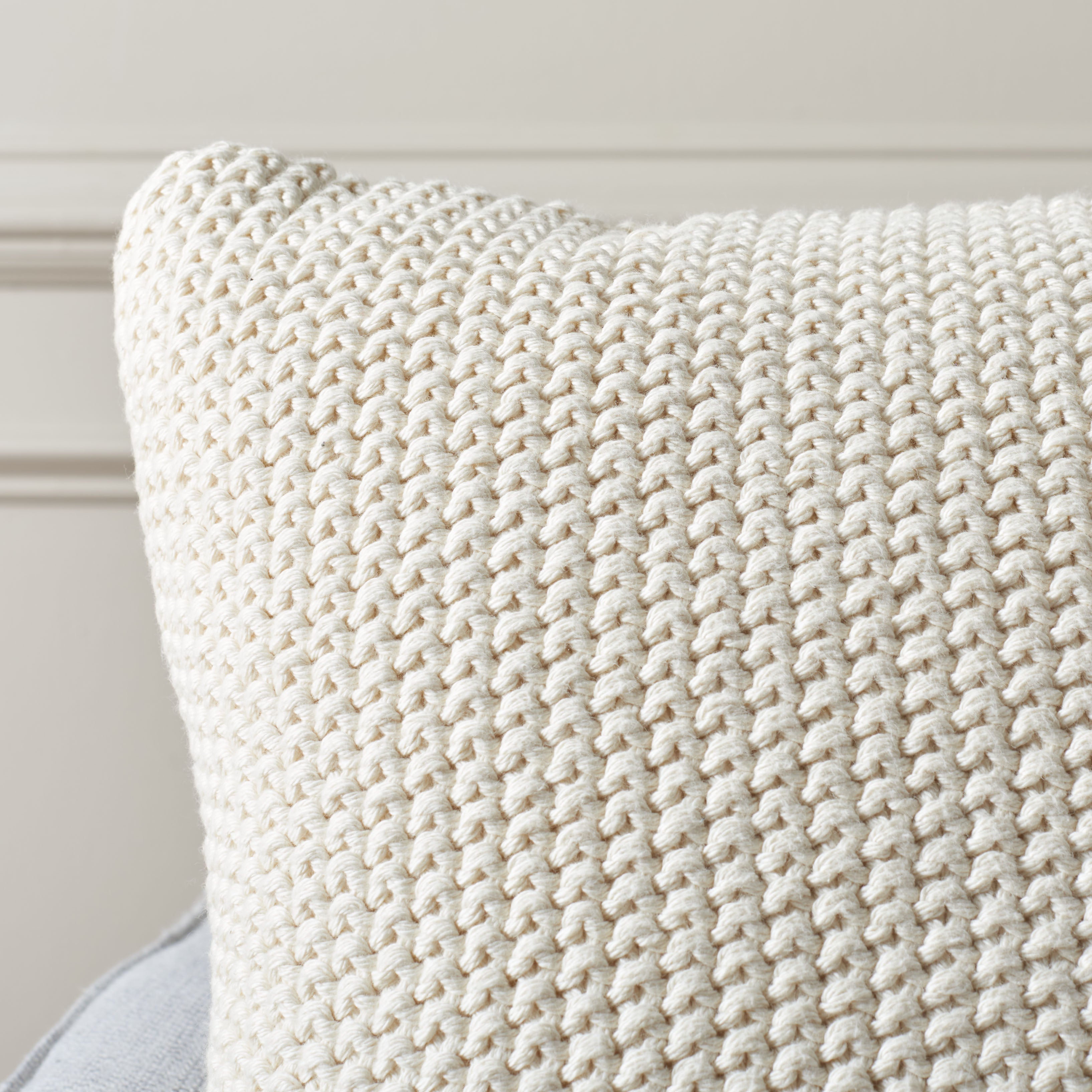 Introducing the Josie Pillow: crafted with a soft cotton pillow cover, this pillow provides a delightful texture that invites you to touch and feel its unique knit pattern, which adds a charming and cozy element to your living room or bedroom setup. This pillow comes in an elegant ivory hue that effortlessly blends with a wide range of color palettes, offering a touch of subtle sophistication to your space.