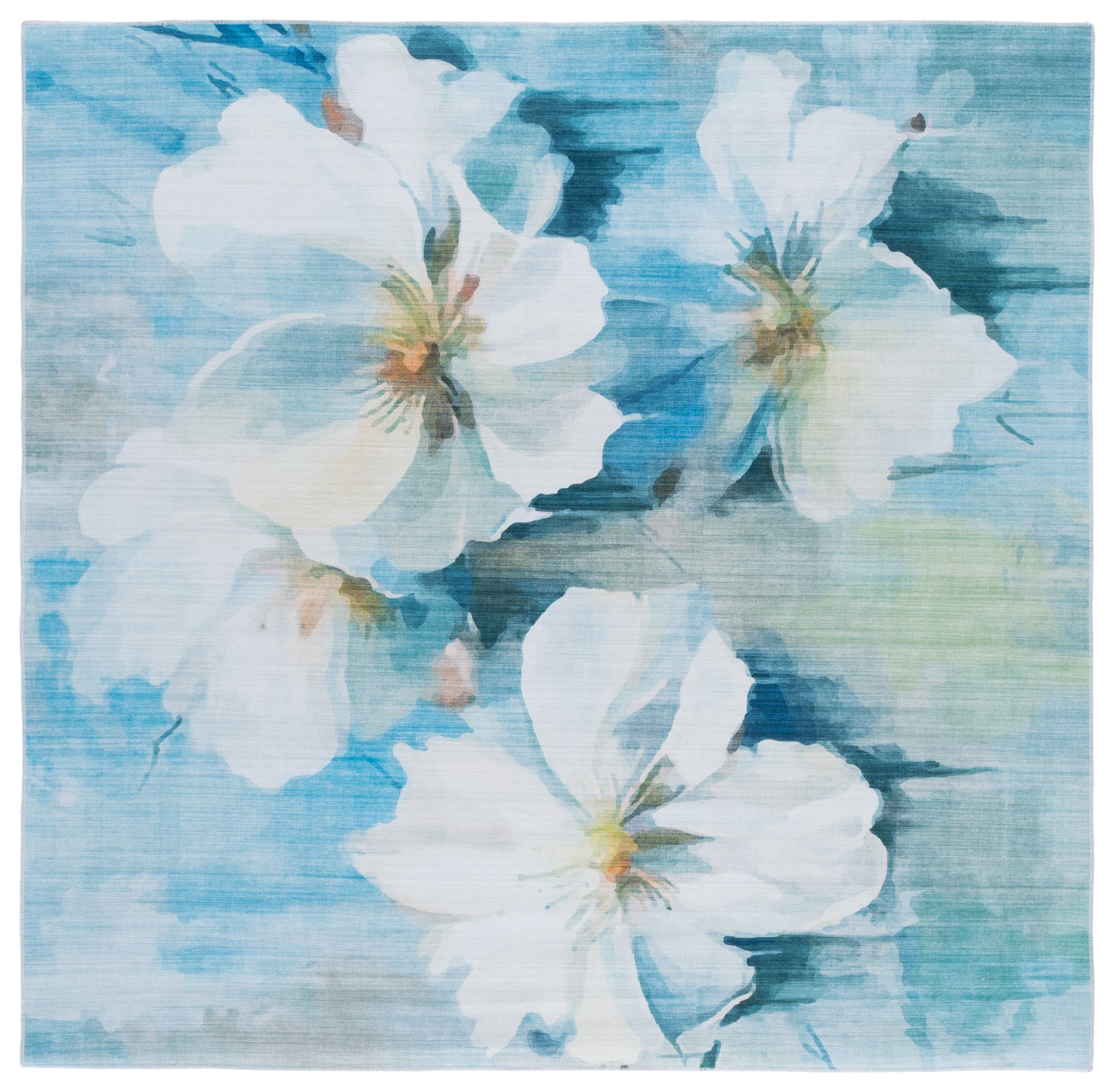 The runner's captivating design features a beautiful floral pattern that invokes a sense of calm and grace in any setting. The ethereal blend of light blues and soft ivory hues breathes life into the artwork, creating a tranquil backdrop for your home decor. Whether gracing your hallway or accentuating your living space, this runner rug is sure to be a conversation starter and a beloved addition to your interior collection.