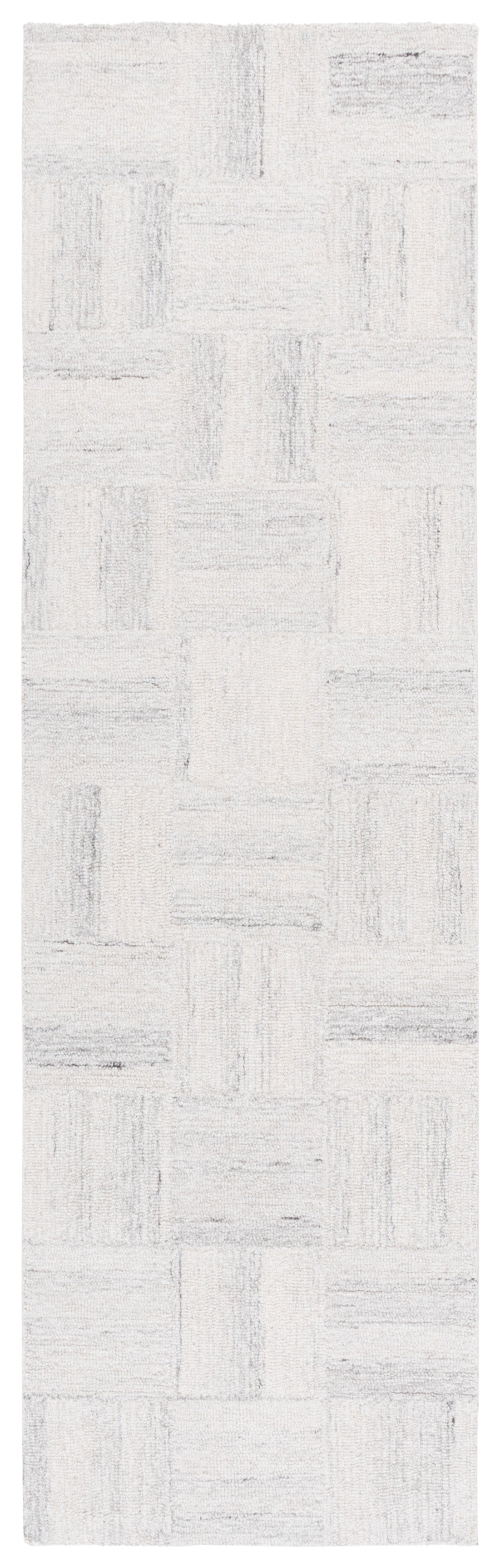 Elevate your home with the simple elegance of this Hand Tufted Wool Pile rug. Showcasing a chic basketweave design, the rug brings timeless sophistication with its Ivory and Grey hues woven into a beautiful pattern of intersecting blocks. Crafted with care in India, this contemporary piece boasts a comfortable 1/2 inch pile height, making it not only a visual treat but a delight underfoot. Ideal for long corridors or as an accent piece in your living space, this runner is a testament to classic style and artisanal craftsmanship. Invoke a sense of tranquility and modern flair in your interior with this exquisite runner that seamlessly combines comfort, durability, and artful design.
