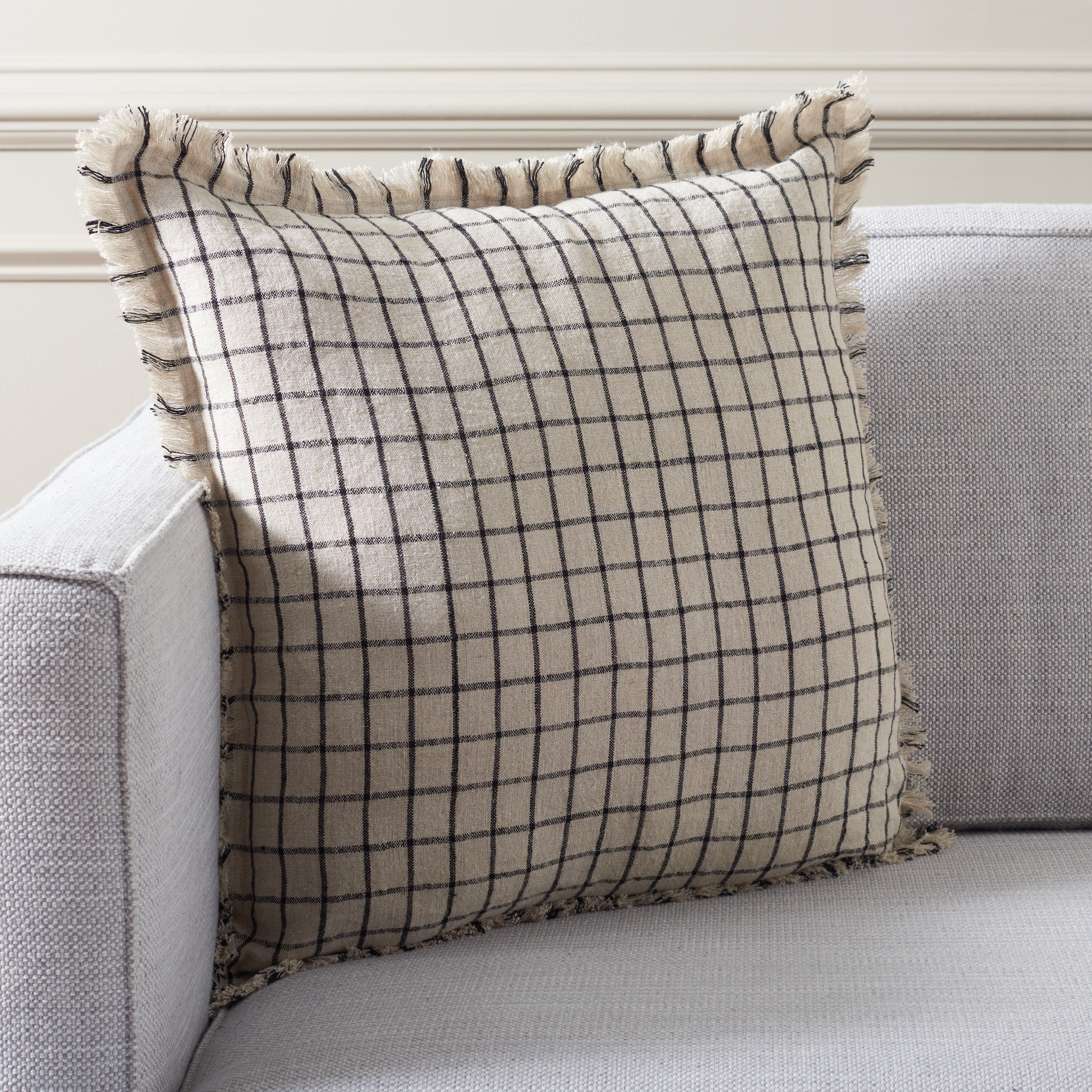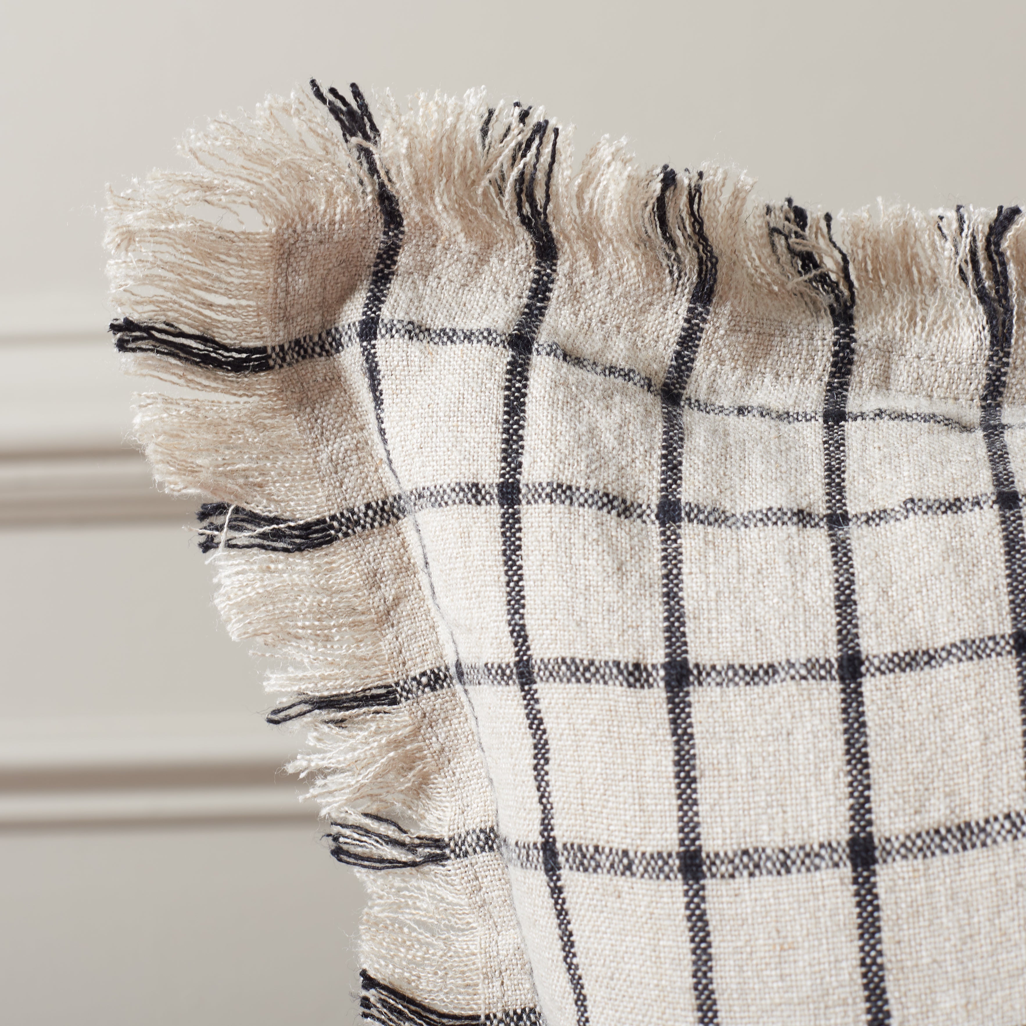 Crafted for those who appreciate the timeless elegance of simplicity, the Raie pillow in natural and black is a testament to understated style. This cozy linen square pillow is adorned with a classic pattern that brings a touch of sophistication to any room. Each corner is embellished with playful fringes, adding a hint of whimsy and texture. Whether placed on your favorite armchair or nestled among an array of cushions, the Raie pillow invites comfort and adds an element of chic design.
