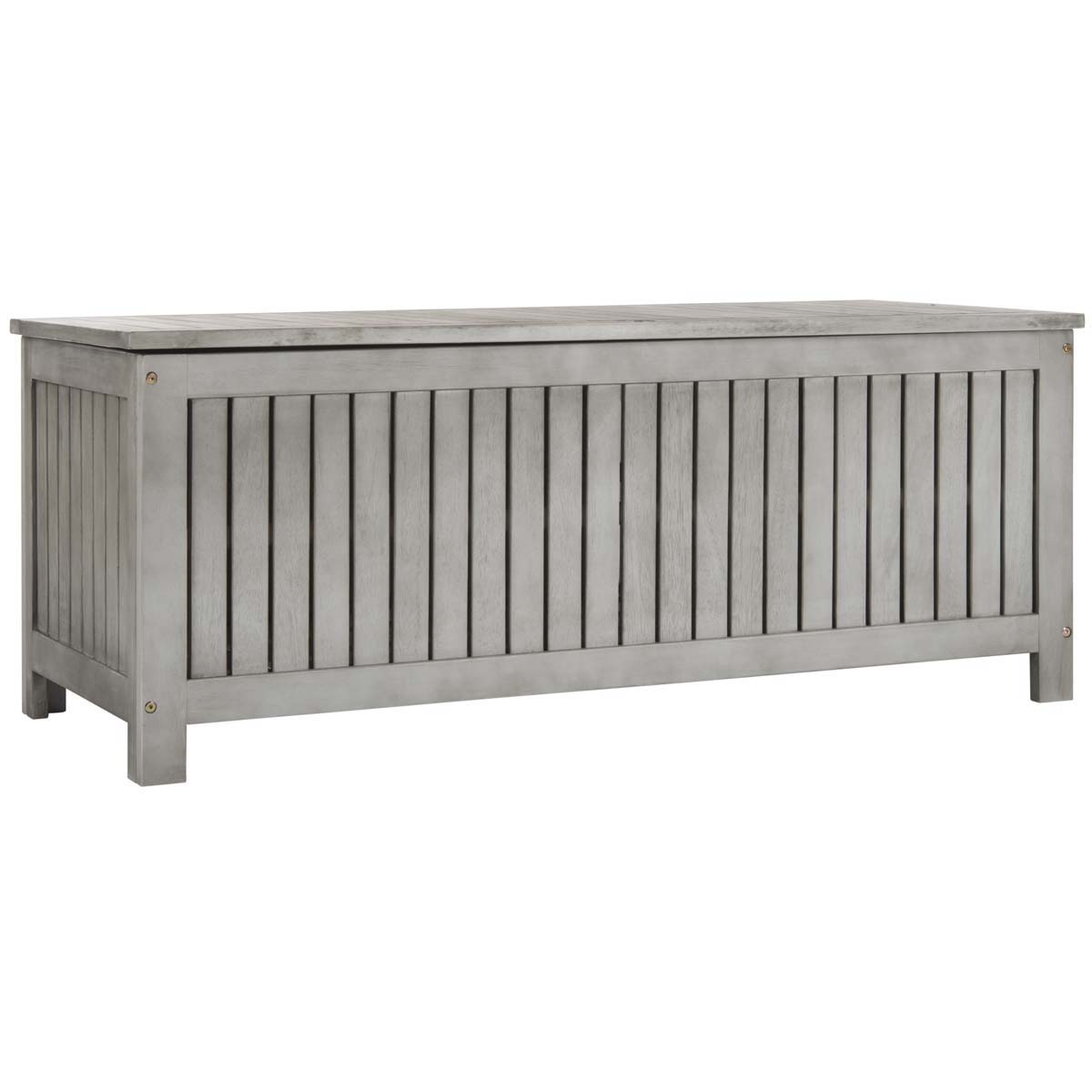 Inspired by a classic resort in North Carolina, this 47.63 inch cushion box brings charm and grace to any outdoor room. Designed for ample storage, its traditional grey wash finish and eucalyptus wood craftsmanship ensure it will be enjoyed for generations.