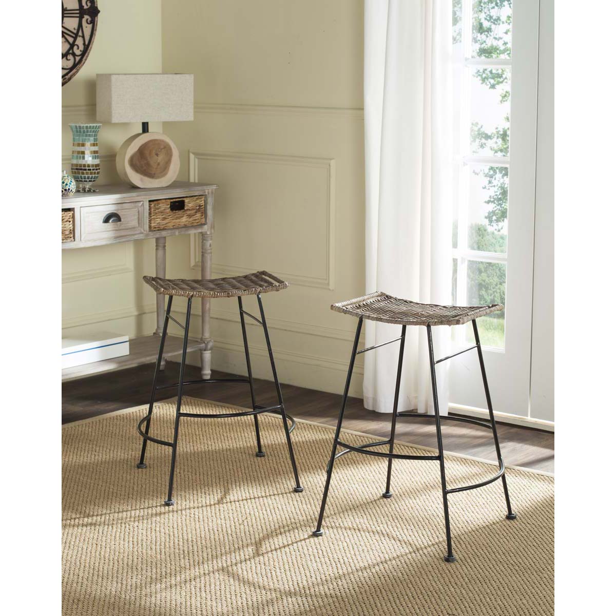 Safavieh Atara Rattan Seat Counter Stool - Grey (Set of 2)
