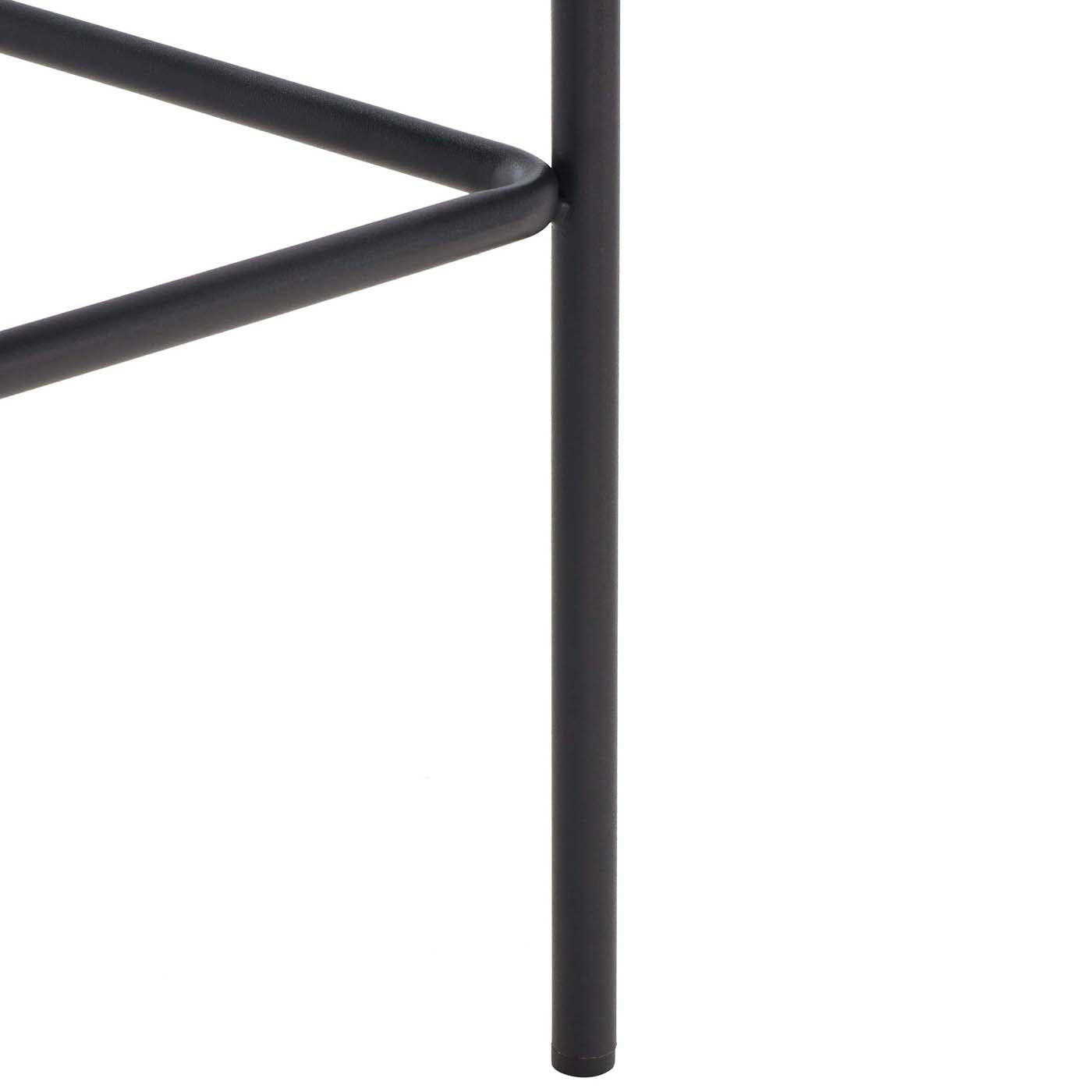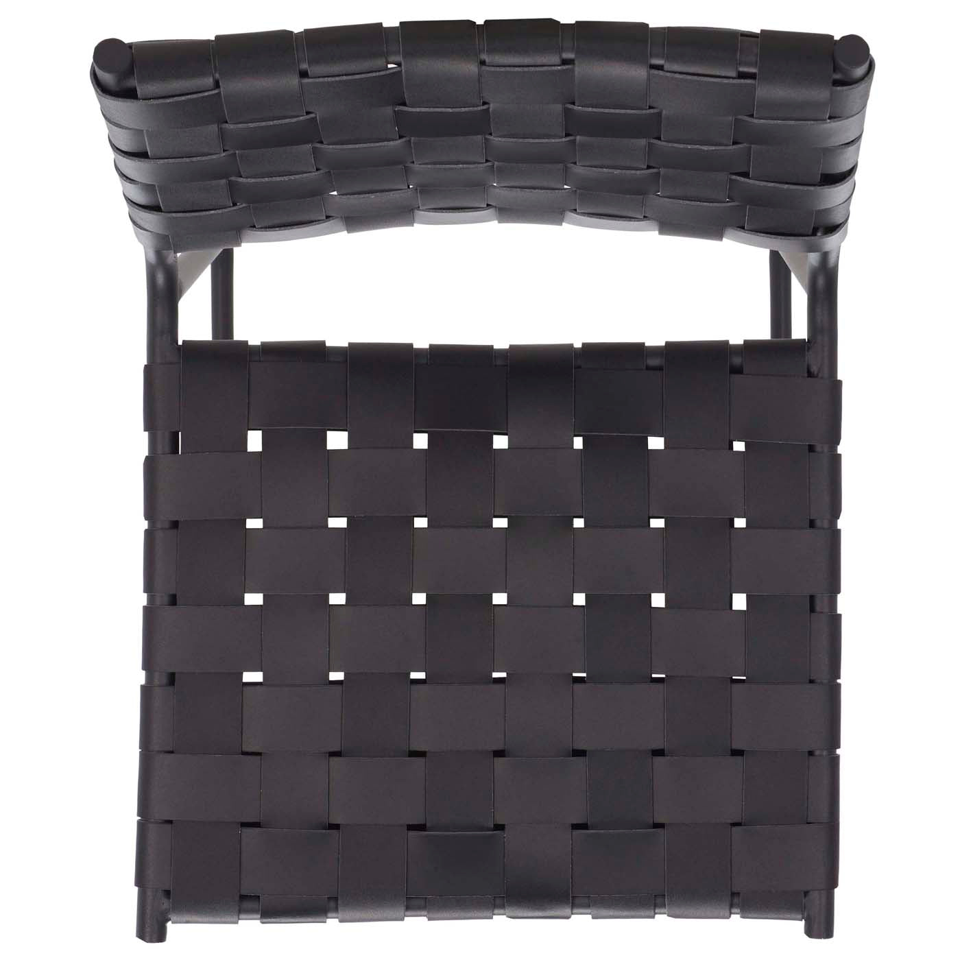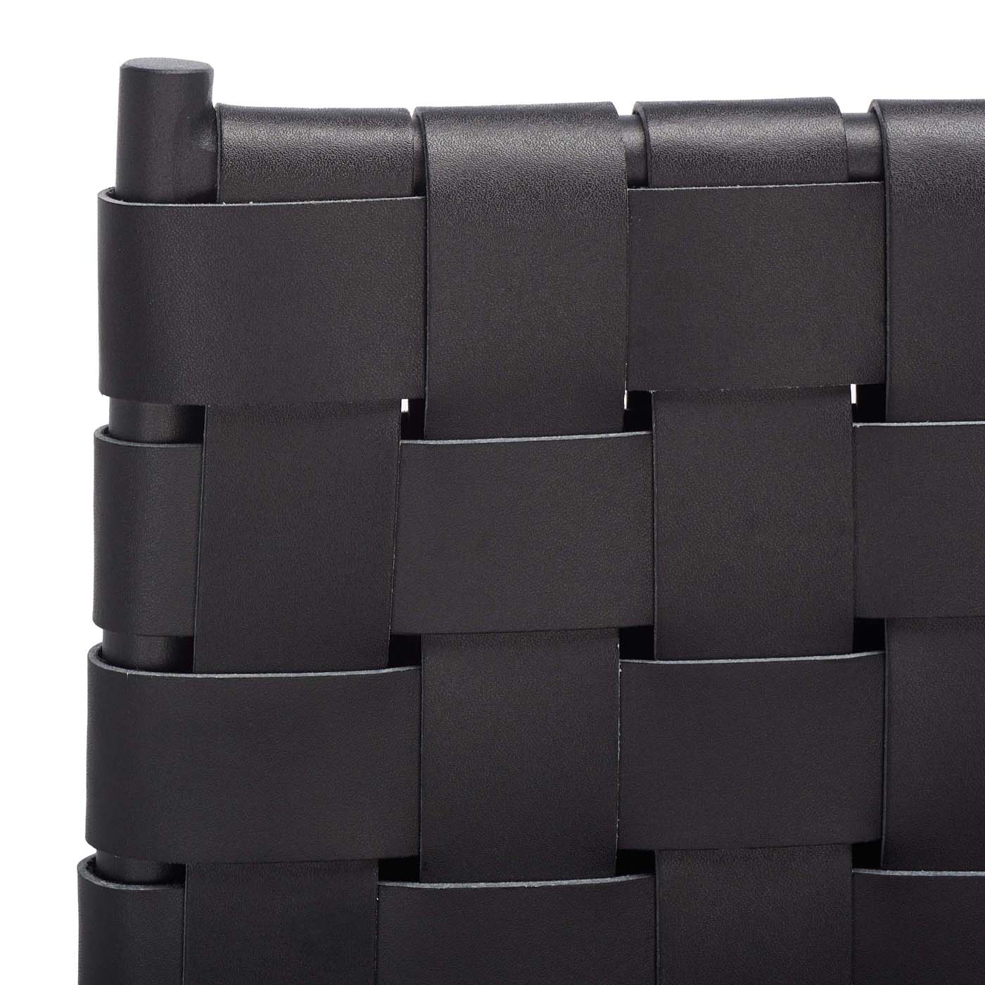 A high-style design for today?? elevated dining, this Bahari Counter Stool redefines any modern interior with its relaxed contemporary beauty. A clean-lined black metal base provides the perfect artistic contrast to Bahari?? basket-woven black leather seat and cut-out back.