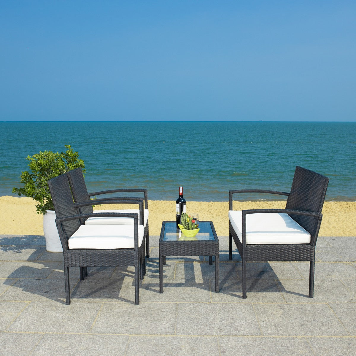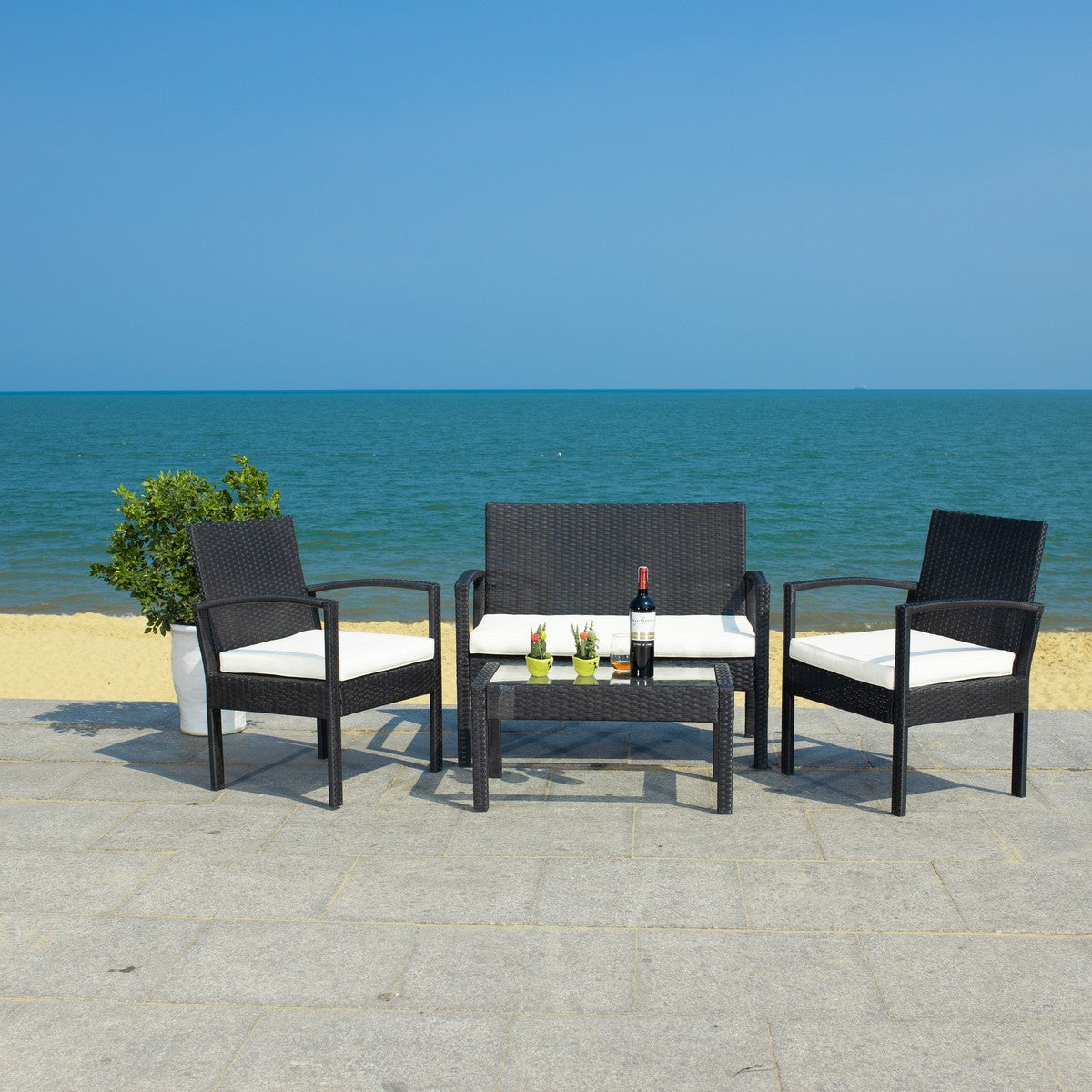 Safavieh Bassey 4Pc Living Set - Black/Beige