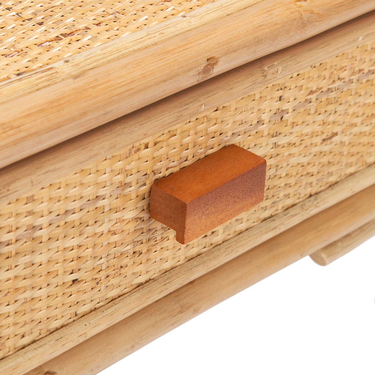 The Bea Nightstand takes its inspiration from the secret island getaways of the South Pacific, masterfully displaying alluring organic style. Crafted of wood and rattan in rich natural tones, Bea???s slim drawer and ample shelf are wonderfully accented by a woven lattice back, bringing a beachside ambiance to any bedroom.