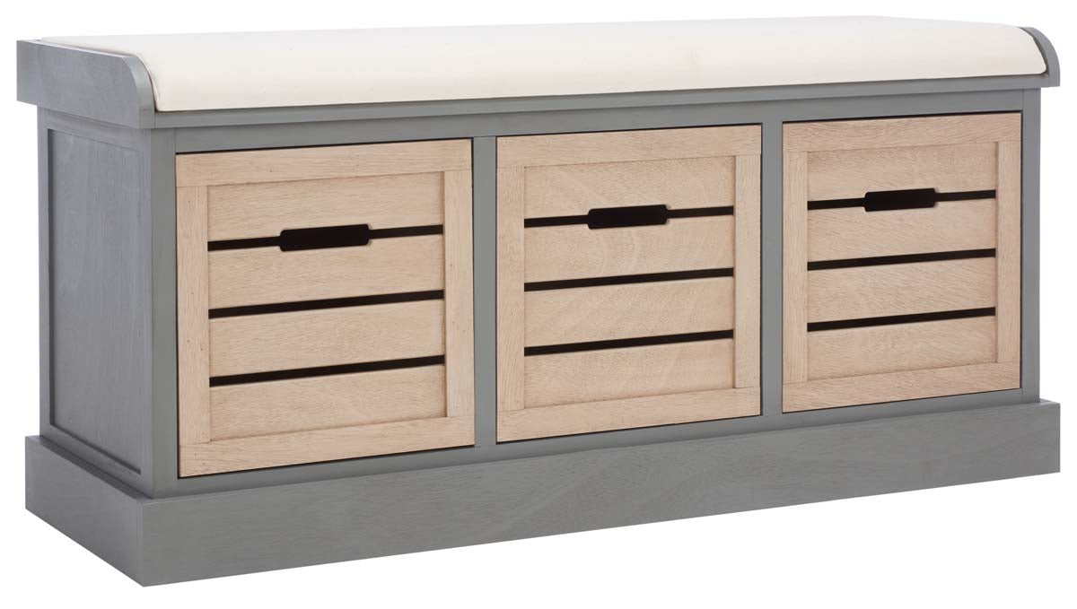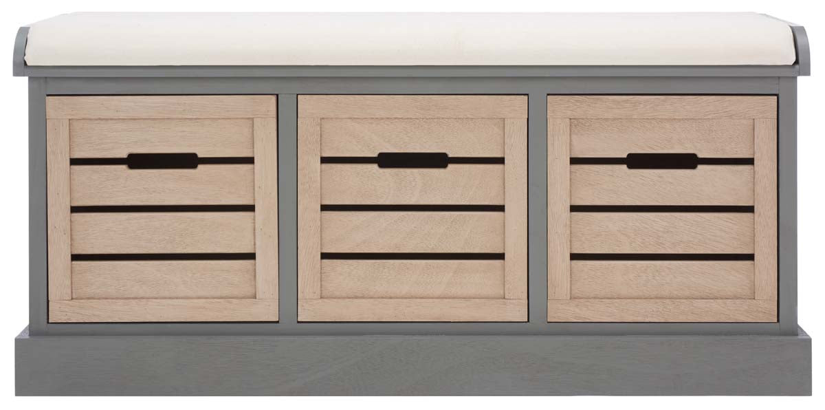 Safavieh Briar 3 Drawer Cushion Bench - Distressed Grey Frame/Sand Drawers