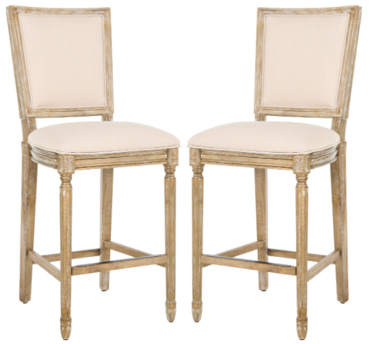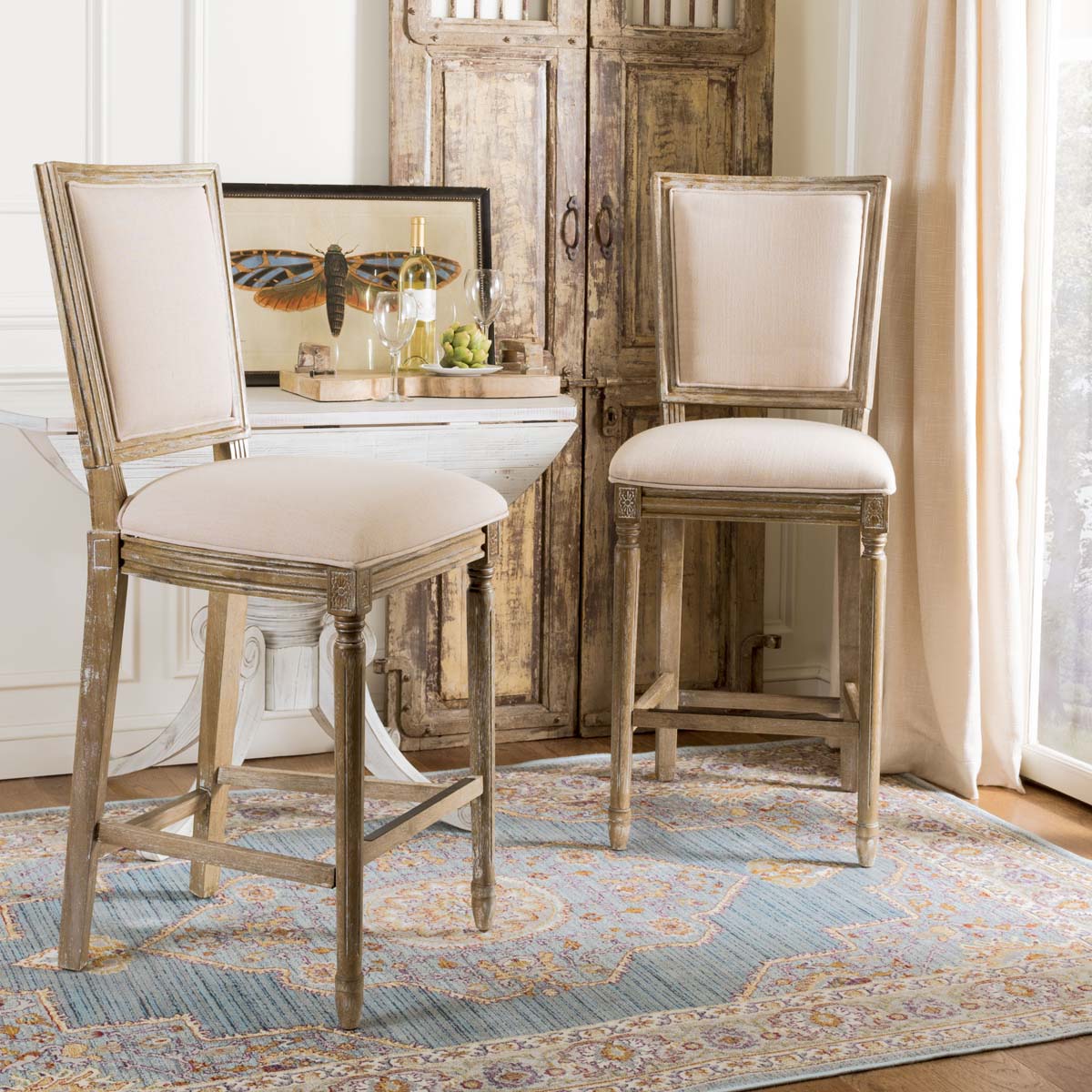 Safavieh Buchanan Rectangle Bar Stool-Beige/Oak (Set of 2)
