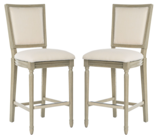 Safavieh Buchanan Rectangle Bar Stool-Light Beige/Rustic Grey (Set of 2)