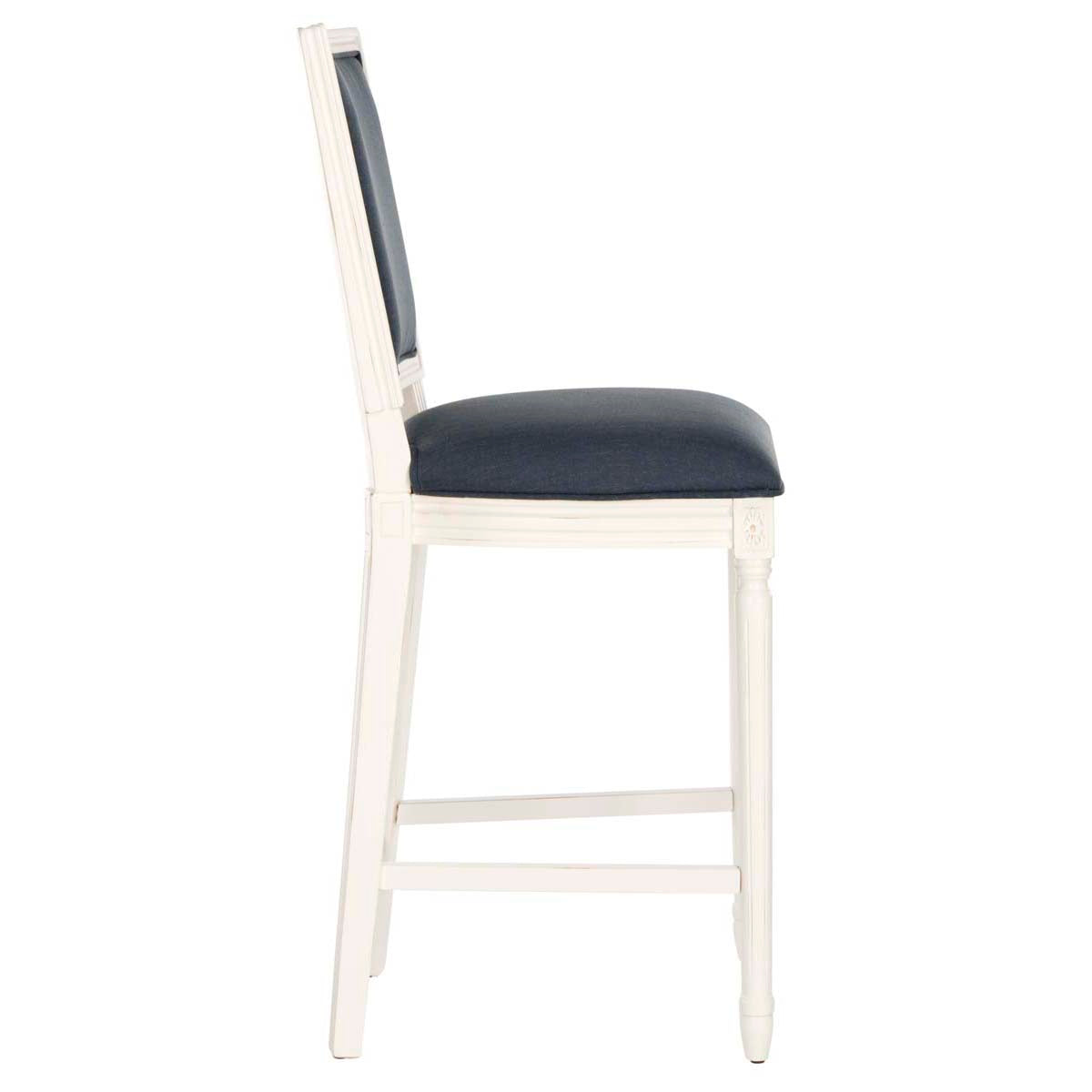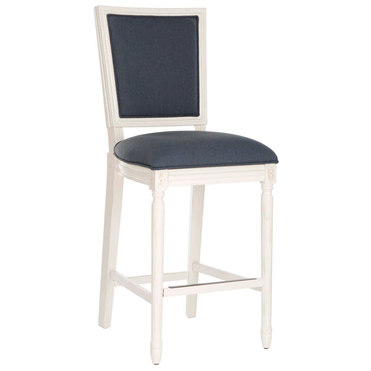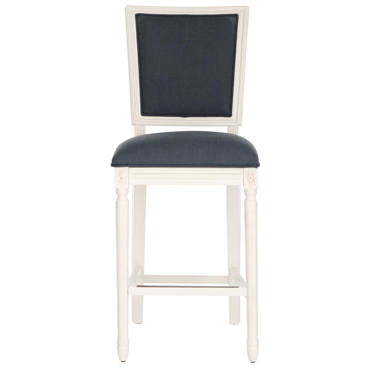 Entertain in style with this rectangle bar stool. Designed to bring French charm to the table, its chic navy upholstery is paired with finely carved distressed white wood. Designers use it to add instant character to any dining area or breakfast bar.