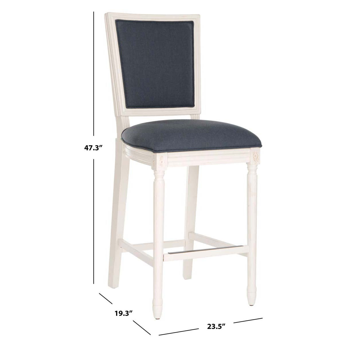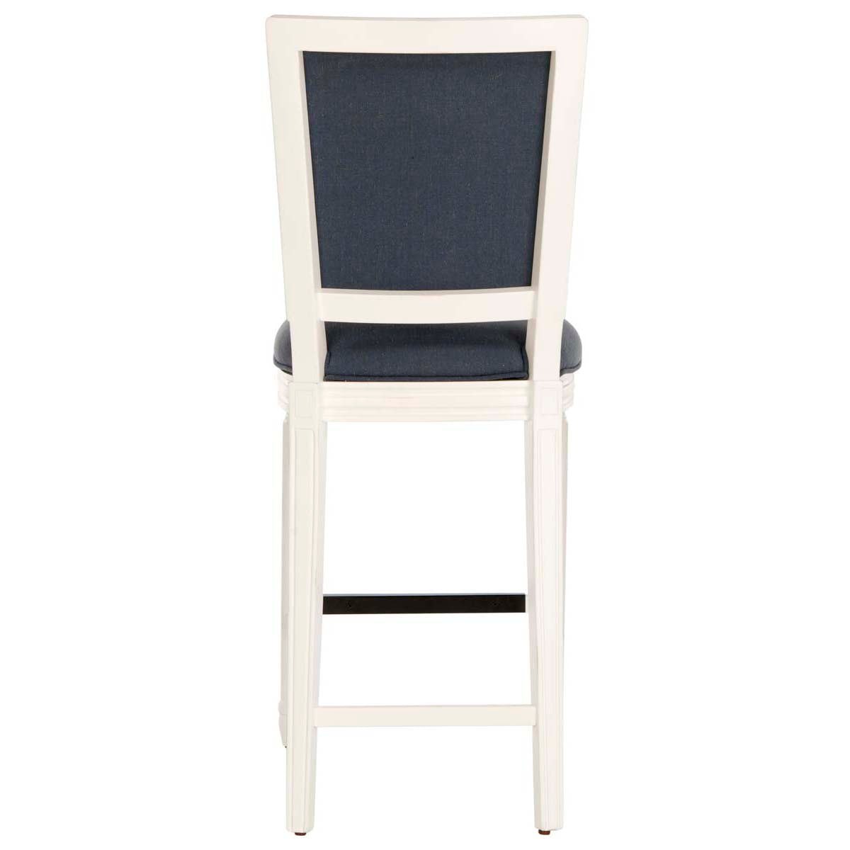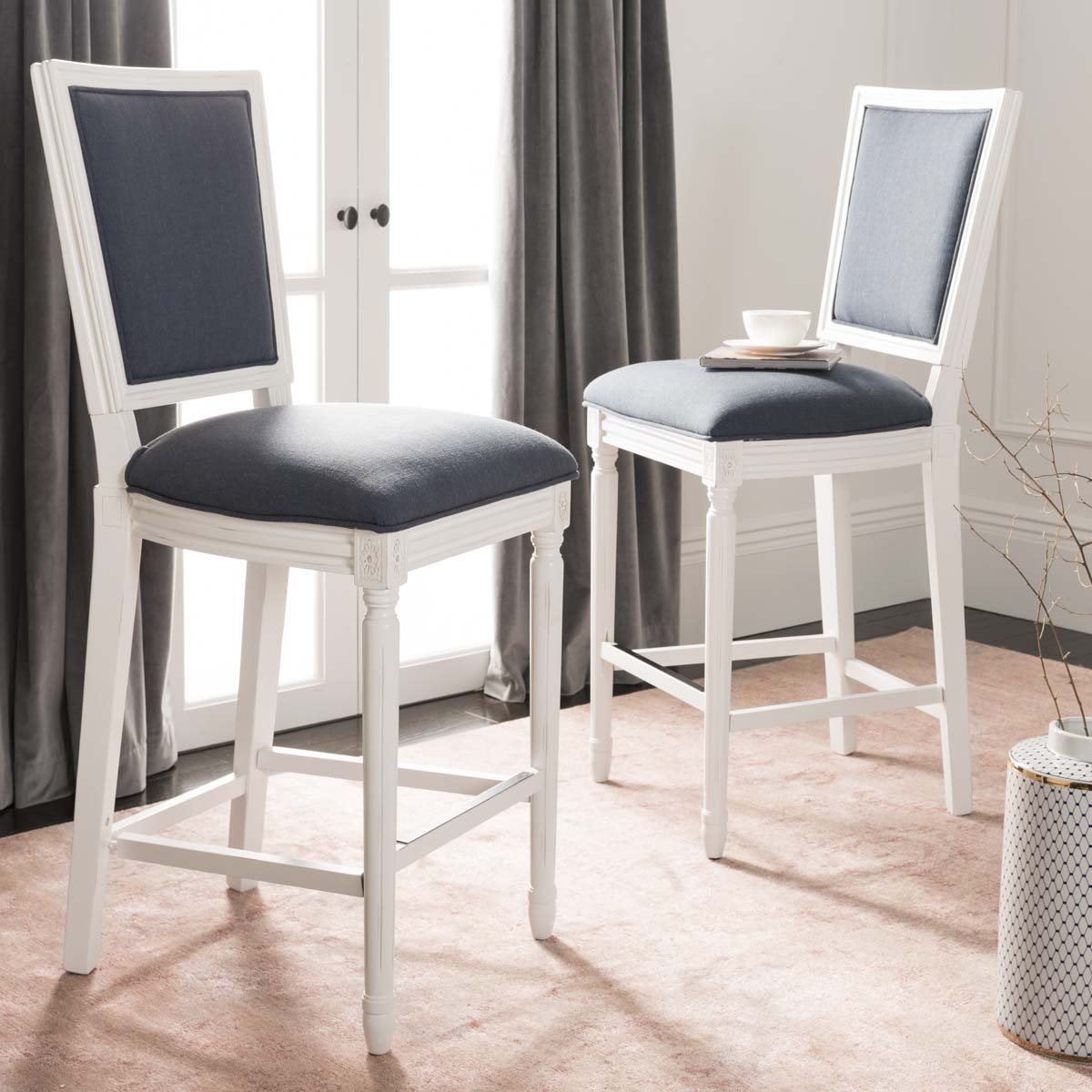 Entertain in style with this rectangle bar stool. Designed to bring French charm to the table, its chic navy upholstery is paired with finely carved distressed white wood. Designers use it to add instant character to any dining area or breakfast bar.