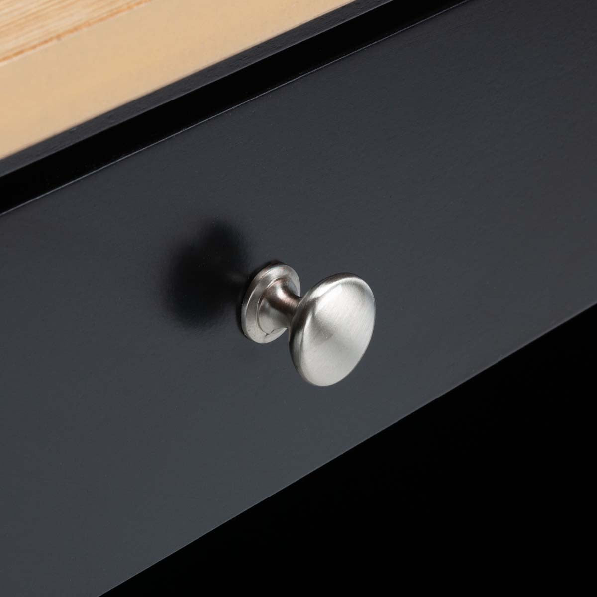 A must-have for today???s stylishly practical eating areas, this Daley Kitchen Cart is often used as a miniature portable kitchen island, making it a favorite of busy home entertainers. Two shelves and two drawers are ideal for produce, spices, or cutlery, and its chic pairing of matte black and natural wood finishes are stunning.