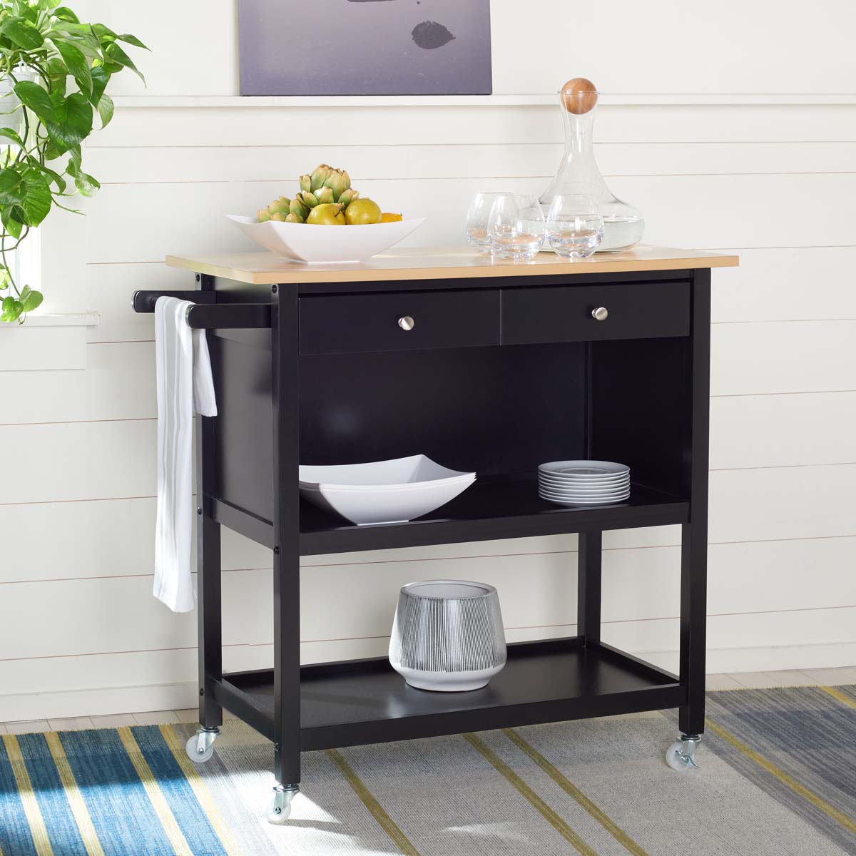 Safavieh Daley 2 Drawer 2 Shelf Kitchen Cart - Natural / Black