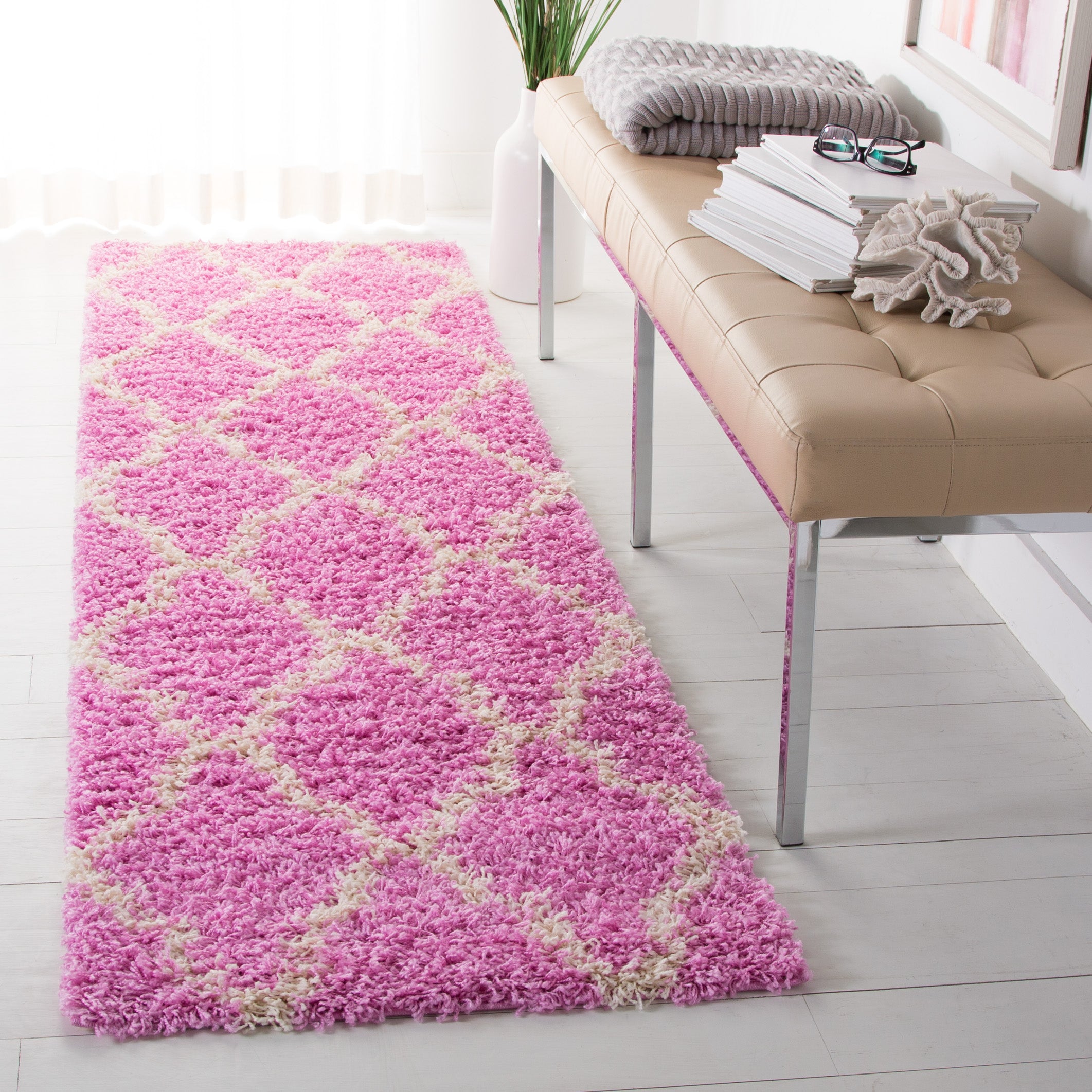 Safavieh Dallas Shag Rug Collection SGDS257I - Pink / Ivory