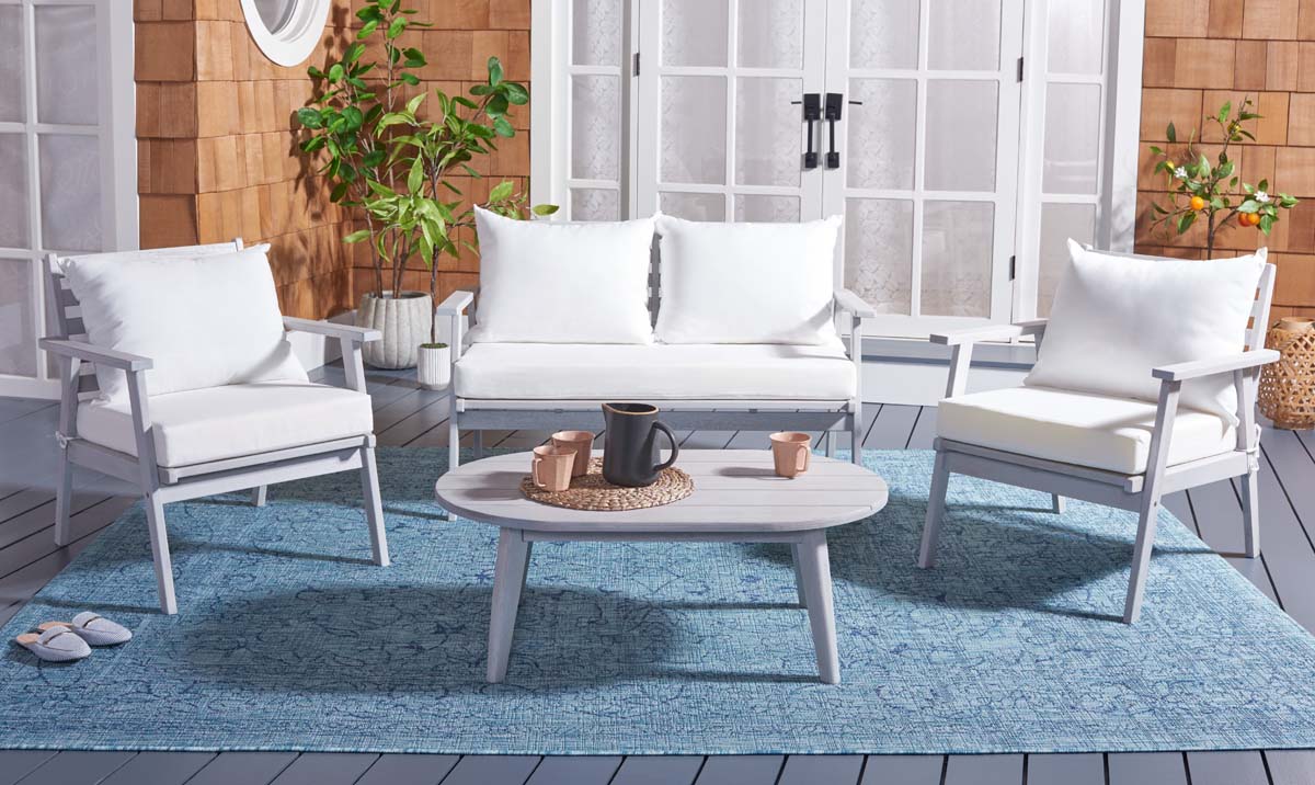 Designed For Value And Versatility, This Contemporary 4-Piece Living Set Creates An Instant Outdoor Room In Any Open-Air Space. Comfy Beige Cushions Sit On Expertly Crafted Grey Acacia Wood Frames, While Its Circular Table Is Ideal For Entertaining.