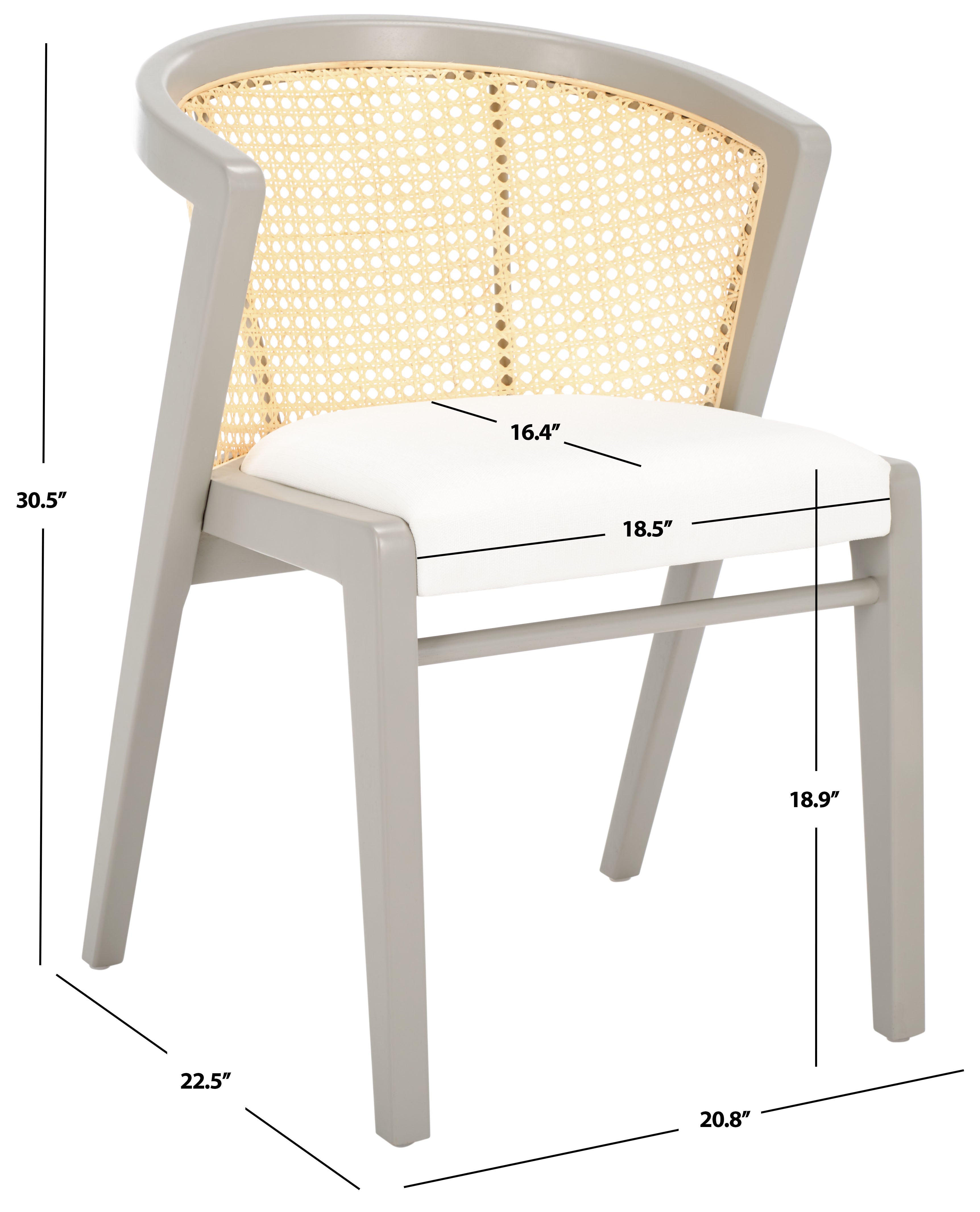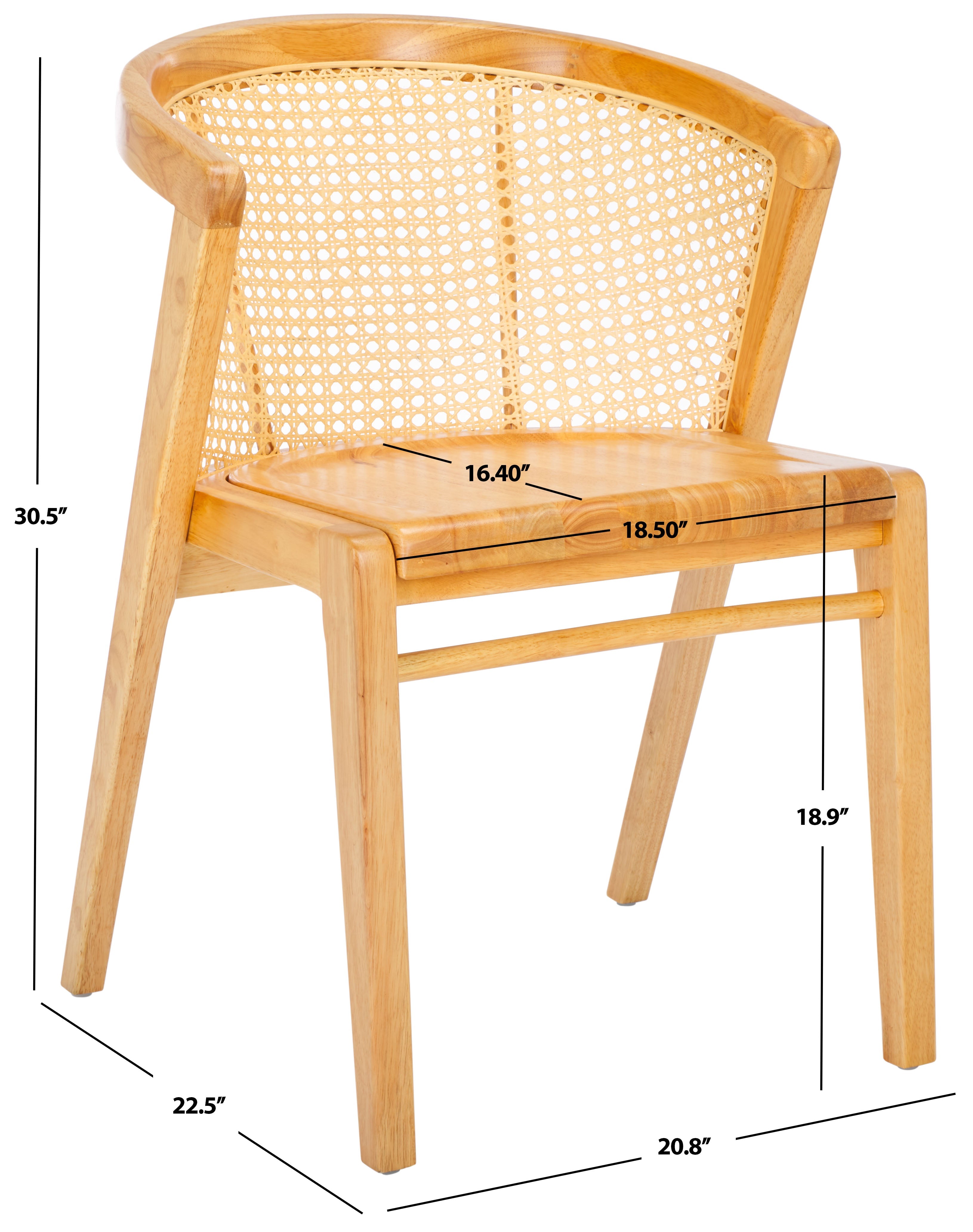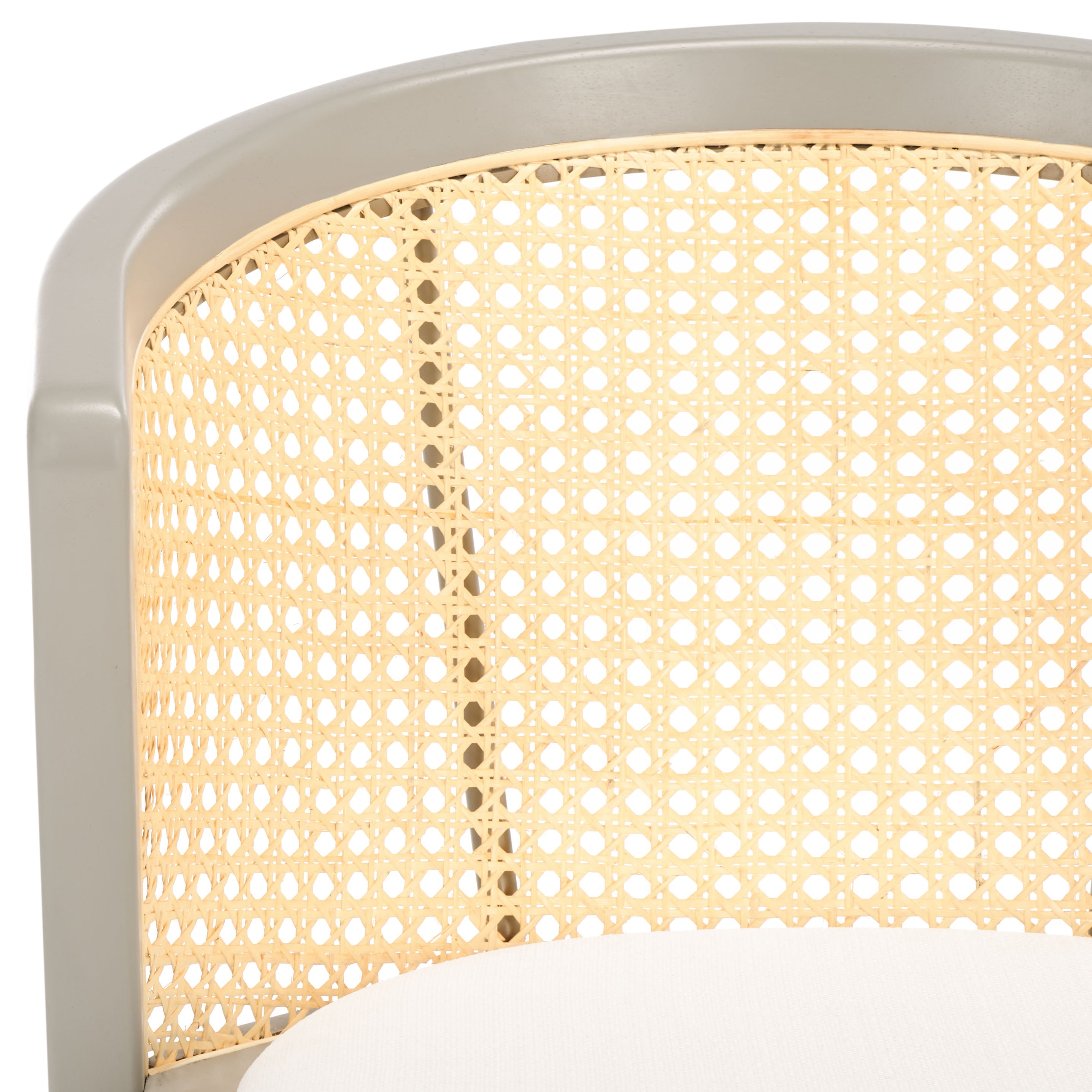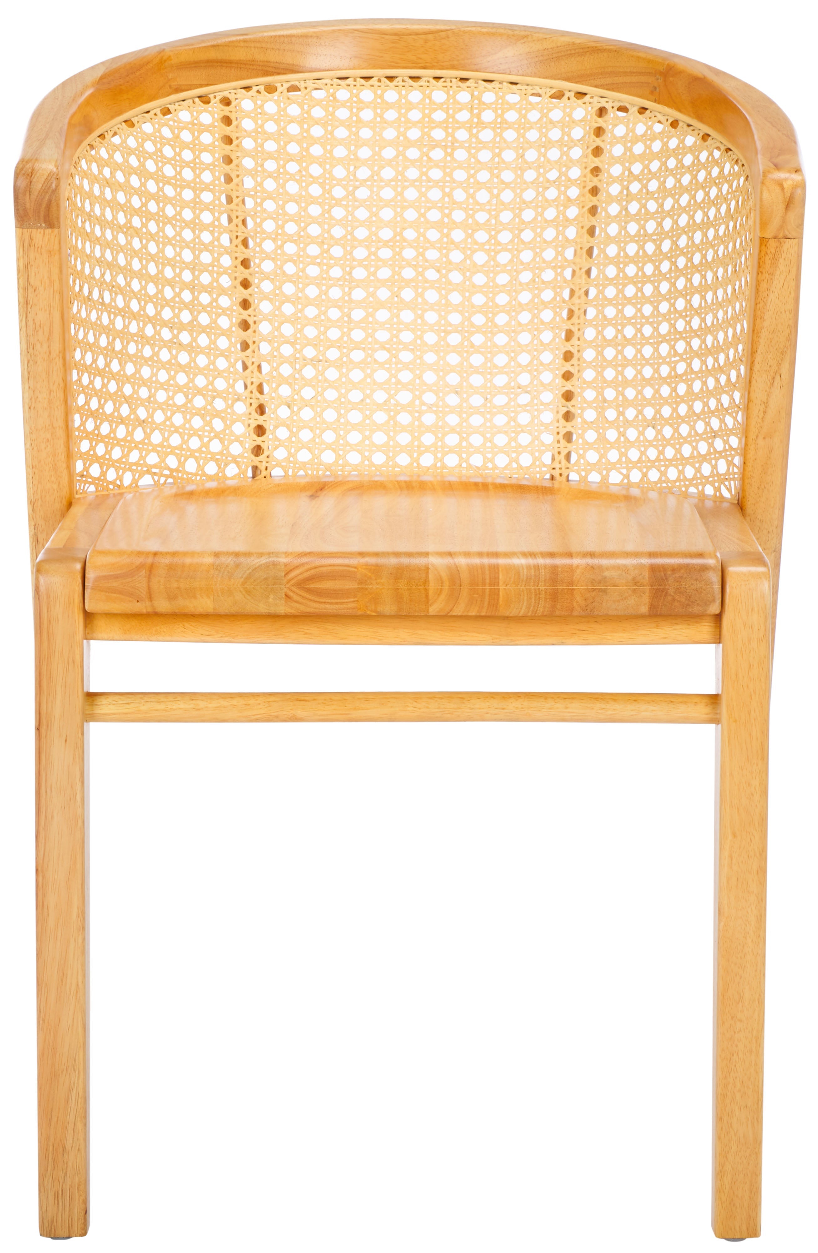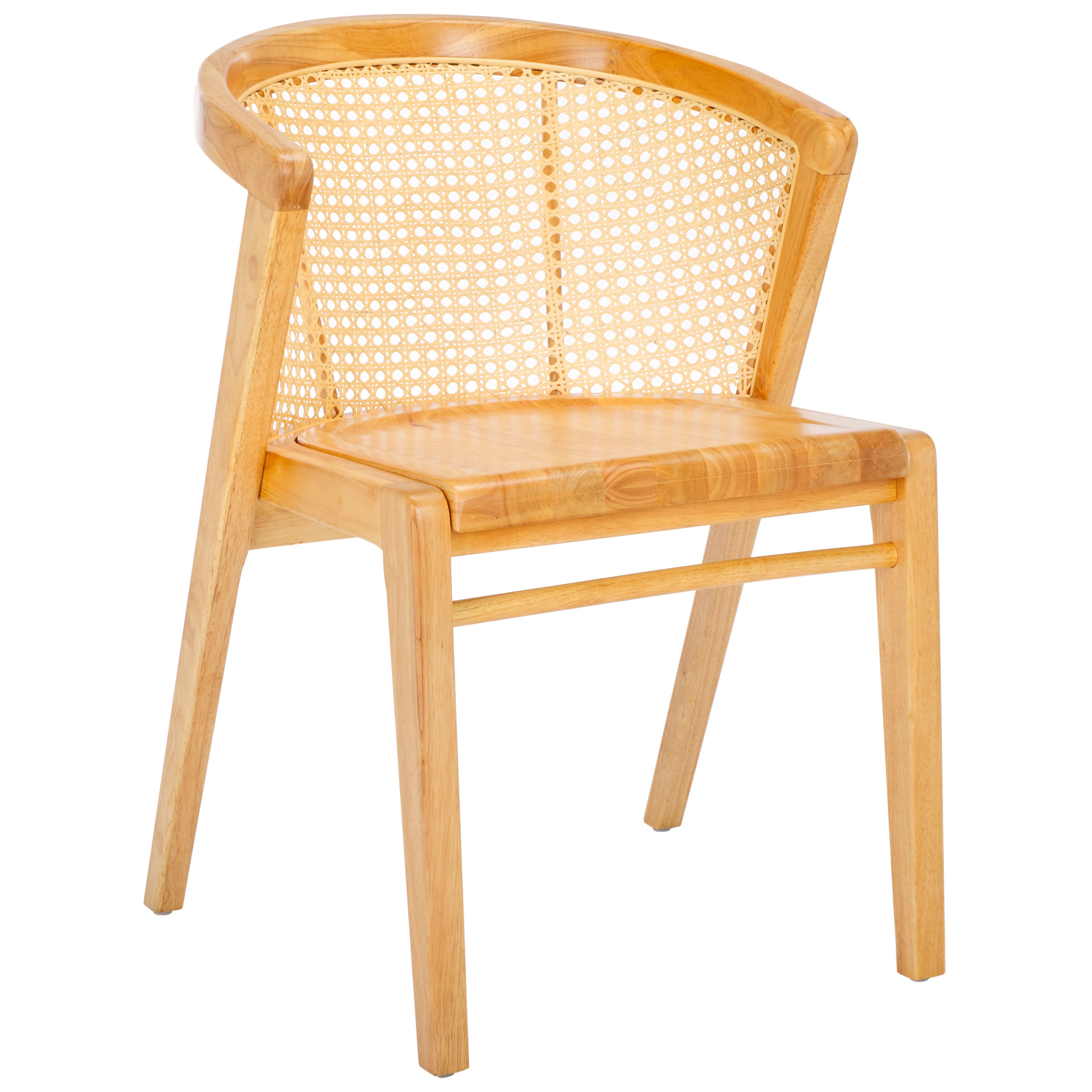 Liven up your home with the modern charm and breezy appeal of our Edan dining chair. Its mid-century modern appeal is combined with rich materials to add a cozy and fashionable edge to any room. The beautifully refined barrel back of the chair is updated with the rich texture of rattan. Crafted in solid wood, our dining chair enlivens any space with its warm and rich textural appeal. It includes a white padded seat to lend comfort and stylishly casual air to your kitchen, dining room, or living area.