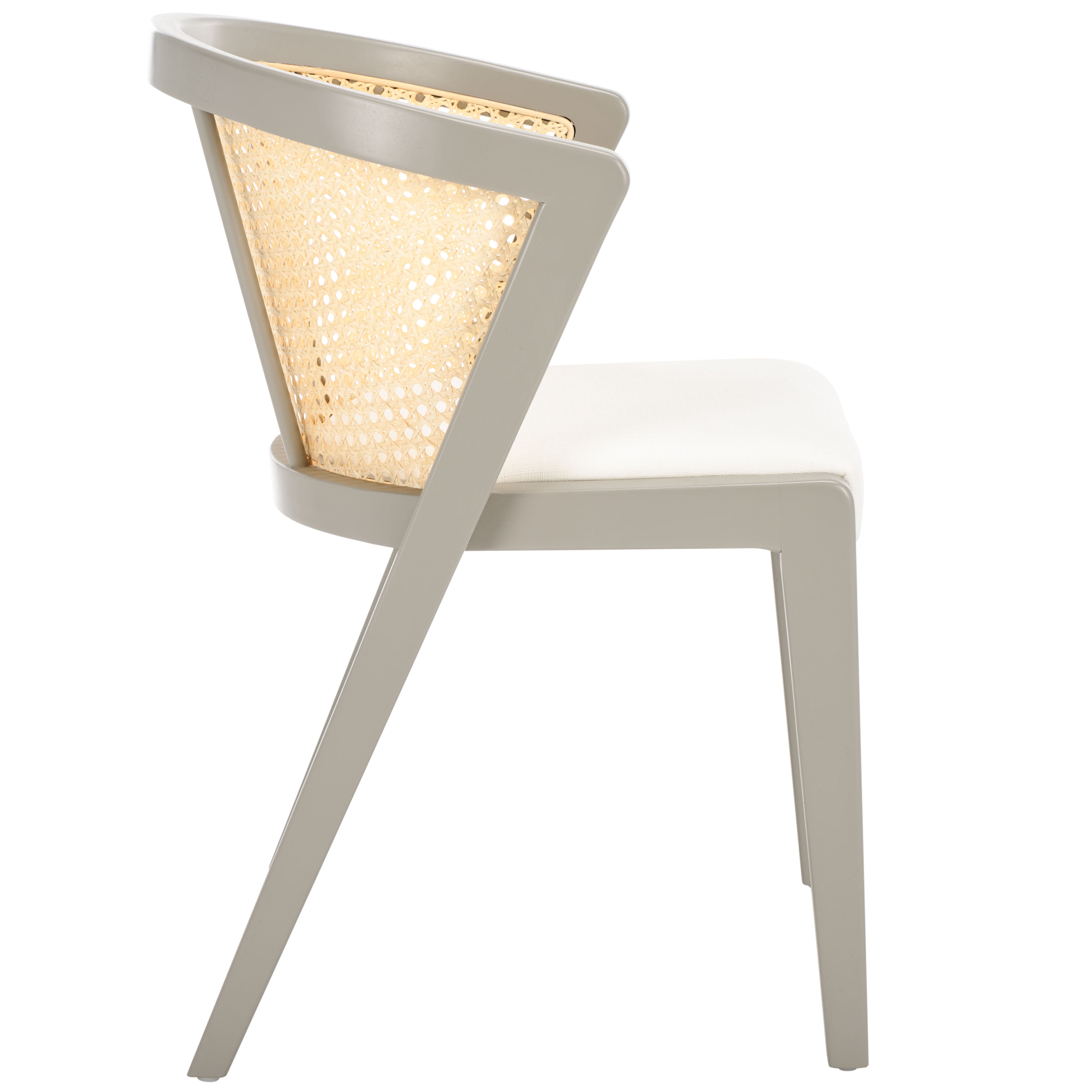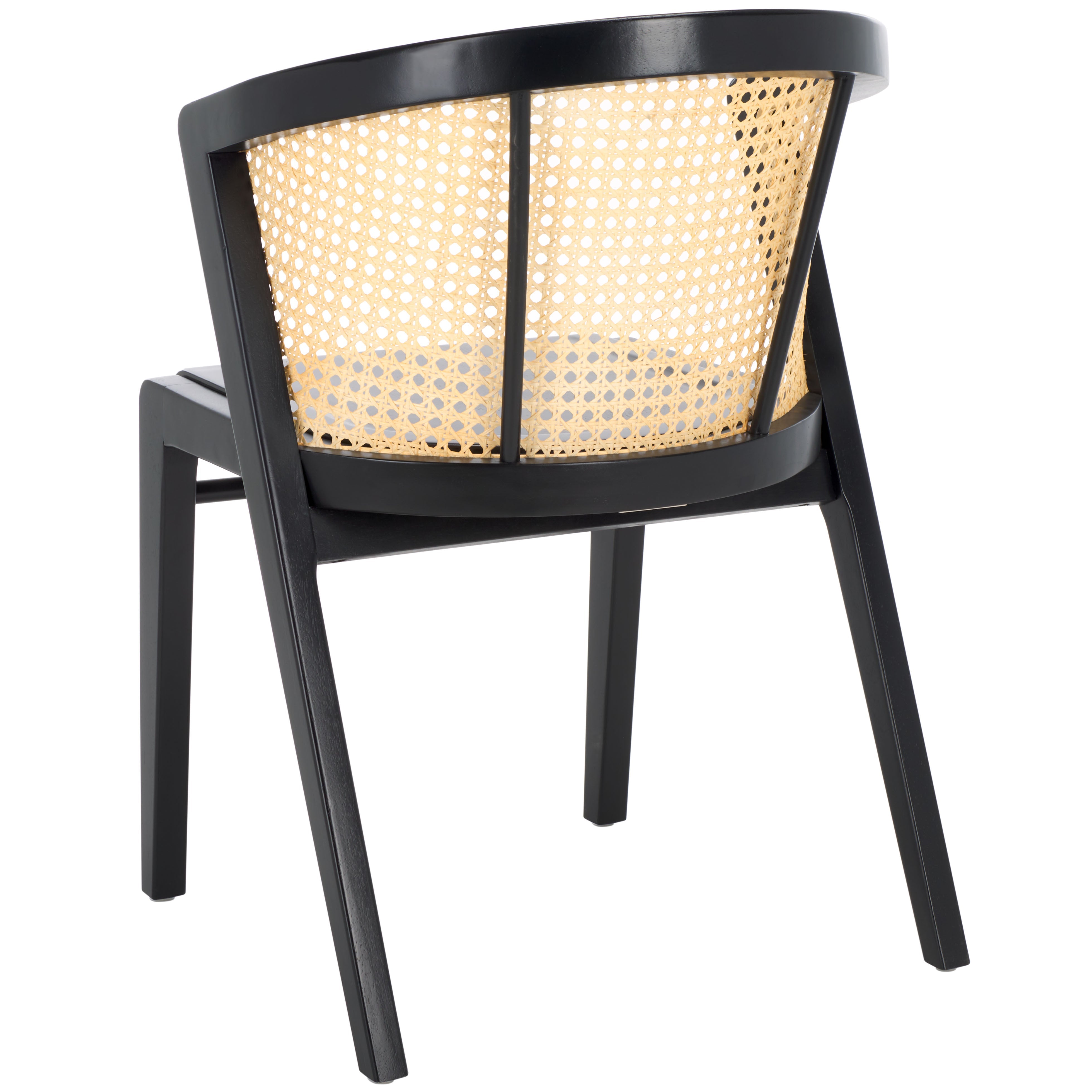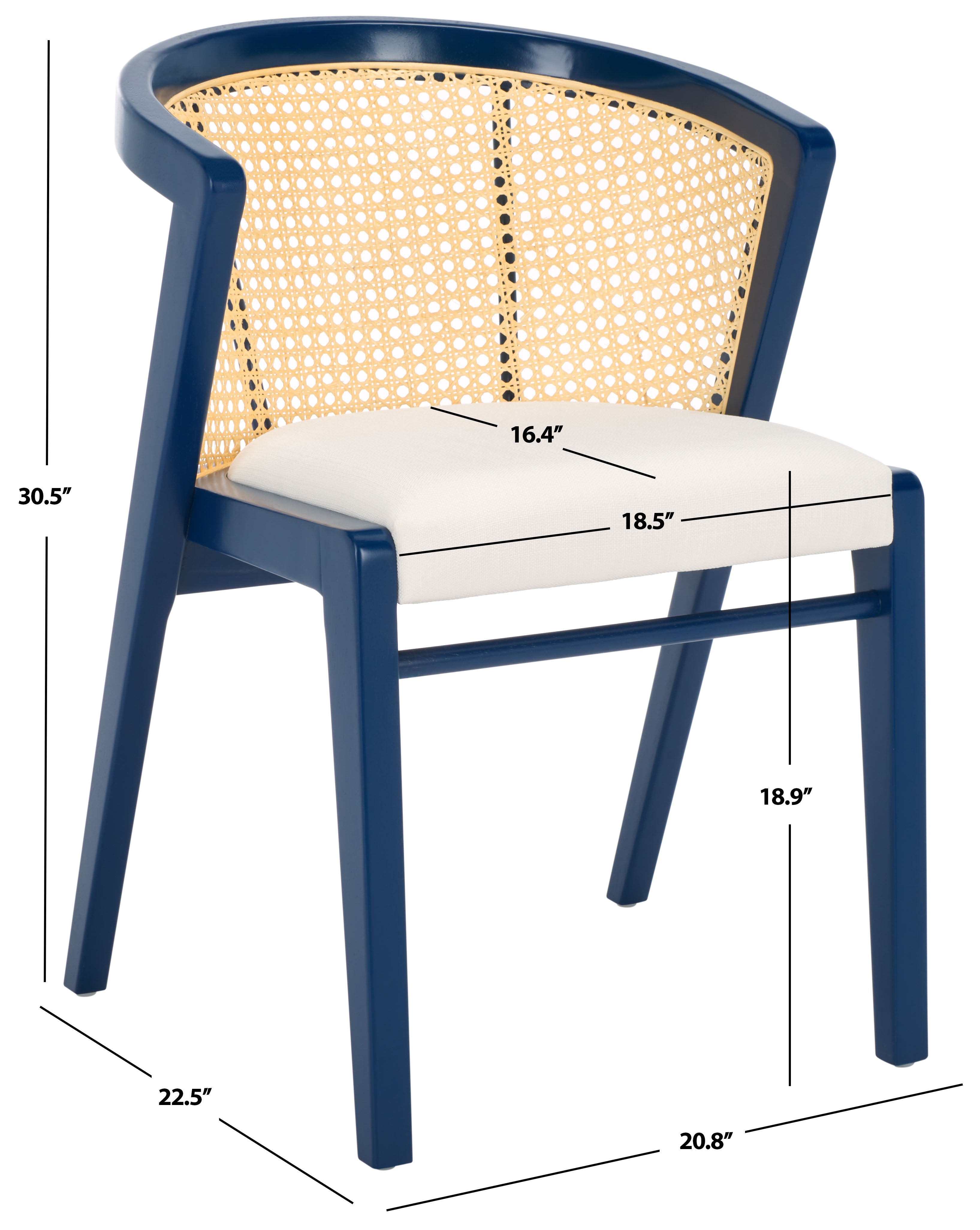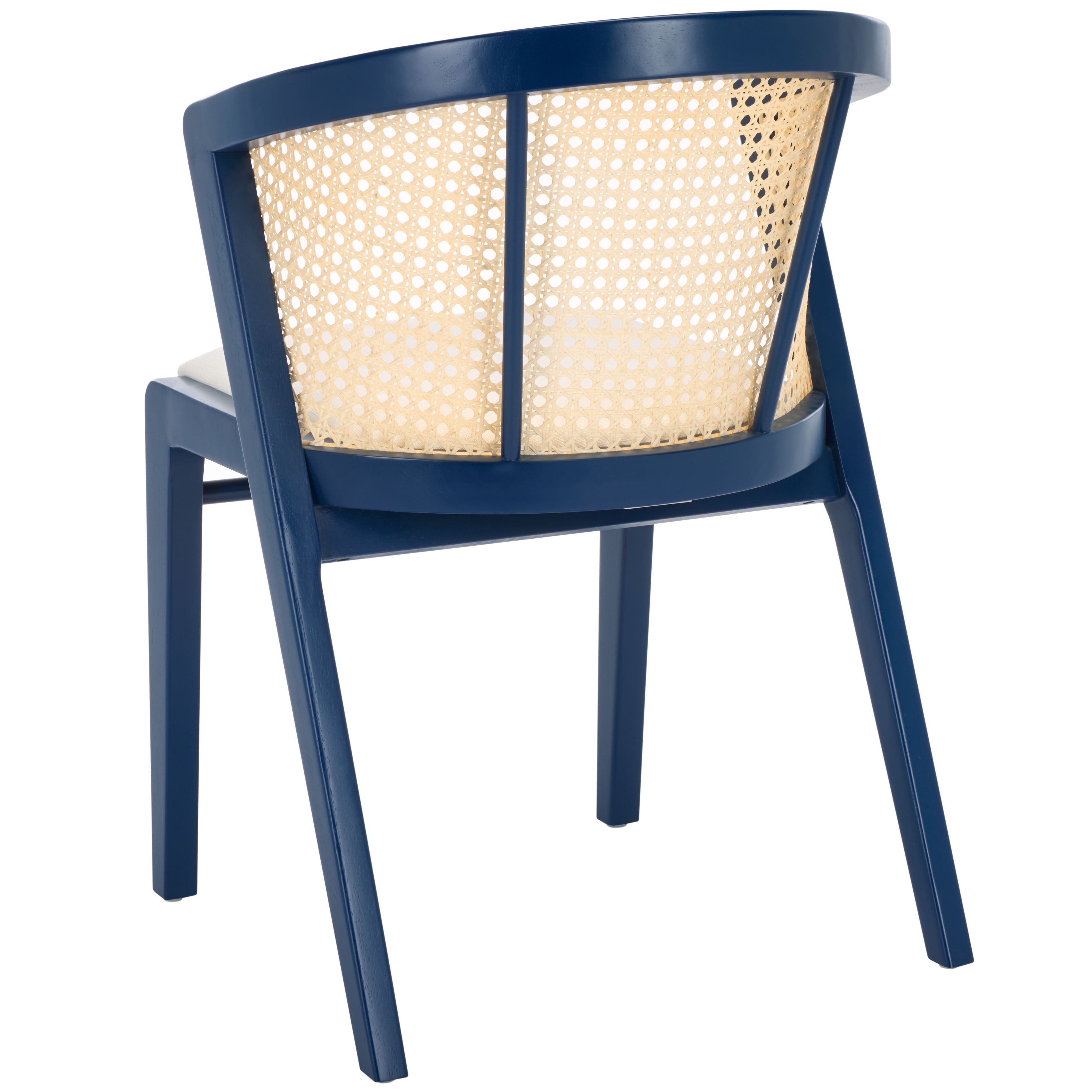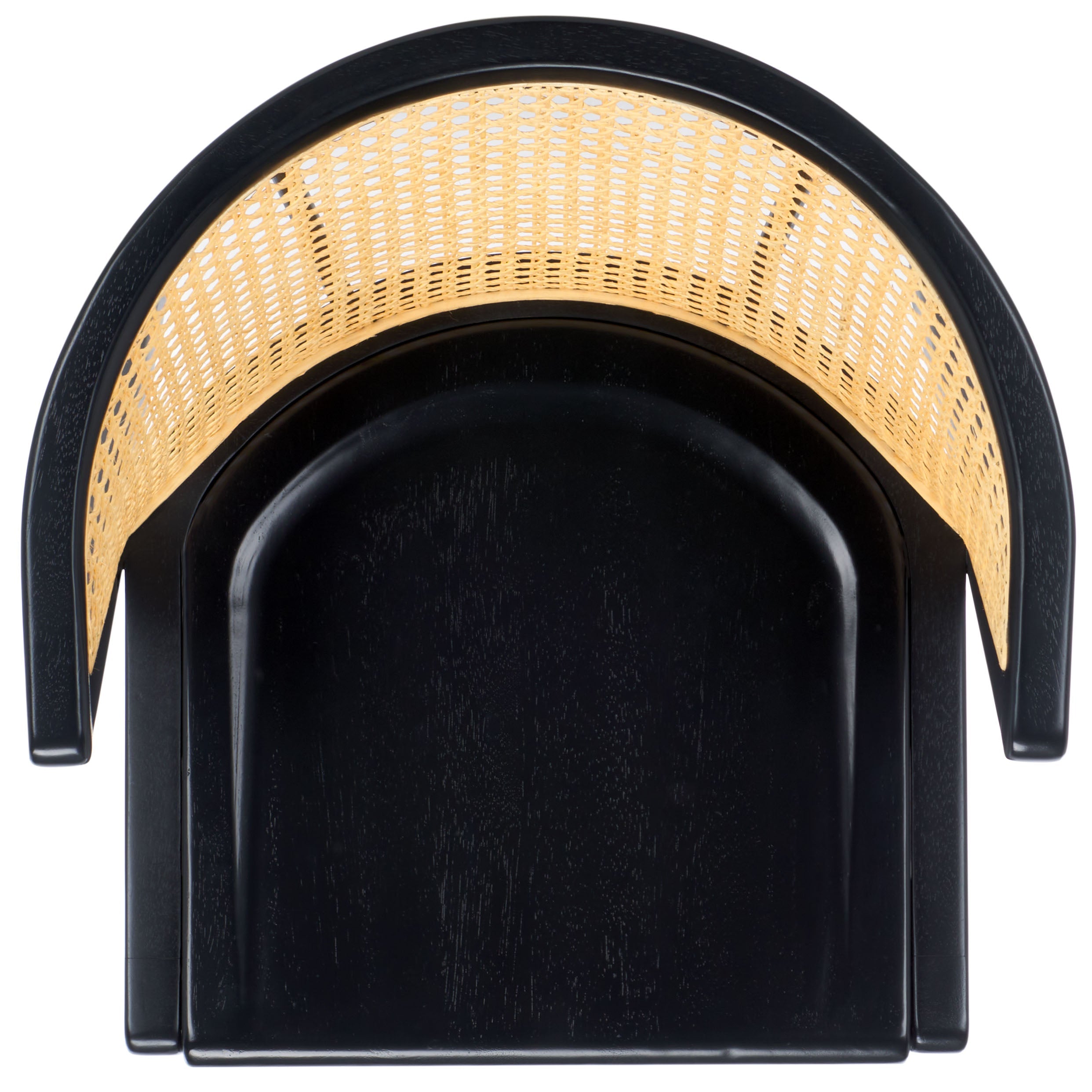 Liven up your home with the modern charm and breezy appeal of our Edan dining chair. Its mid-century modern appeal is combined with rich materials to add a cozy and fashionable edge to any room. The beautifully refined barrel back of the chair is updated with the rich texture of rattan. Crafted in solid wood, our dining chair enlivens any space with its warm and rich textural appeal. It includes a white padded seat to lend comfort and stylishly casual air to your kitchen, dining room, or living area.