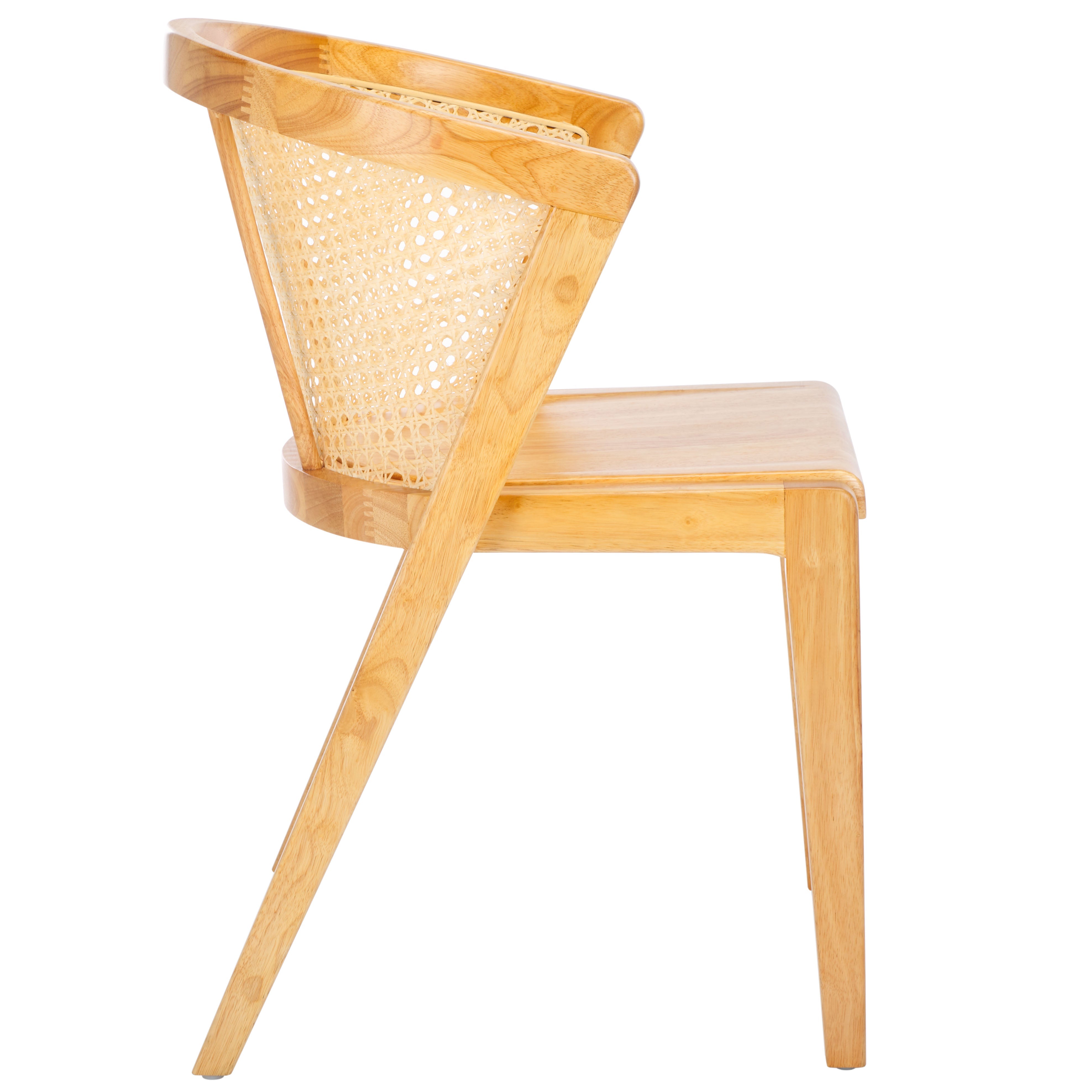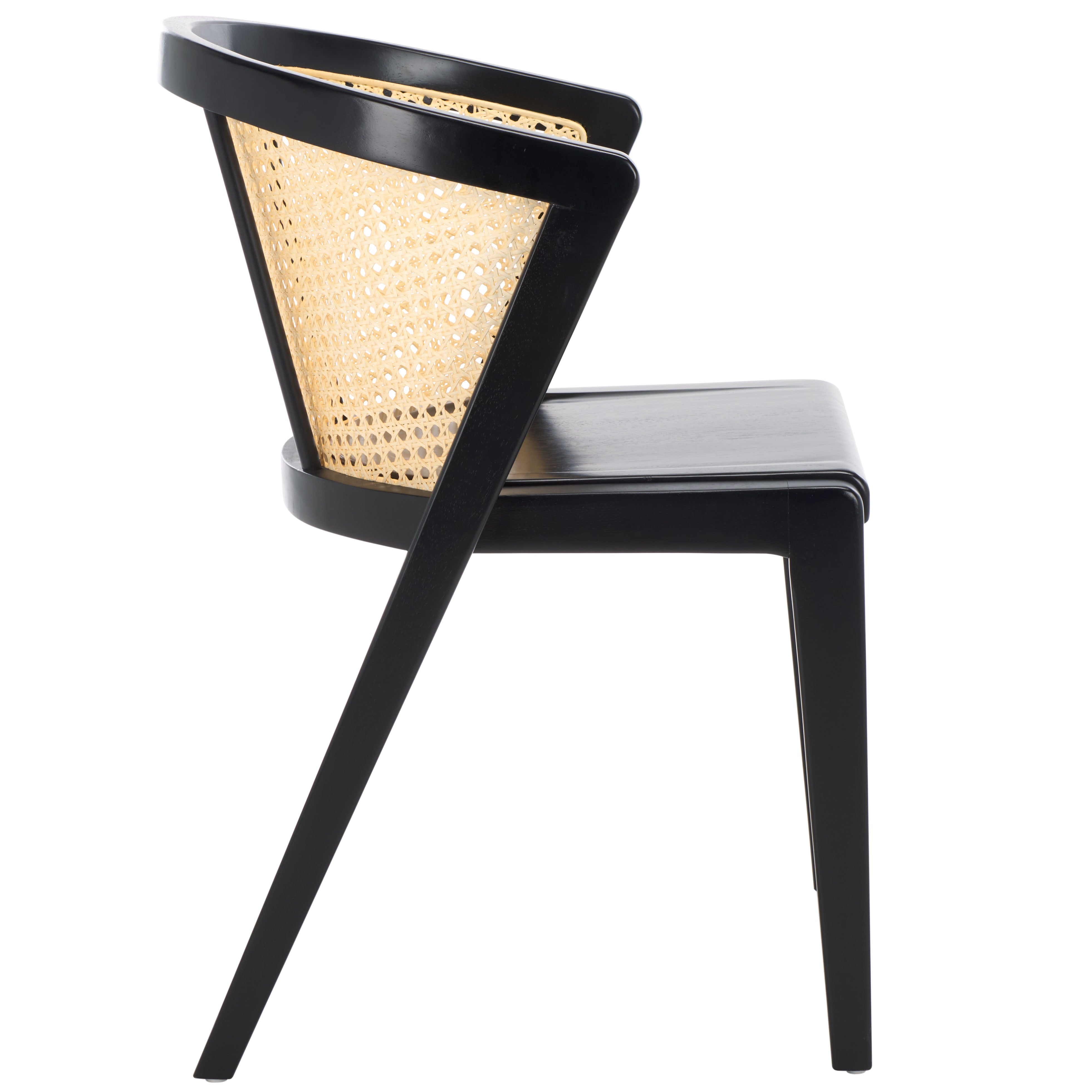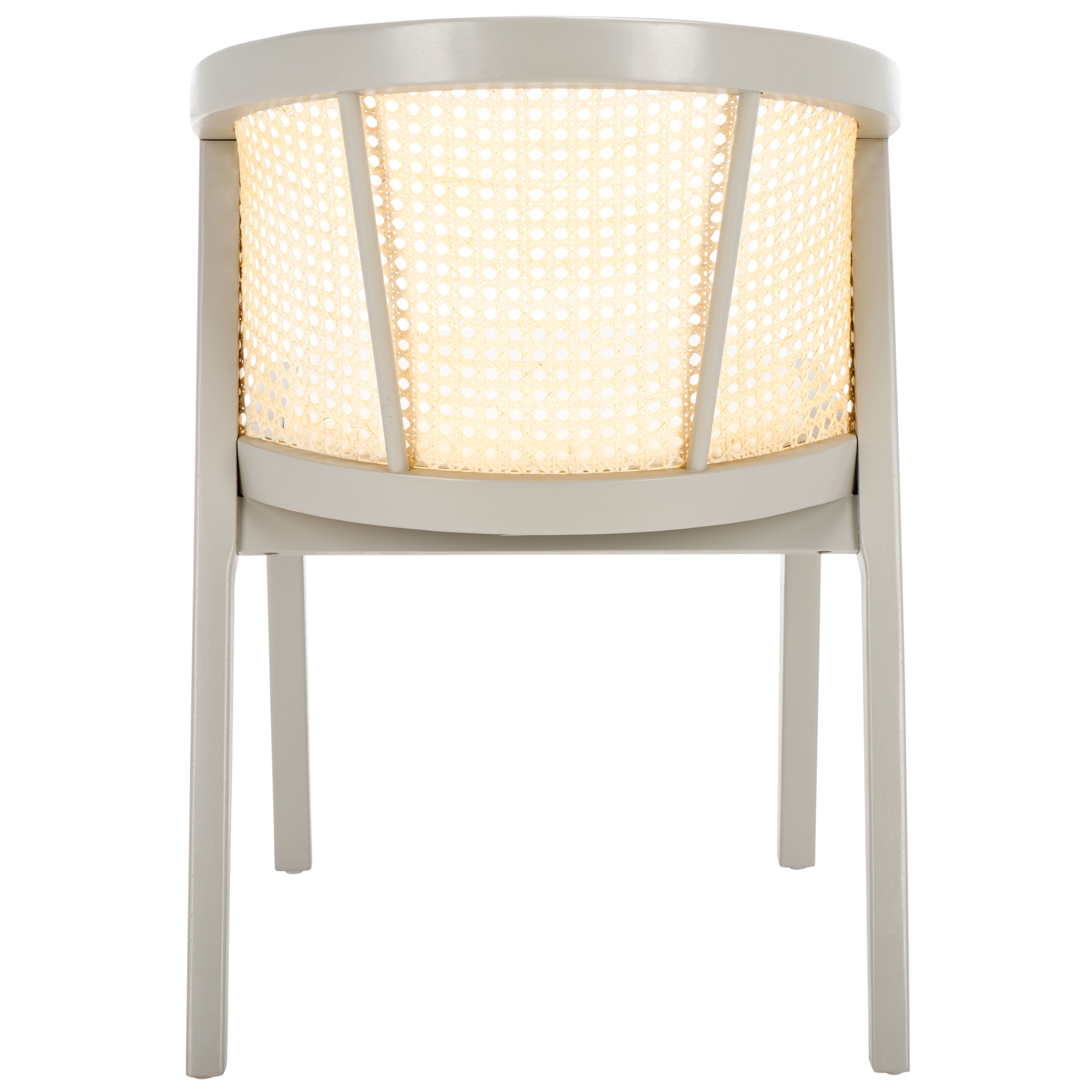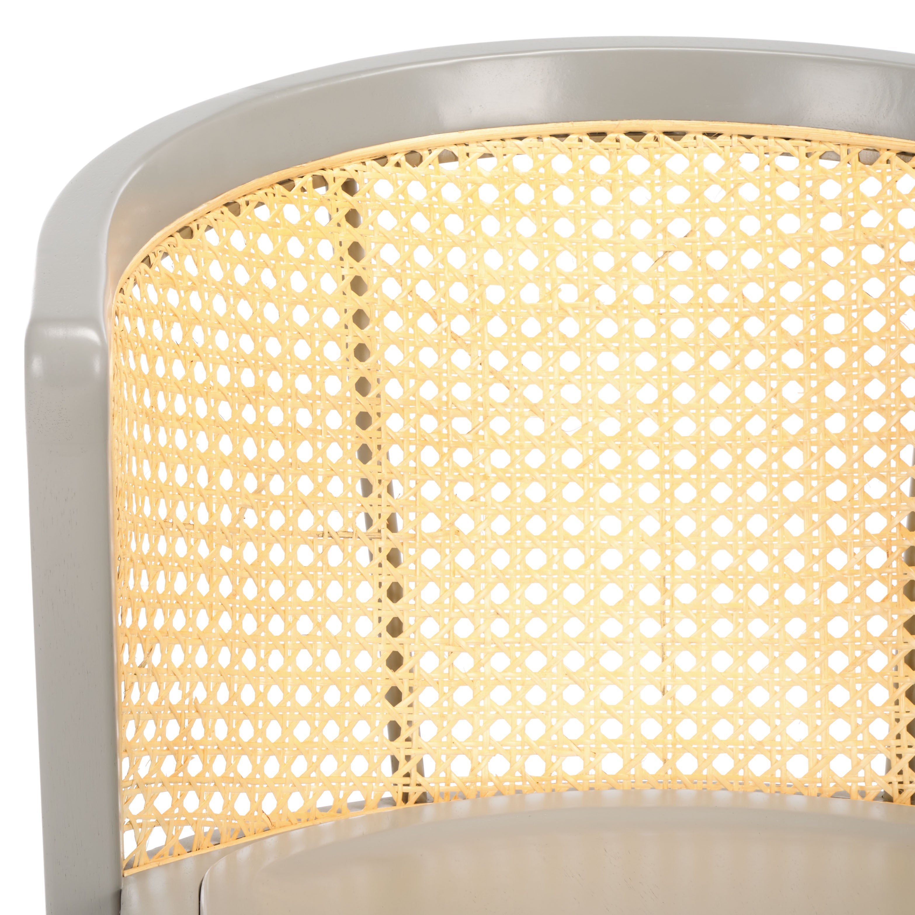 Liven up your home with the modern charm and breezy appeal of our Edan dining chair. Its mid-century modern appeal is combined with rich materials to add a cozy and fashionable edge to any room. The beautifully refined barrel back of the chair is updated with the rich texture of rattan. Crafted in solid wood, our dining chair enlivens any space with its warm and rich textural appeal. It includes a white padded seat to lend comfort and stylishly casual air to your kitchen, dining room, or living area.